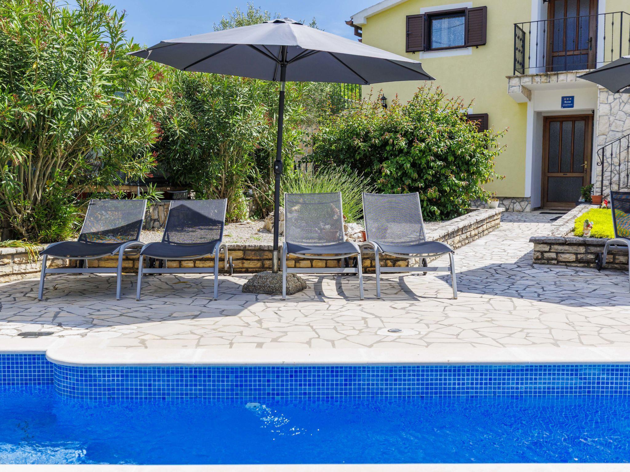 Doppelhaus "Ve-Ma", auf 2 Stockwerken. Im Weiler Kapelica, 2.5 km vom Zentrum von Labin, ruhige, sonnige Lage, 6 km vom Meer. Zur Alleinbenutzung: Grundstück 1'700 m2, Garten, Schwimmbad (60 m2, 70 - 150 cm tief, saisonale Verfügbarkeit: 18.Mai. - 29.Sep.) mit Innentreppe. Ungleichmässige Schwimmbadform, Aussendusche, Grill. Im Hause: Internetzugang, Waschmaschine. Parkplatz beim Haus auf dem Grundstück. Einkaufsgeschäft 2.5 km, Restaurant 2 km, Bushaltestelle 3.4 km, Kieselstrand 6 km, Felsstrand 6 km. Radweg 100 m. Der Besitzer akzeptiert keine Jugendgruppen. Das Haus besteht aus 2 Wohnungen, die als eine Einheit vermietet werden.