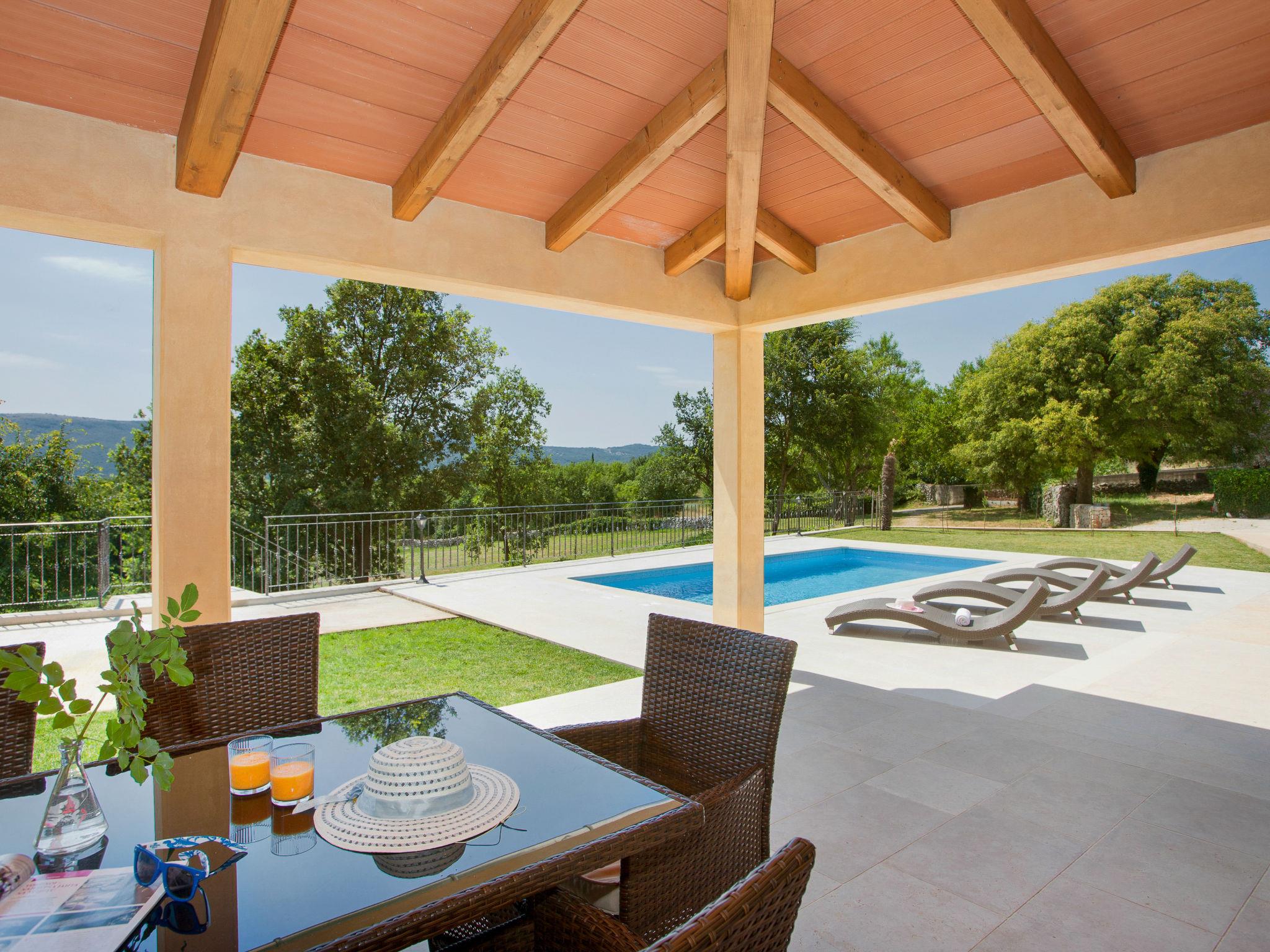 4-Zimmer-Haus 138 m2 auf 2 Stockwerken. Wohn-/Esszimmer mit 1 Doppeldiwanbett (160 cm, Länge 200 cm), offenem Kamin und Sat-TV (Flachbildschirm). Ausgang zur Terrasse, zum Schwimmbad. Offene Küche (4 Kochplatten, Backofen, Tiefkühler). Dusche/Bidet/WC. Obergeschoss: (Aussentreppe) 3 Zimmer, jedes Zimmer mit 1 Doppelbett (2 x 80 cm, Länge 200 cm), Klimaanlage. Esszimmer. Offene Küche (Backofen, Geschirrspüler, 4 Glaskeramikplatten, Wasserkocher, Mikrowelle, Tiefkühler, elektrische Kaffeemaschine) mit Sat-TV (Flachbildschirm), Klimaanlage. Dusche/Bidet/WC. Terrasse 50 m2 teilweise überdacht. Terrassenmöbel, Liegestühle. Sicht auf das Schwimmbad und den Garten. Zur Verfügung: Babybett, Haartrockner. Internet (Wireless LAN, gratis). Maximal 2 Haustiere/Hunde erlaubt.