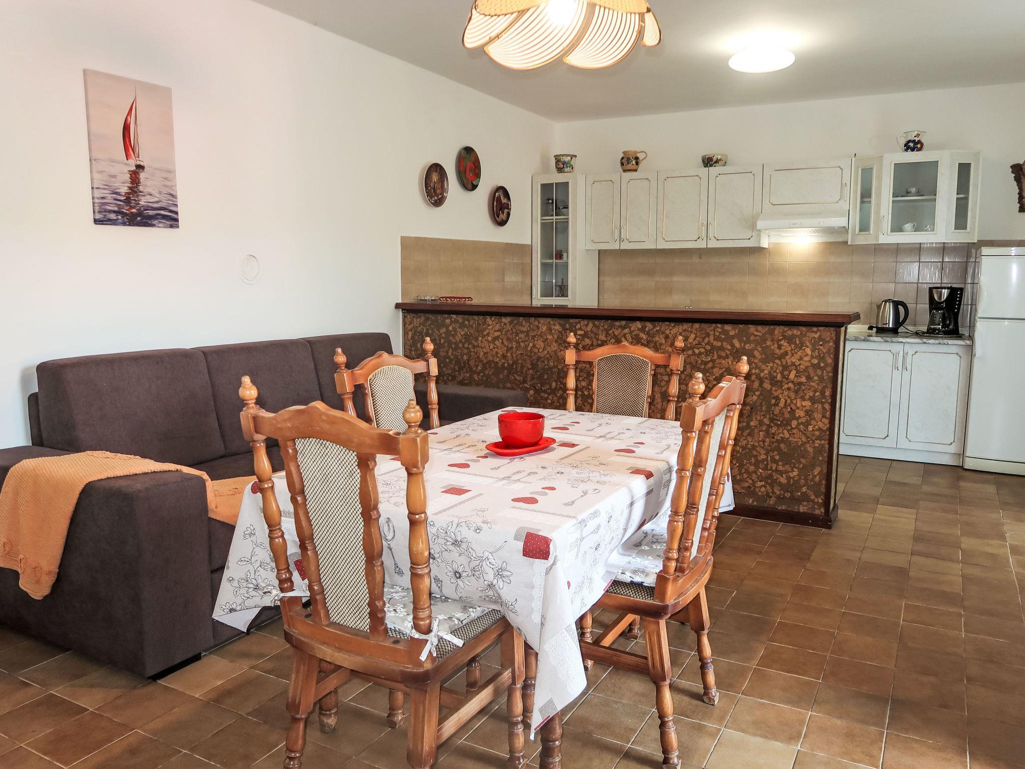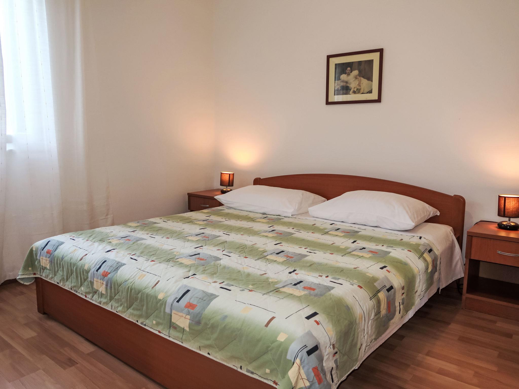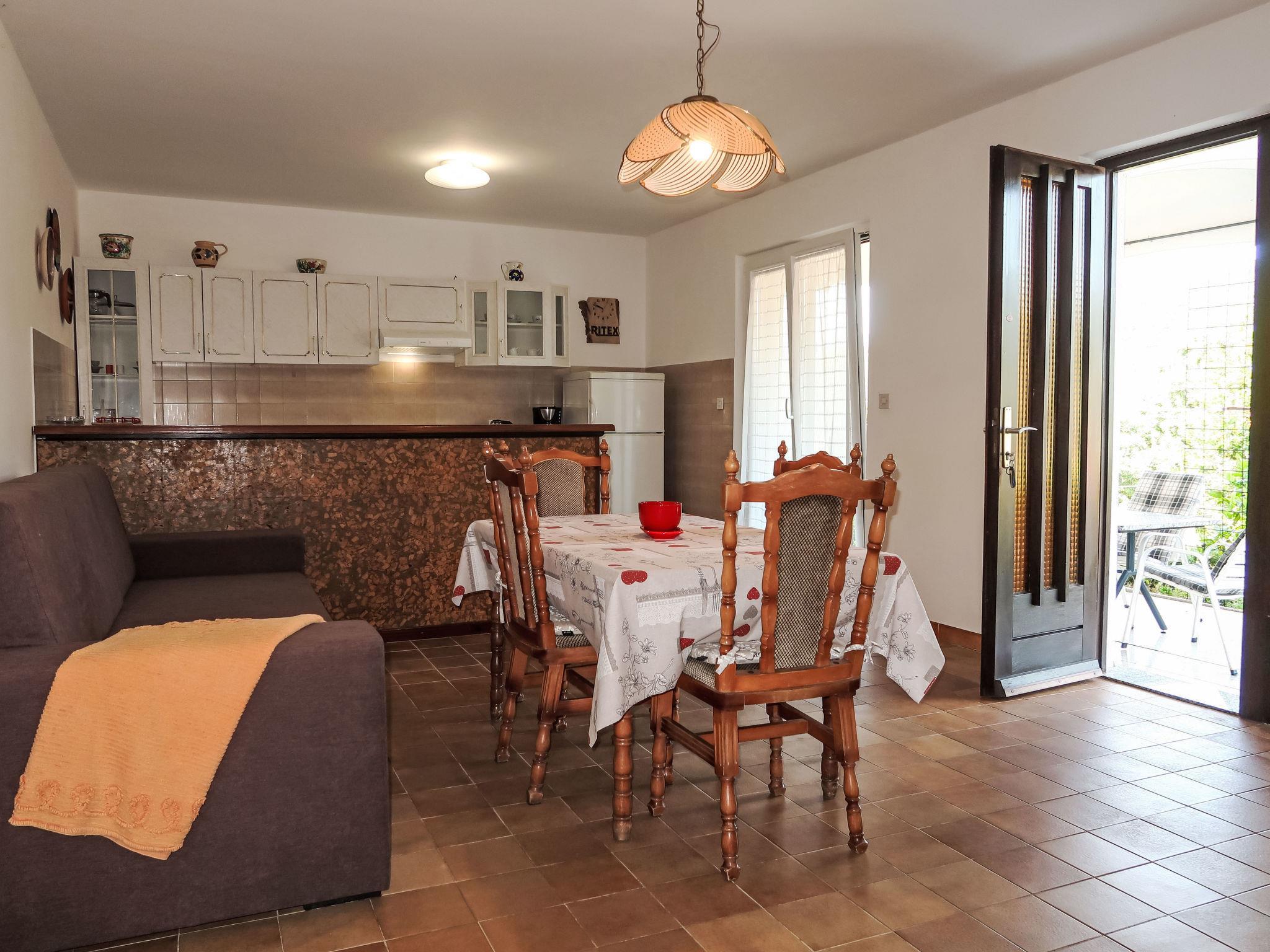 "Violetta", 3-Zimmer-Wohnung 65 m2, im Erdgeschoss. Wohnzimmer mit Esstisch, Sat-TV und Klimaanlage. Ausgang zur Terrasse. 1 Zimmer mit 1 Doppelbett. 1 Zimmer mit 1 Doppelbett. Offene Küche (4 Kochplatten, Backofen, Tiefkühler, elektrische Kaffeemaschine). Dusche/WC. E-Heizung, Ölheizung. Terrasse. Terrassenmöbel. Sicht auf das Meer. Zur Verfügung: Internet (WLAN, gratis). Bitte beachten: Nichtraucher-Haus. Eigener Eingang. 2163-07/06-97-2