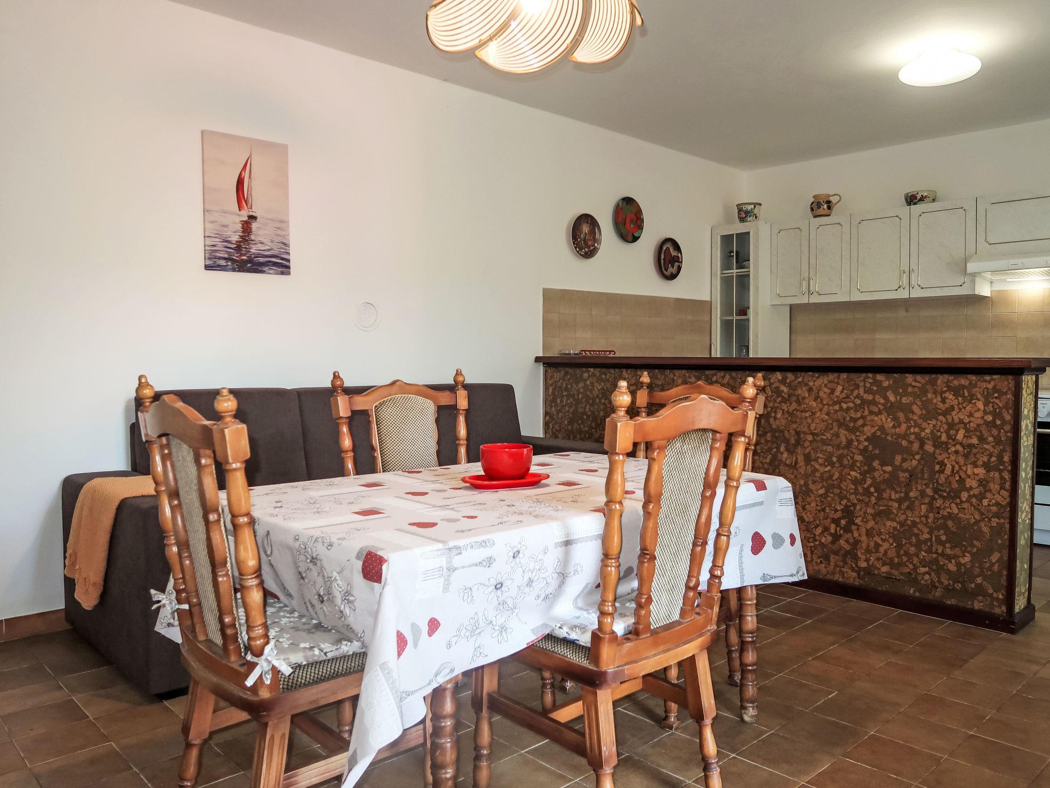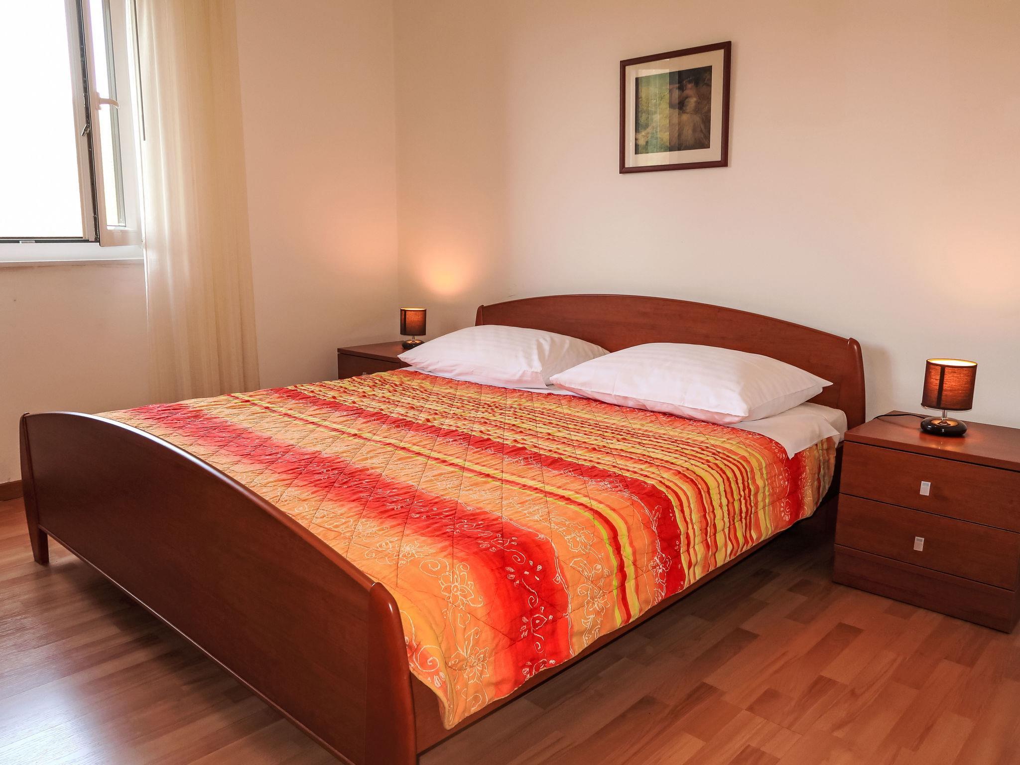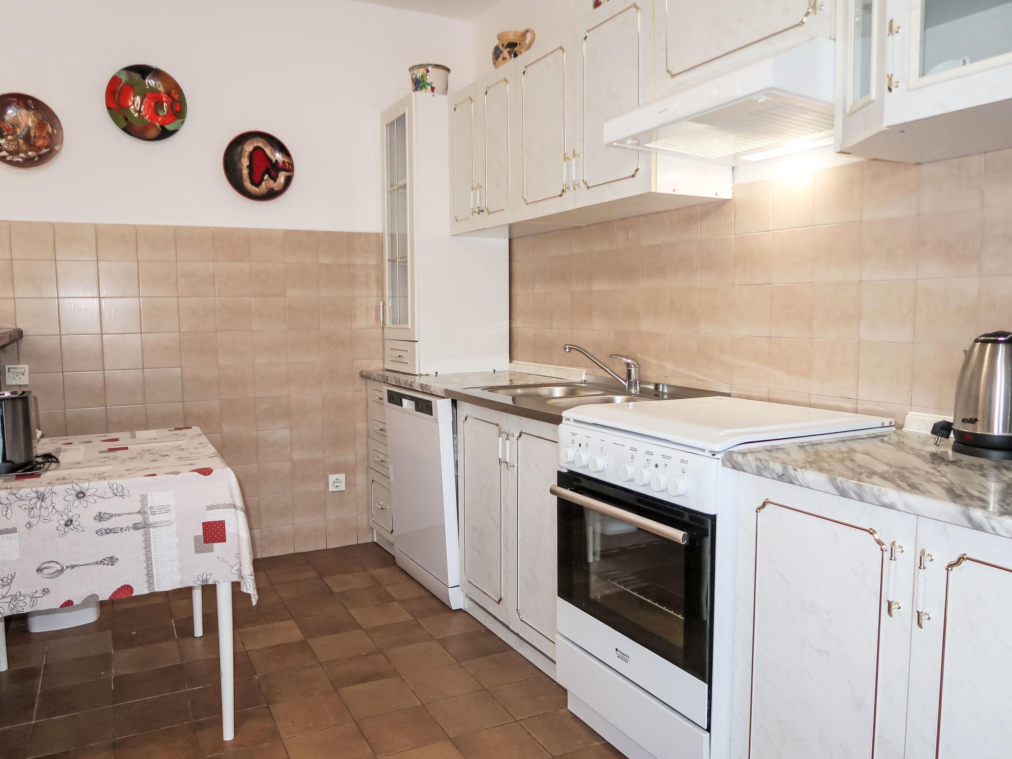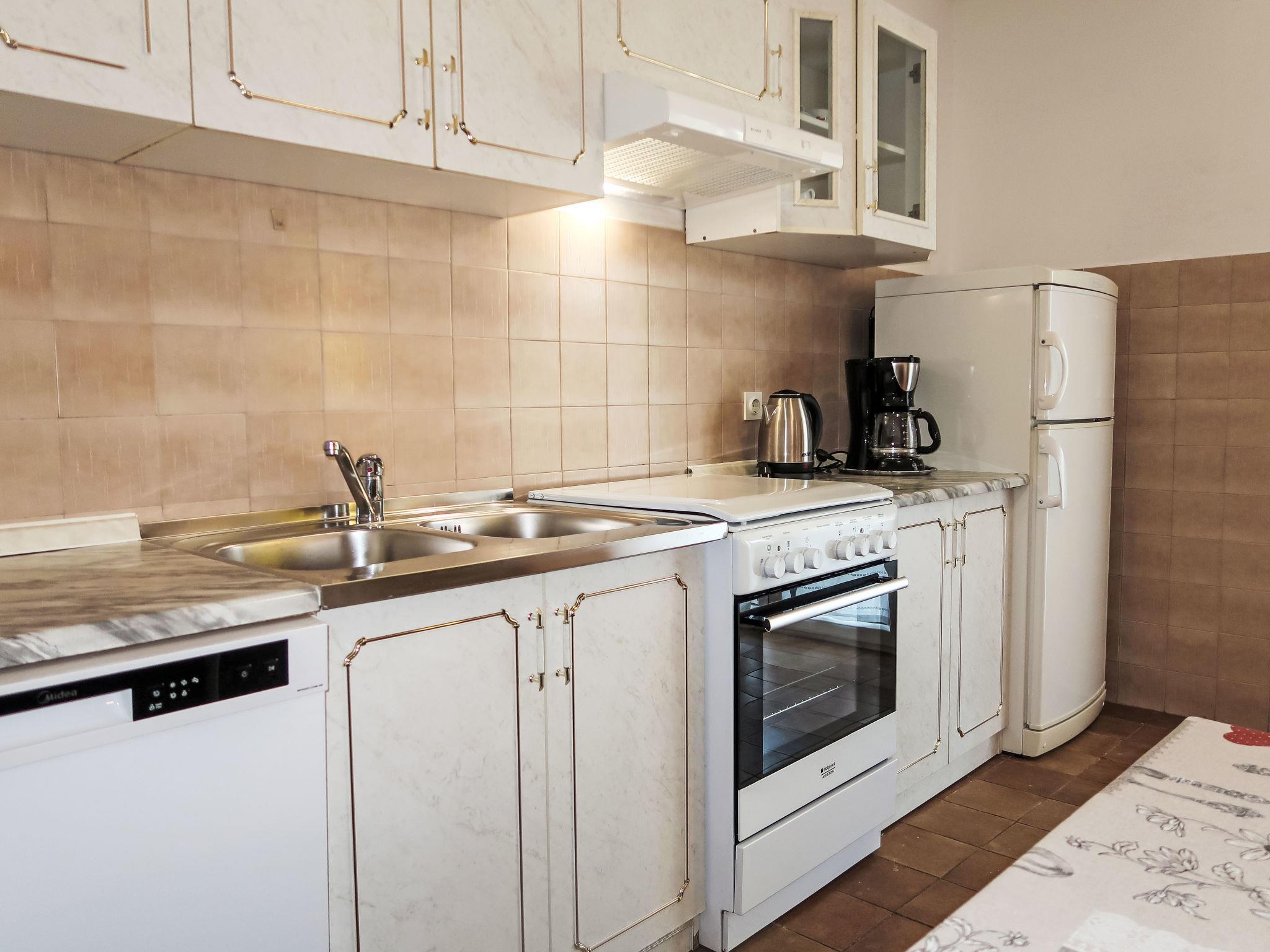 "Violetta", 3-Zimmer-Wohnung 65 m2, im Erdgeschoss. Wohnzimmer mit Esstisch, Sat-TV und Klimaanlage. Ausgang zur Terrasse. 1 Zimmer mit 1 Doppelbett. 1 Zimmer mit 1 Doppelbett. Offene Küche (4 Kochplatten, Backofen, Tiefkühler, elektrische Kaffeemaschine). Dusche/WC. E-Heizung, Ölheizung. Terrasse. Terrassenmöbel. Sicht auf das Meer. Zur Verfügung: Internet (WLAN, gratis). Bitte beachten: Nichtraucher-Haus. Eigener Eingang. 2163-07/06-97-2