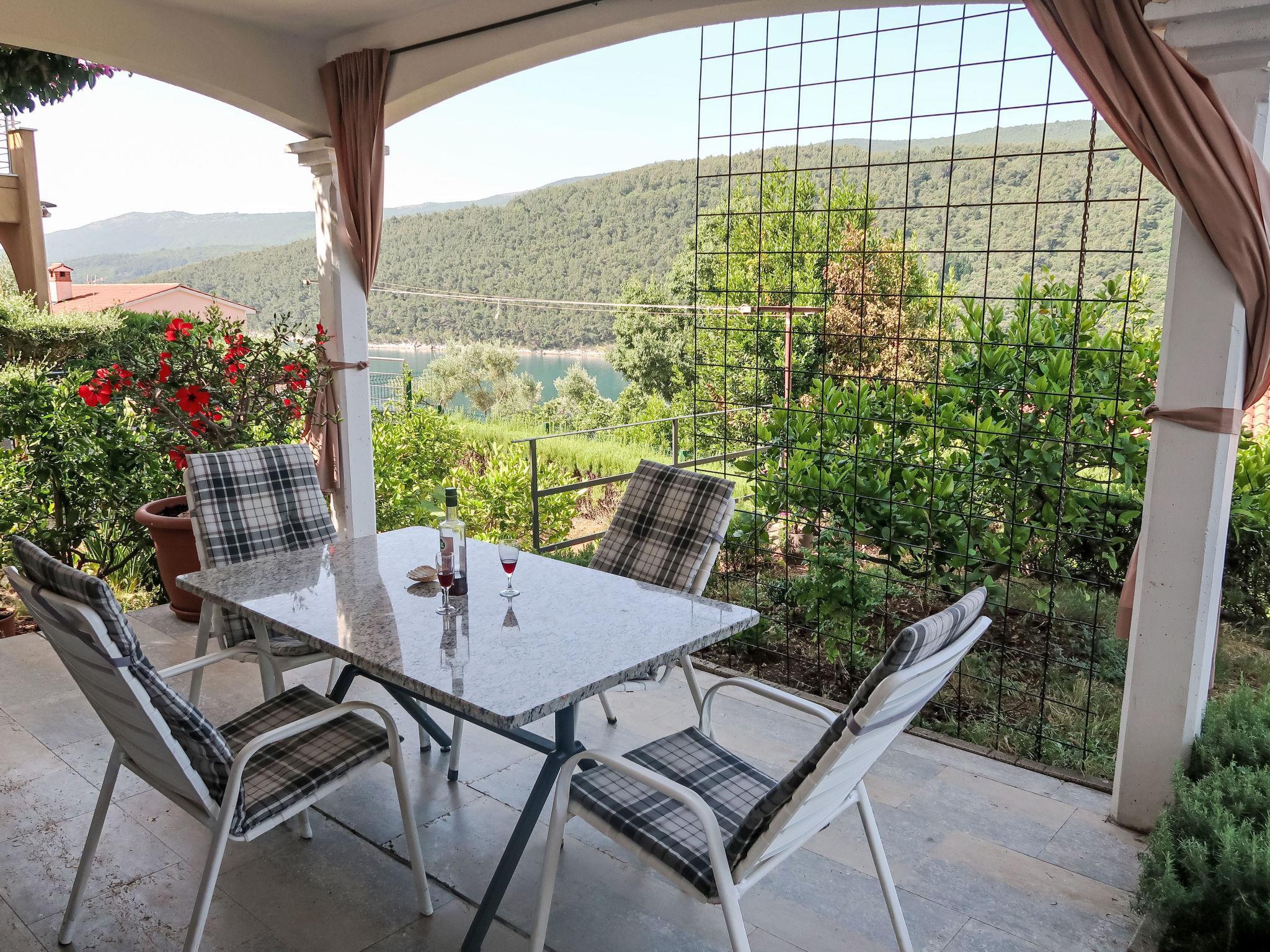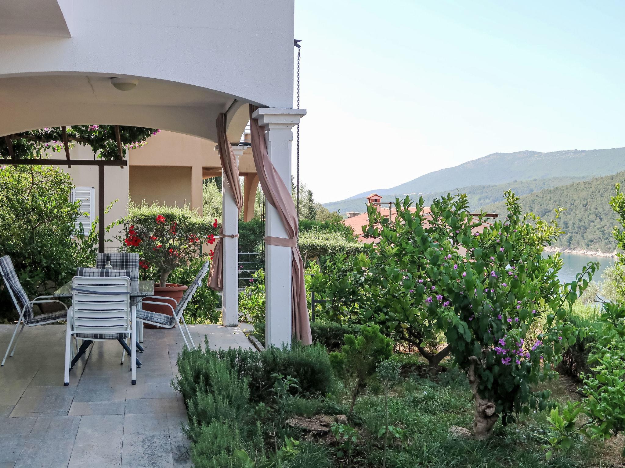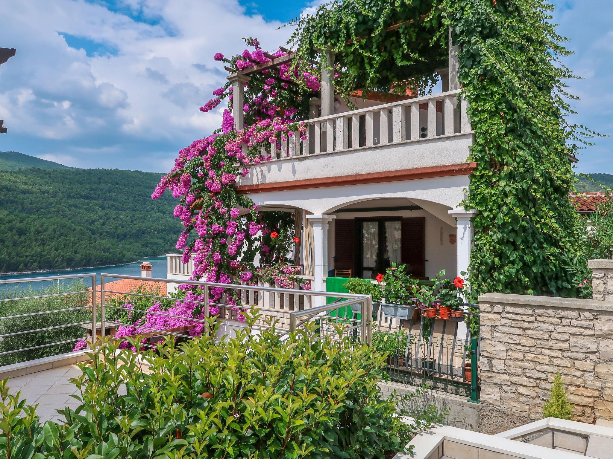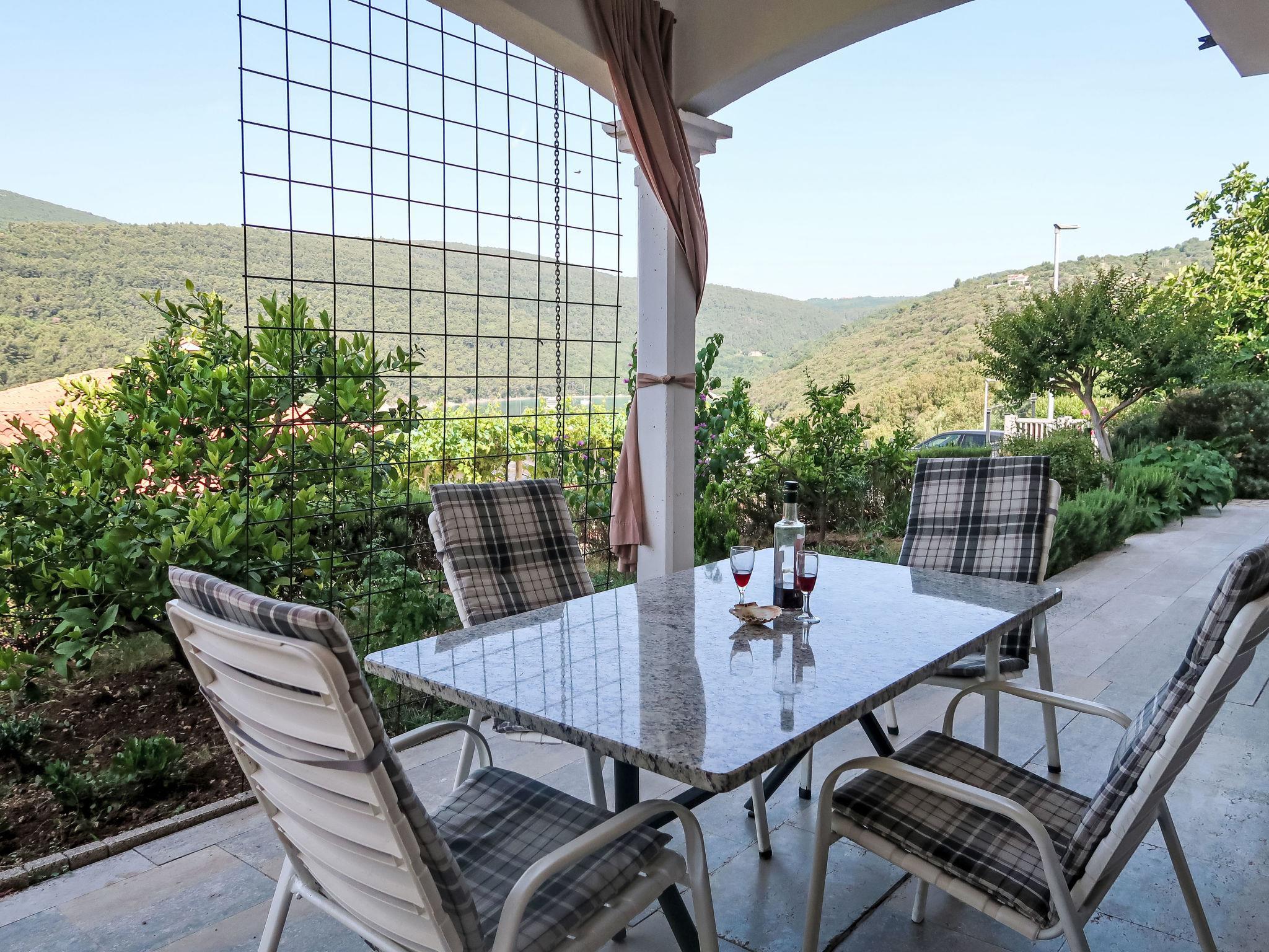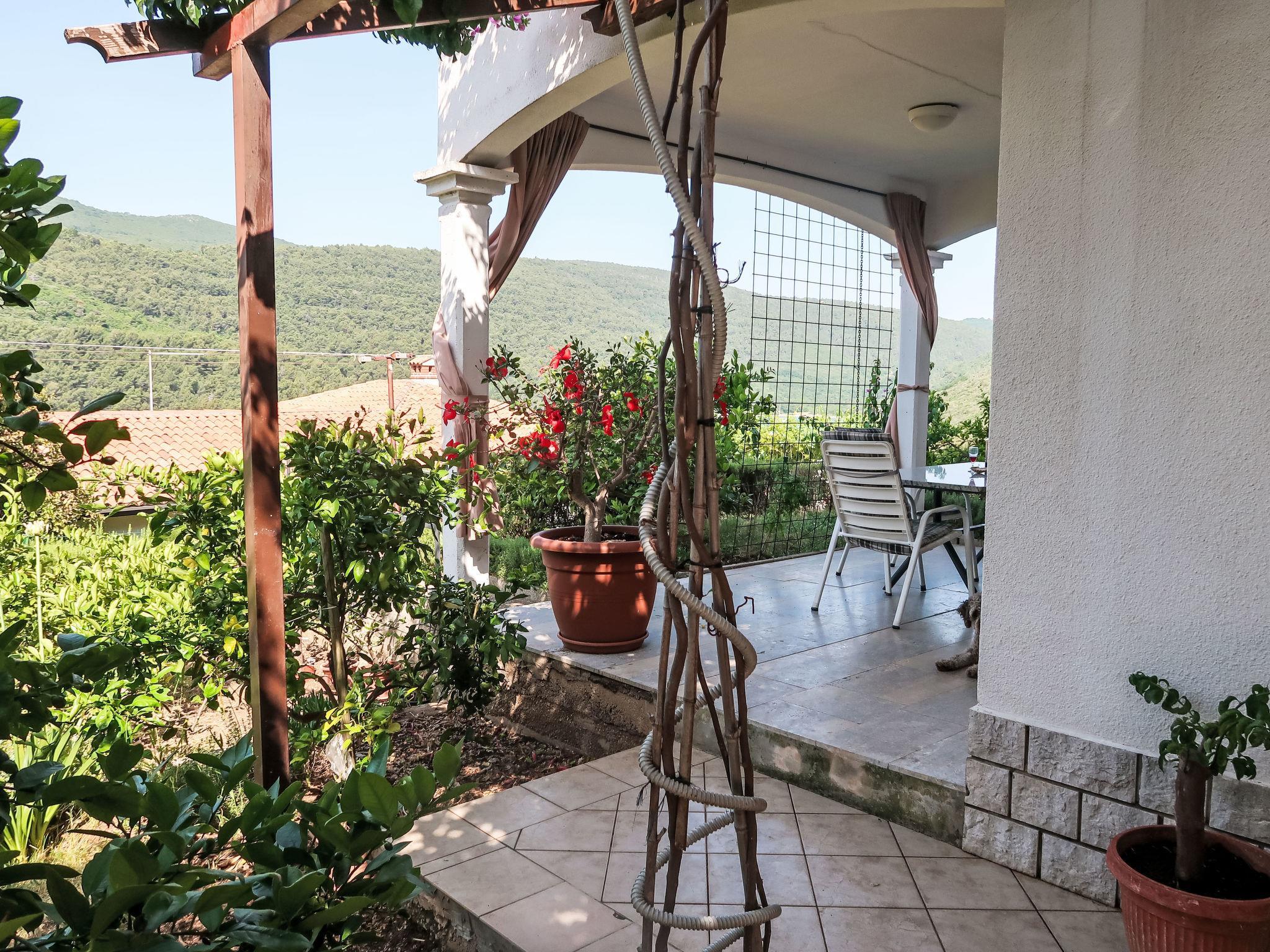 Einfamilienhaus "Violetta". Duga Luka Prtlog, 5 km vom Zentrum von Labin, 200 m vom Meer. Zur Mitbenutzung: Grundstück (eingezäunt) mit Pflanzen und Bäumen. Im Hause: Internetzugang. Parkplatz beim Haus auf dem Grundstück. Einkaufsgeschäft 5 km, Bushaltestelle 5.7 km, Kieselstrand 400 m, Felsstrand 200 m. Jacht-Hafen 11 km. Bitte beachten: private Bootsanlegestelle (extra).
