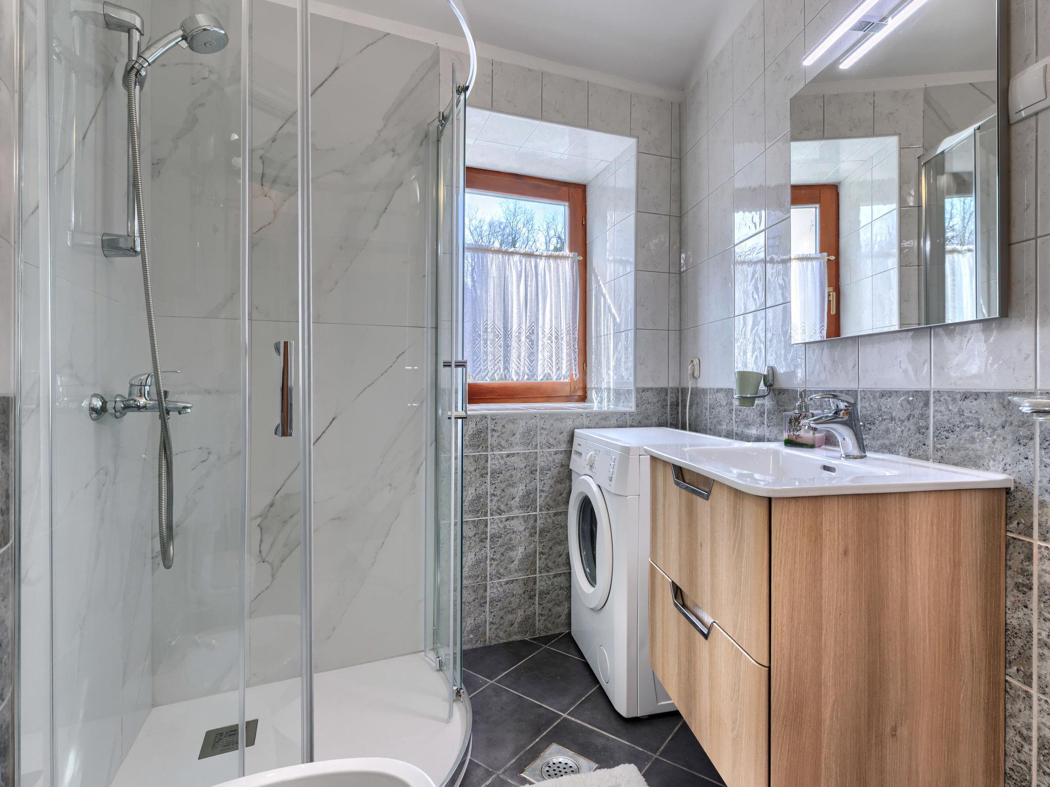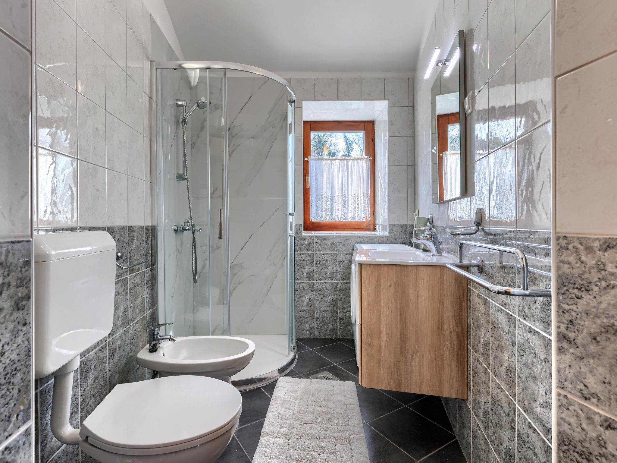 Landsitz, umgeben von Bäumen und Wiesen. 8 km vom Zentrum von Labin, 5 km vom Meer, in einer Sackgasse. Zur Mitbenutzung: Grundstück 6'000 m2 mit Bäumen, Wiese, Schwimmbad eckig (12 x 5 m, 135 cm tief, saisonale Verfügbarkeit: 15.Mai. - 25.Sep.) mit Innentreppe. Aussendusche, Volleyballfeld, Laube, Terrasse, Gartenmöbel, Grill, Kinderspielplatz (Rutschbahn, Schaukel). Im Hause: Internetzugang. Parkplatz auf dem Grundstück. Einkaufsgeschäft 300 m, Bushaltestelle 2.9 km, Kieselstrand 5 km, Felsstrand 5 km. Bitte beachten: Der Besitzer wohnt auf dem gleichen Grundstück.