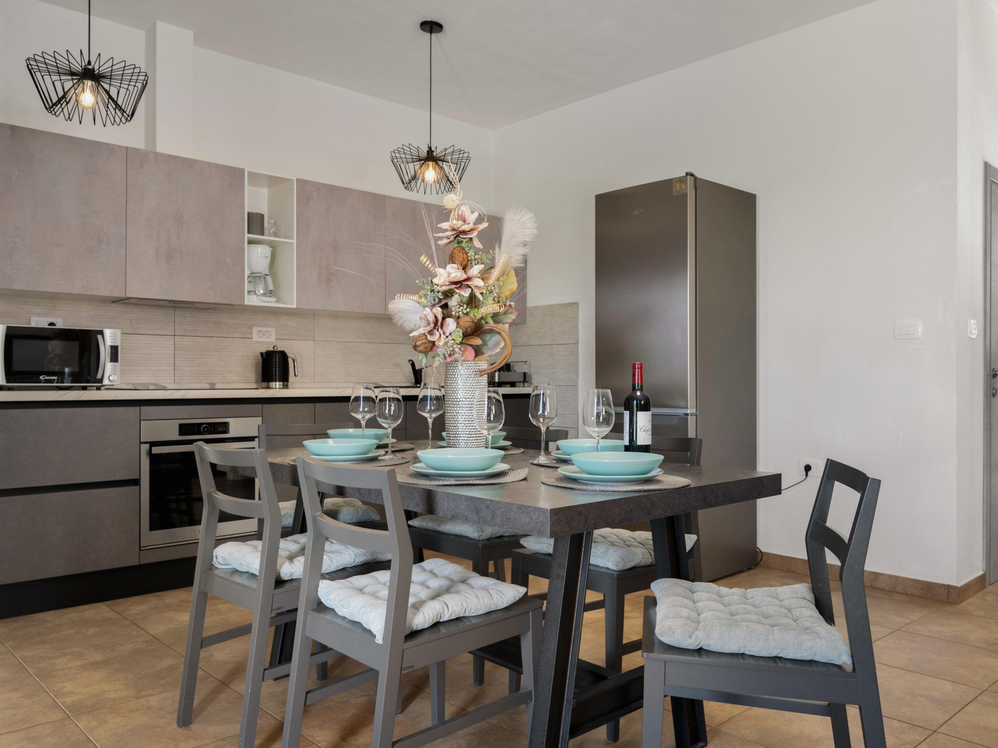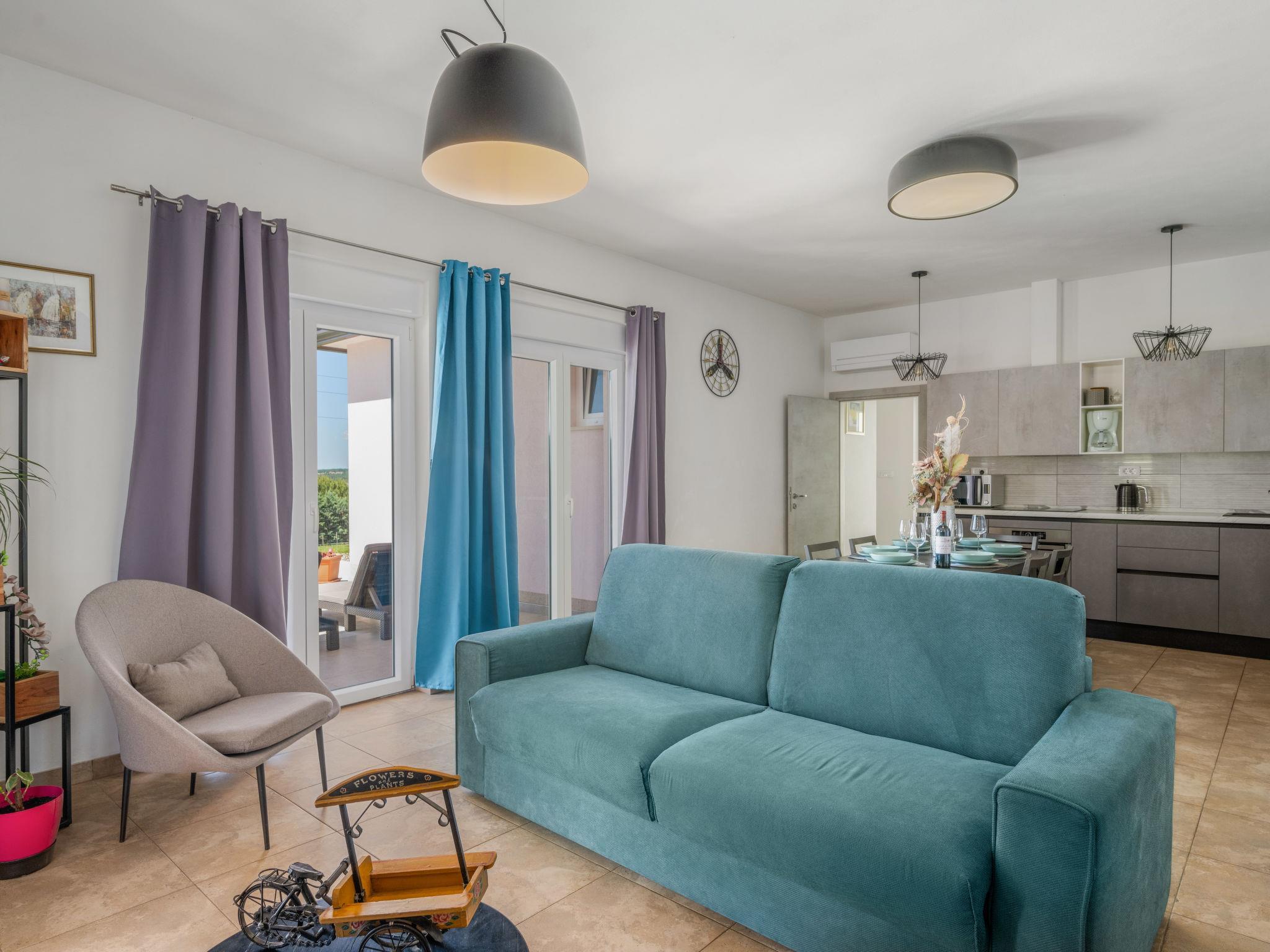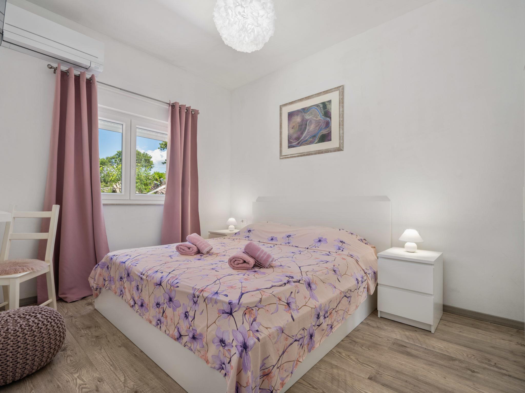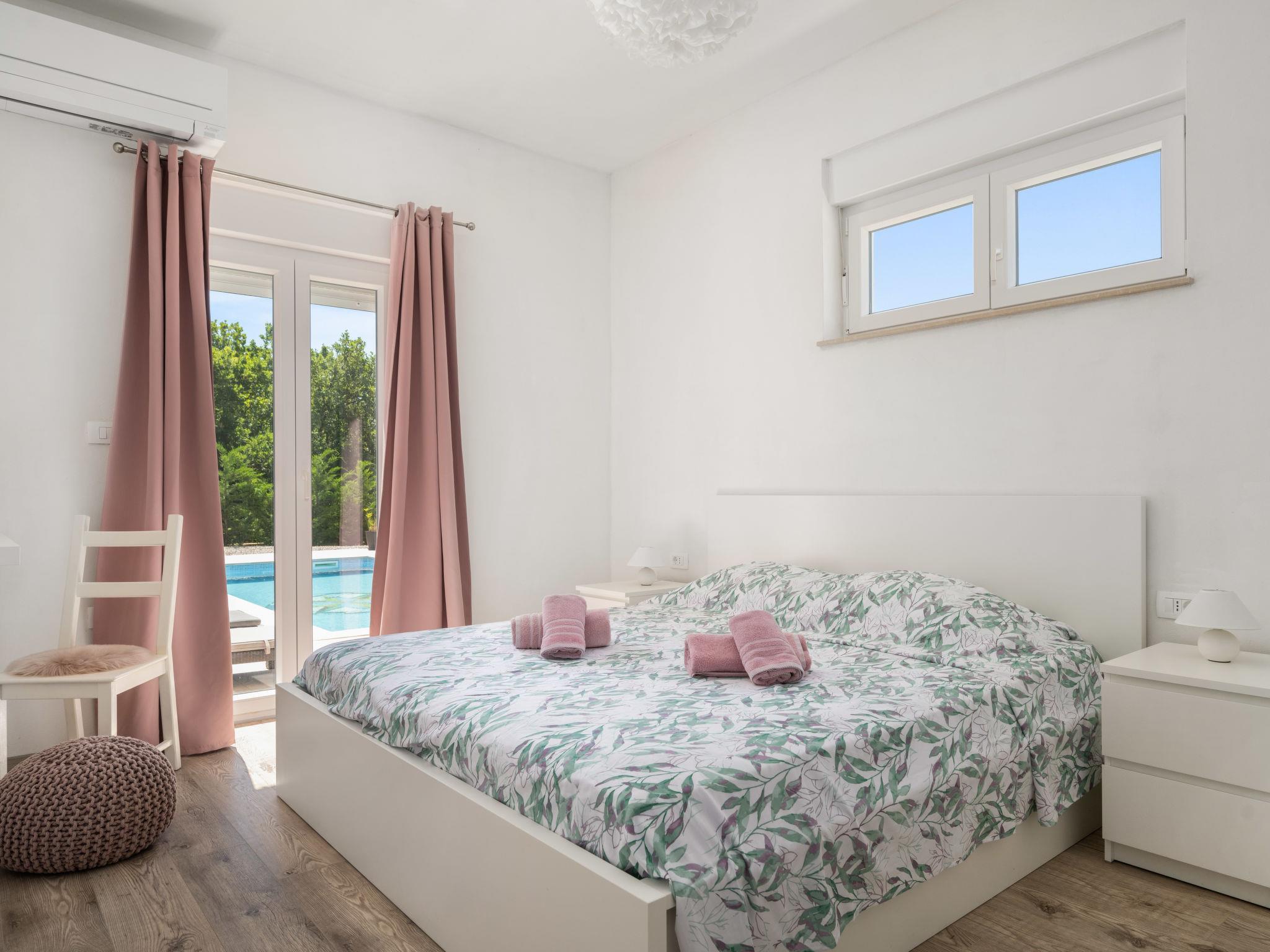 4-Zimmer-Haus 105 m2. Wohn-/Esszimmer mit Sat-TV und Klimaanlage. Ausgang zur Terrasse, zum Schwimmbad. 1 Zimmer mit 1 franz. Bett (180 cm, Länge 200 cm), Sat-TV und Klimaanlage. 1 Zimmer mit 1 franz. Bett (180 cm, Länge 200 cm), Sat-TV und Klimaanlage. Ausgang zur Terrasse, zum Schwimmbad. 1 Zimmer mit 1 Bett (90 cm, Länge 200 cm), 1 Ausziehbett (90 cm, Länge 200 cm), Dusche/WC. Offene Küche (Backofen, Geschirrspüler, 4 Induktionskochplatten, Toaster, Wasserkocher, Mikrowelle, Tiefkühler, elektrische Kaffeemaschine). Ausgang zur Terrasse, zum Schwimmbad. 2 Duschen/WC. E-Heizung, Klimaanlage. Terrasse 20 m2, überdacht. Terrassenmöbel, Liegestühle. Eingeschränkte Sicht auf das Meer. Zur Verfügung: Waschmaschine, Wäschetrockner, Bügeleisen, Haartrockner. Internet (Wireless LAN, gratis). Bitte beachten: Nichtraucher-Haus.
