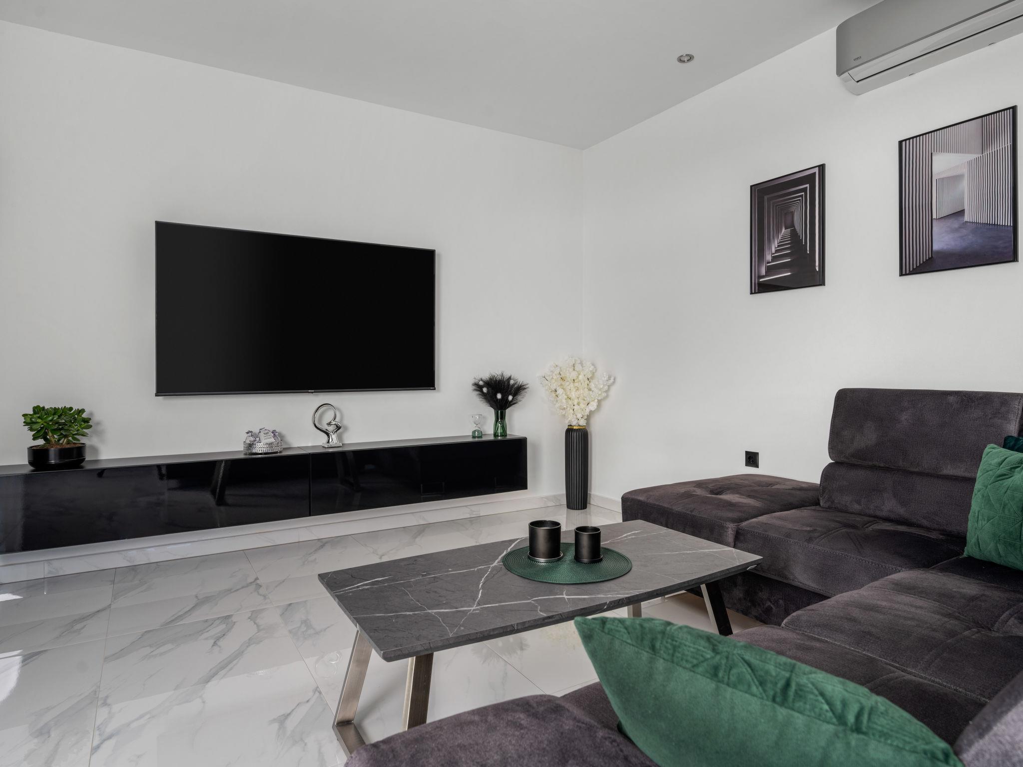 4-Zimmer-Haus 120 m2. Objekt geeignet für 6 Erwachsene + 2 Kinder. Schön und gemütlich eingerichtet: Wohn-/Esszimmer mit 1 Doppeldiwanbett (160 cm, Länge 200 cm), Sat-TV und Klimaanlage. Ausgang zur Terrasse, zum Schwimmbad. 1 Zimmer mit 1 franz. Bett (160 cm, Länge 200 cm), Dusche/WC, Sat-TV und Klimaanlage. Ausgang zur Terrasse, zum Schwimmbad. 1 Zimmer mit 1 franz. Bett (160 cm, Länge 200 cm), Dusche/WC, Sat-TV und Klimaanlage. Ausgang zur Terrasse. 1 Zimmer mit 2 Betten (90 cm, Länge 200 cm), Sat-TV und Klimaanlage. Offene Küche (Backofen, Geschirrspüler, 4 Induktionskochplatten, Toaster, Wasserkocher, Mikrowelle, Tiefkühler, elektrische Kaffeemaschine). Ausgang zur Terrasse, zum Schwimmbad. Dusche/WC. E-Heizung, Klimaanlage. Terrasse 25 m2, überdacht. Terrassenmöbel, Liegestühle. Zur Verfügung: Safe, Bügeleisen, Haartrockner. Internet (Wireless LAN, gratis). Bitte beachten: Nichtraucher-Haus.