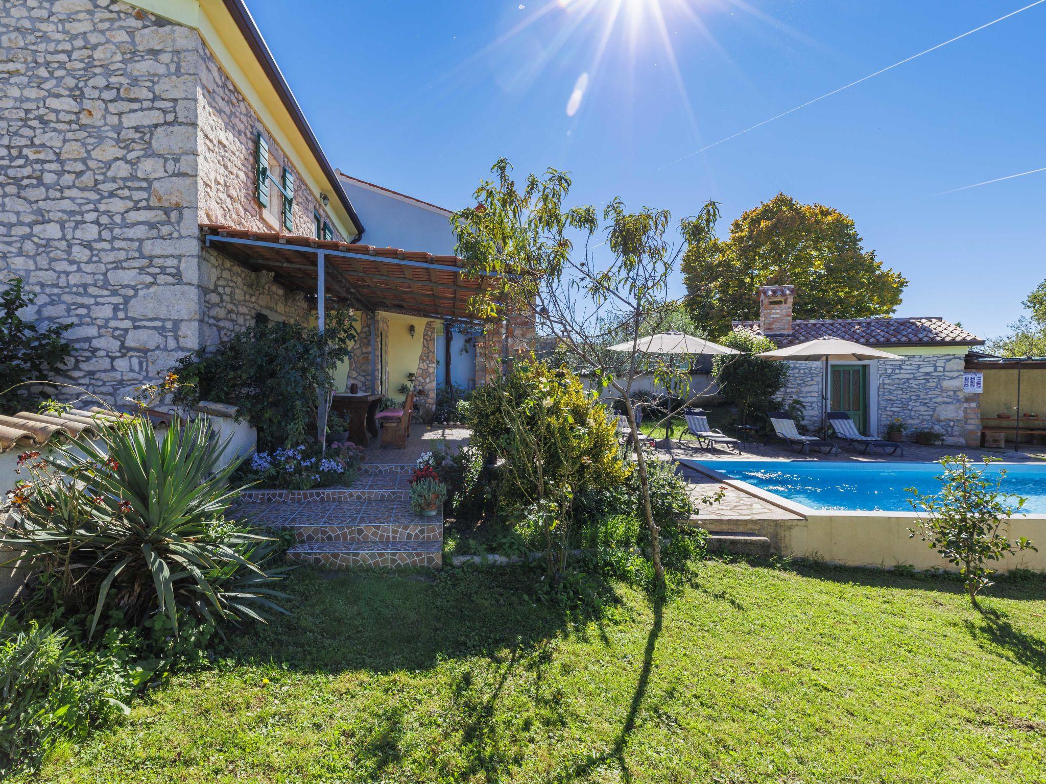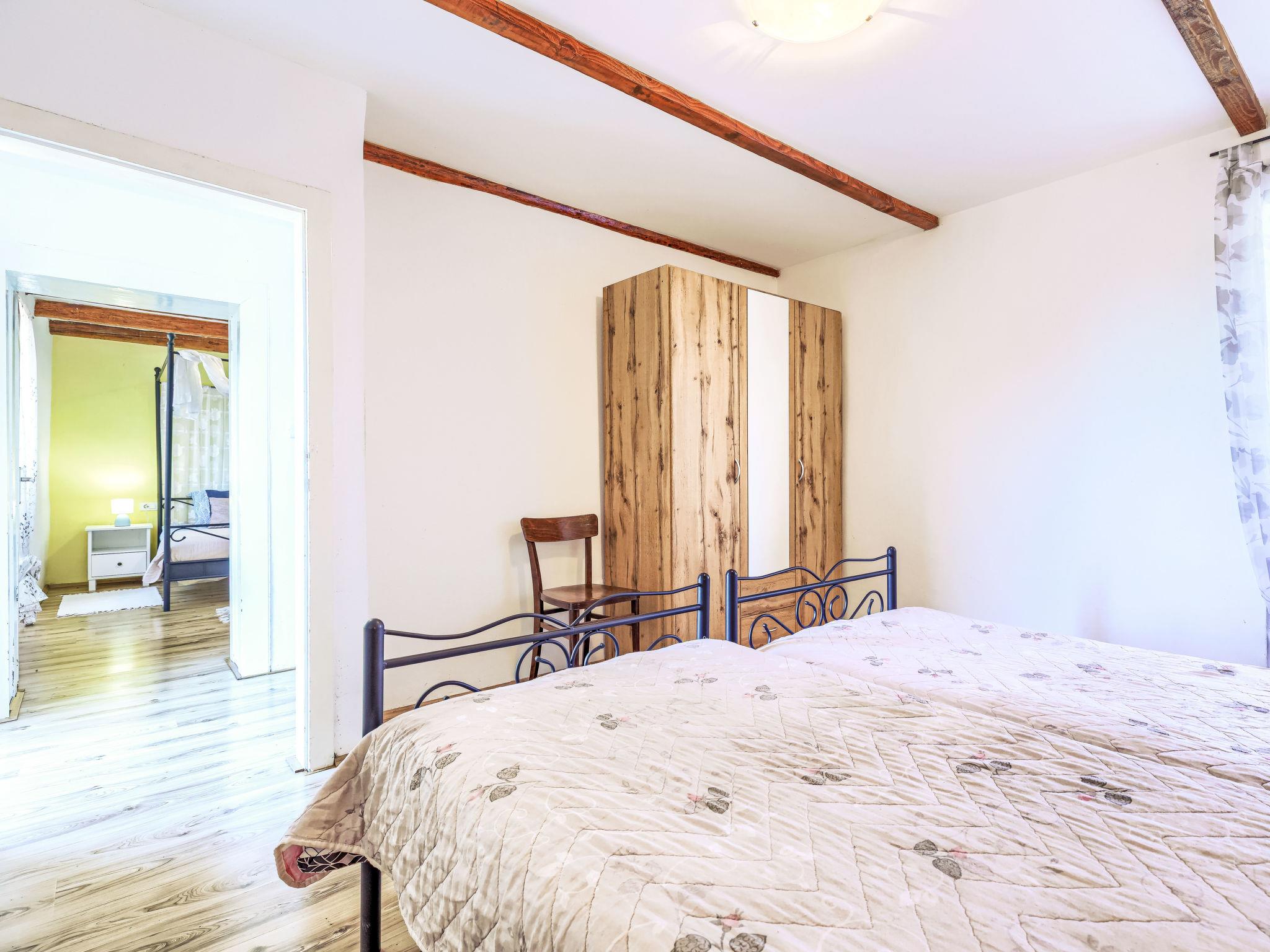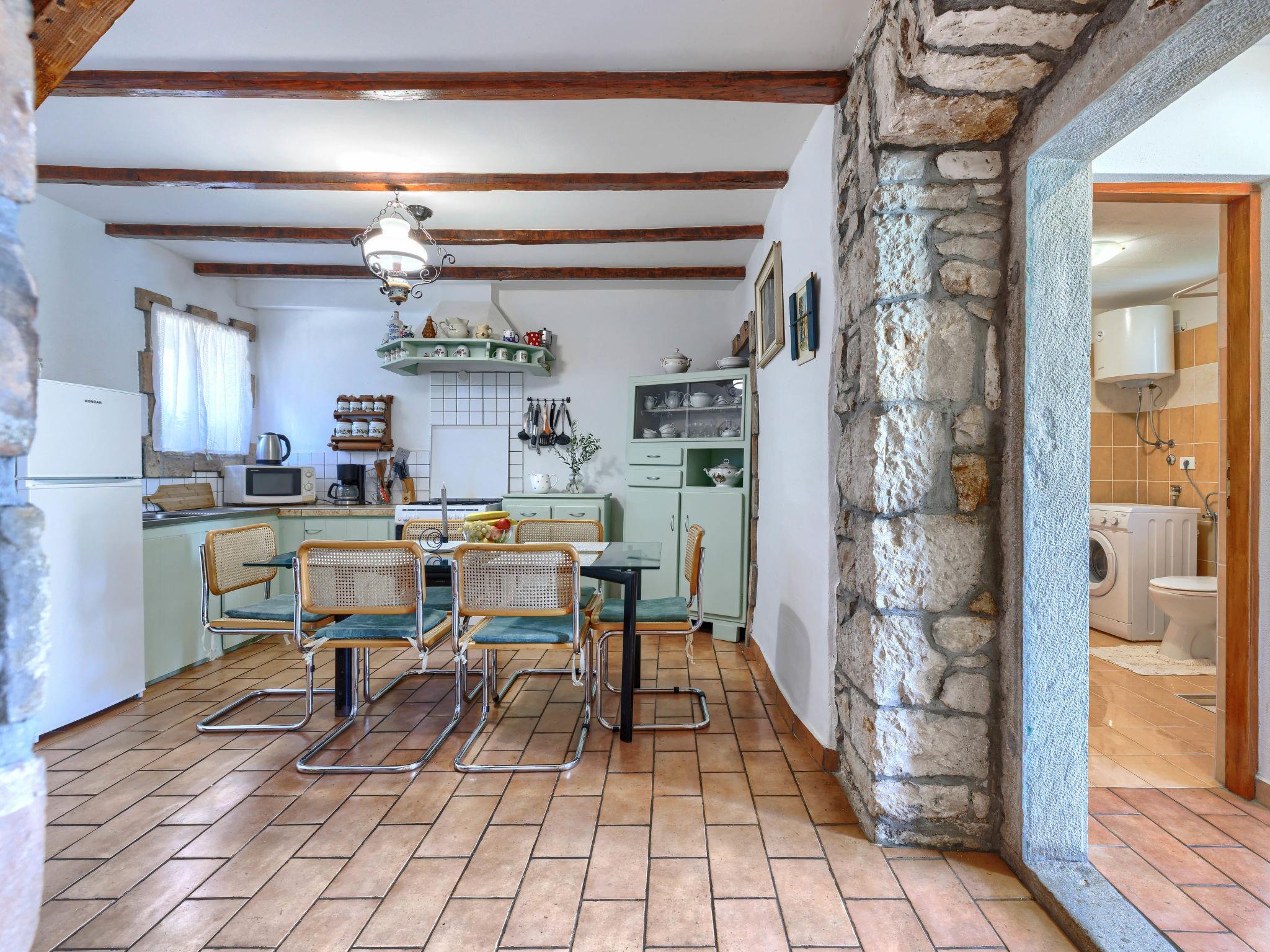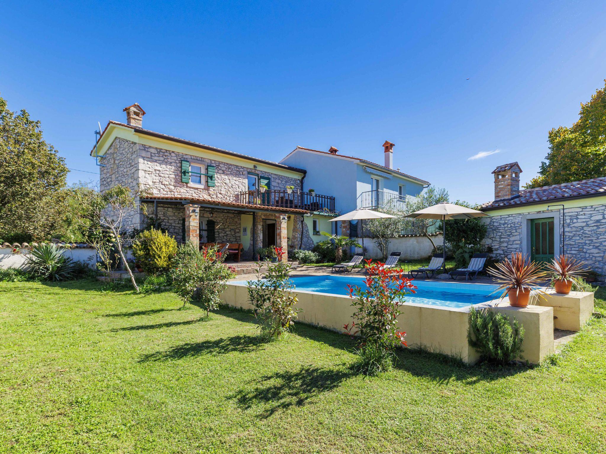 Rustikales Doppelhaus "Marija", auf 2 Stockwerken. Im Weiler Markoci, 7 km vom Zentrum von Labin, 12 km vom Zentrum von Rabac, 12 km vom Meer, 12 km vom Strand, im Grünen. Zur Alleinbenutzung: Grundstück 500 m2 (eingezäunt), Rasen und Pflanzen, Schwimmbad eckig (7 x 4 m, 140 cm tief, saisonale Verfügbarkeit: 01.Apr. - 30.Okt.) mit Innentreppe. Aussendusche, Terrasse (20 m2), Gartenmöbel, Grill, Poolpflege durch den Besitzer/Gärtner. Im Hause: Internetzugang, Waschmaschine. Parkplatz (für 2 Autos) beim Haus auf dem Grundstück. Einkaufsgeschäft 2 km, Supermarkt 7 km, Restaurant 2 km, Bushaltestelle "Labin" 7 km, Kieselstrand 12 km. Bitte beachten: Flugplatz 50 km vom Haus.