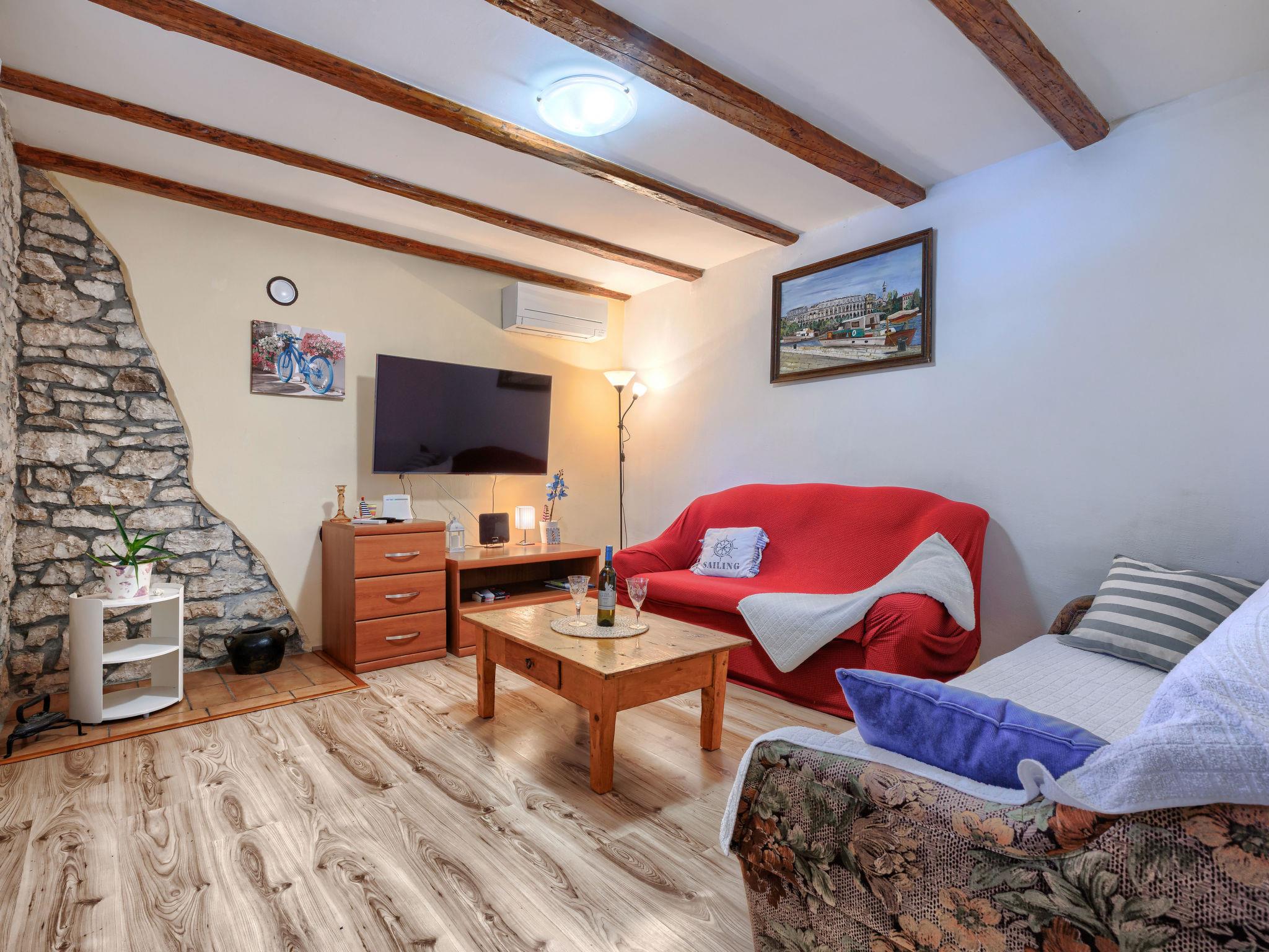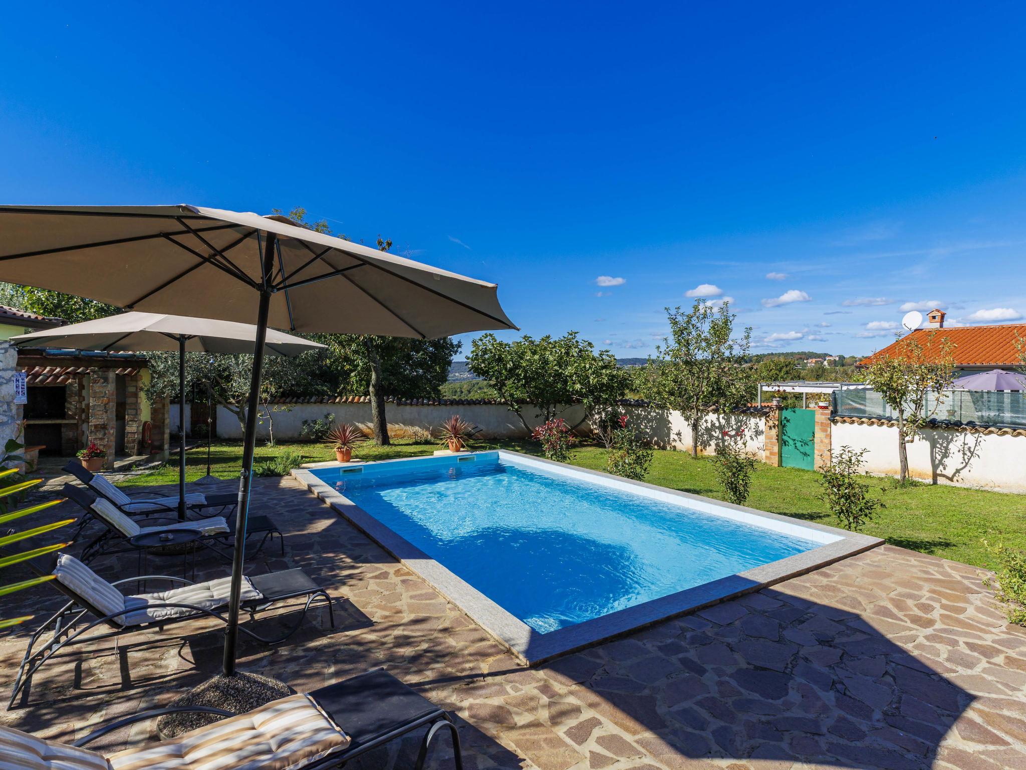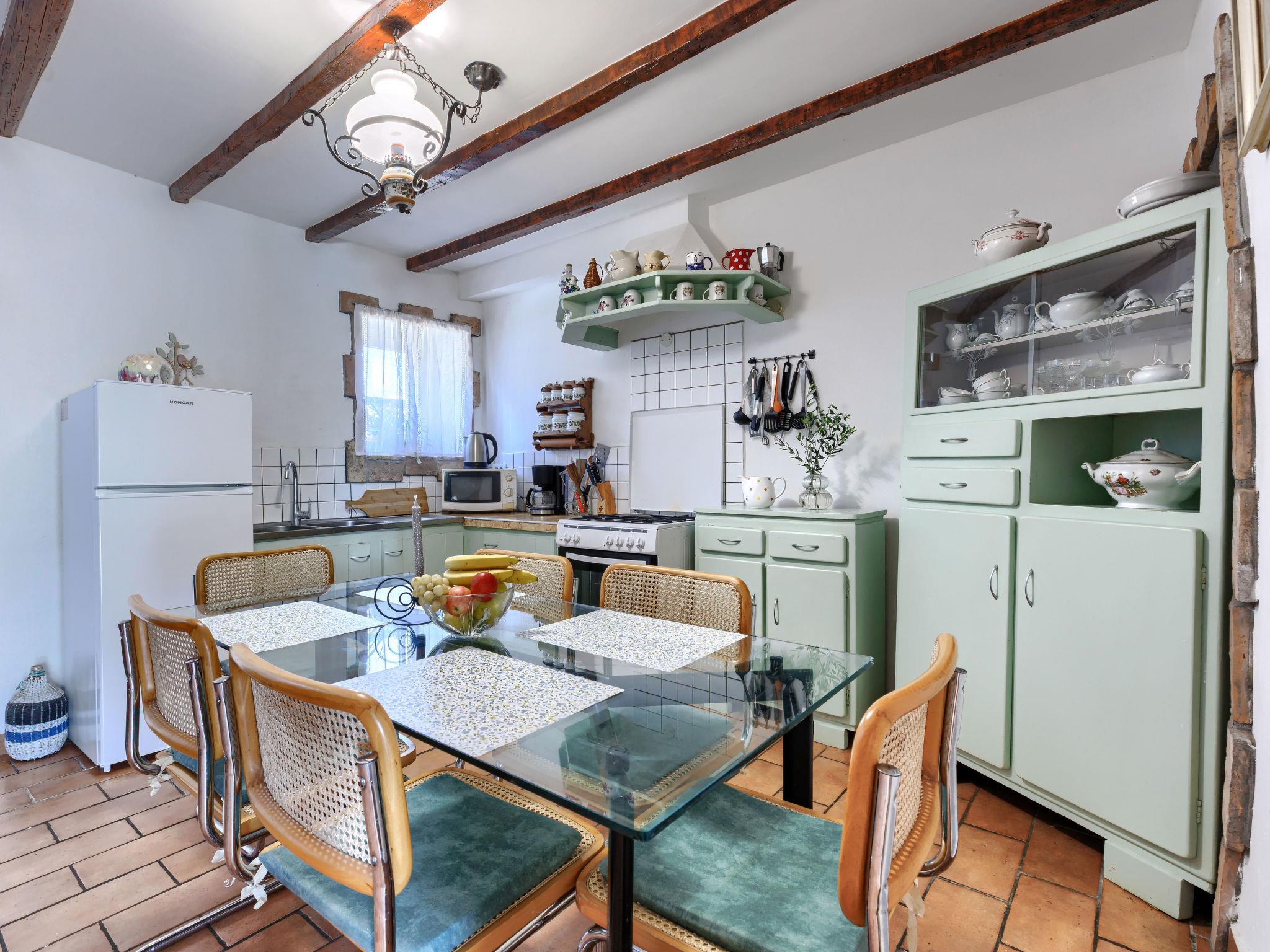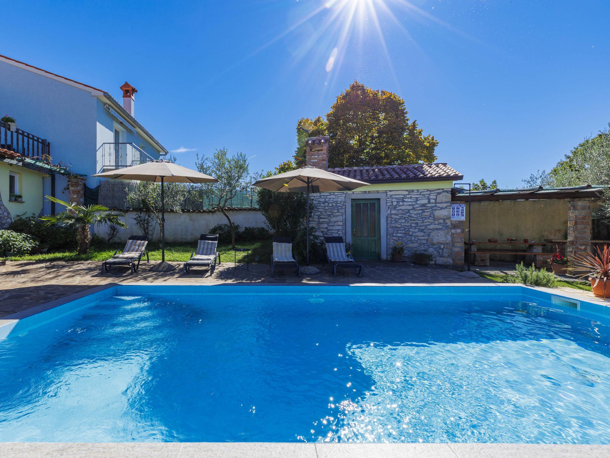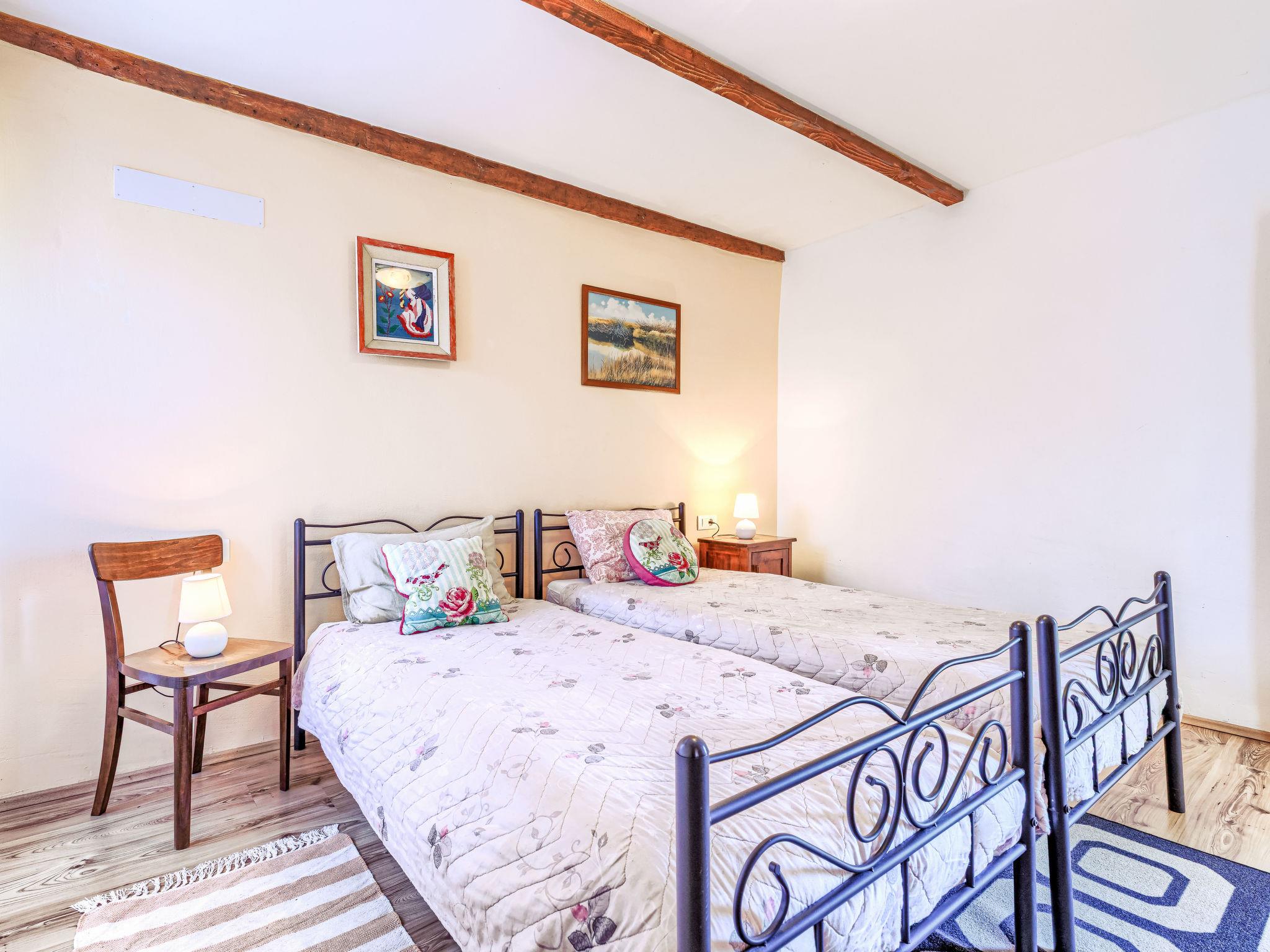 Rustikales Doppelhaus "Marija", auf 2 Stockwerken. Im Weiler Markoci, 7 km vom Zentrum von Labin, 12 km vom Zentrum von Rabac, 12 km vom Meer, 12 km vom Strand, im Grünen. Zur Alleinbenutzung: Grundstück 500 m2 (eingezäunt), Rasen und Pflanzen, Schwimmbad eckig (7 x 4 m, 140 cm tief, saisonale Verfügbarkeit: 01.Apr. - 30.Okt.) mit Innentreppe. Aussendusche, Terrasse (20 m2), Gartenmöbel, Grill, Poolpflege durch den Besitzer/Gärtner. Im Hause: Internetzugang, Waschmaschine. Parkplatz (für 2 Autos) beim Haus auf dem Grundstück. Einkaufsgeschäft 2 km, Supermarkt 7 km, Restaurant 2 km, Bushaltestelle "Labin" 7 km, Kieselstrand 12 km. Bitte beachten: Flugplatz 50 km vom Haus.