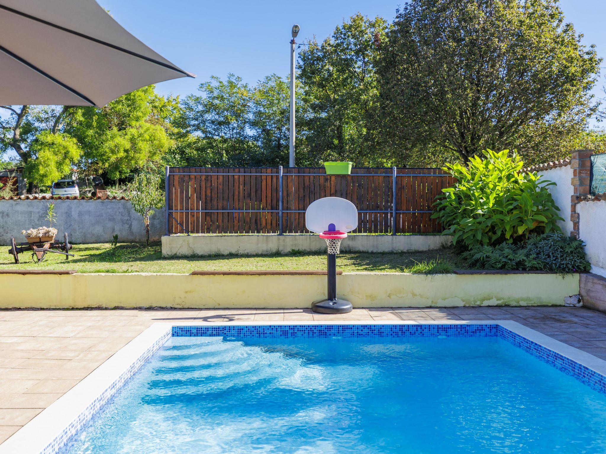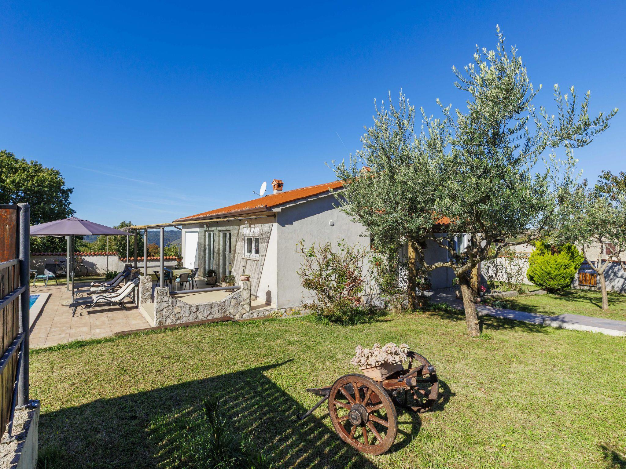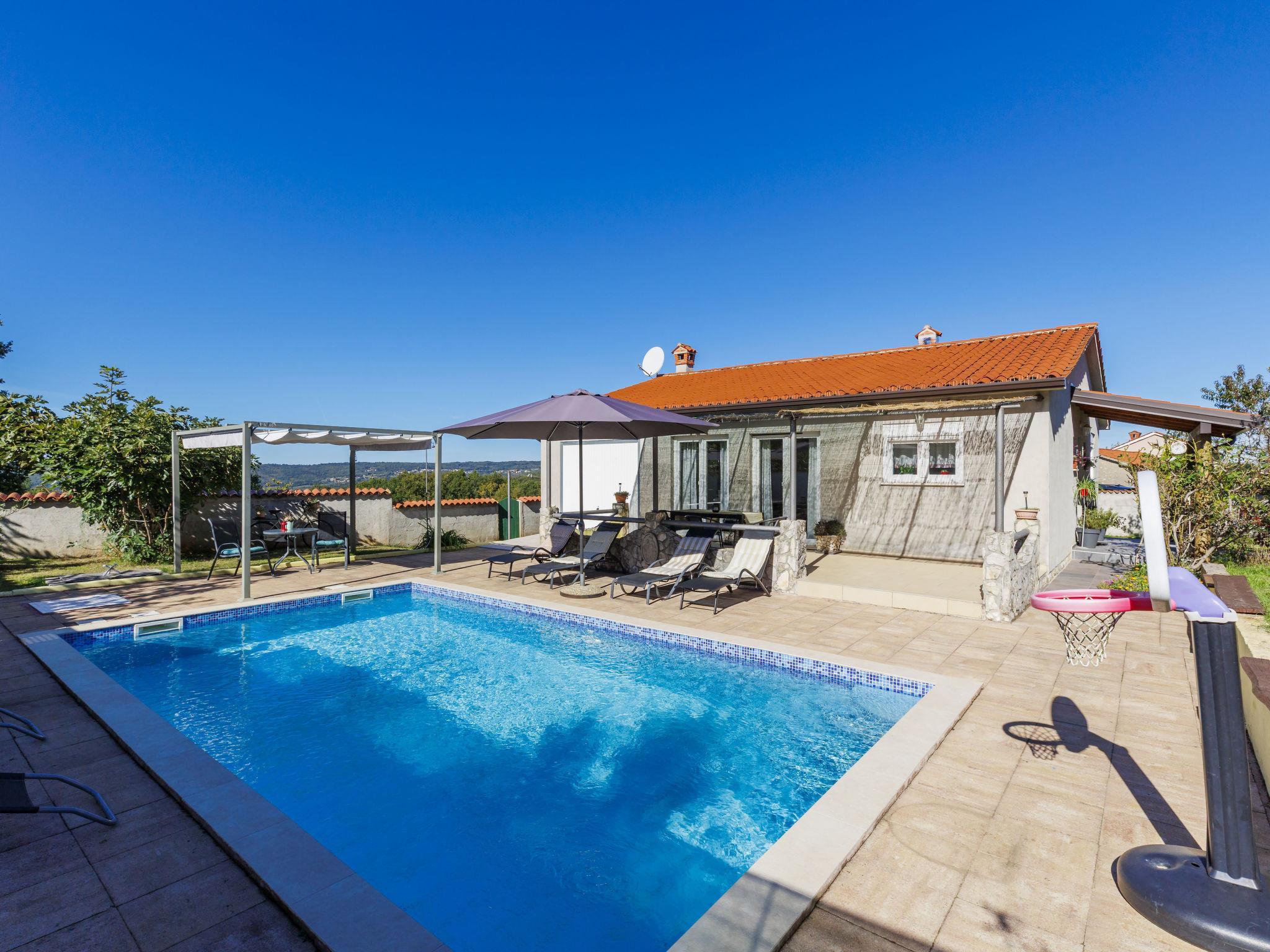 Einfamilienhaus "Sandra". Im Weiler Markoci, 7 km vom Zentrum von Labin, 12 km vom Zentrum von Rabac, 12 km vom Meer, 12 km vom Strand, im Grünen. Zur Alleinbenutzung: Grundstück 700 m2 (eingezäunt), Rasen und Pflanzen, Schwimmbad eckig (7 x 4 m, 140 cm tief, saisonale Verfügbarkeit: 01.Apr. - 30.Okt.) mit Innentreppe. Aussendusche, Terrasse (20 m2), Gartenmöbel, Grill, Poolpflege durch den Besitzer/Gärtner. Im Hause: Internetzugang, Waschmaschine. Parkplatz (für 2 Autos) beim Haus auf dem Grundstück. Einkaufsgeschäft 2 km, Supermarkt 7 km, Restaurant 2 km, Bushaltestelle "Labin" 12 km, Kieselstrand 12 km. Bitte beachten: Flugplatz 50 m vom Haus.
