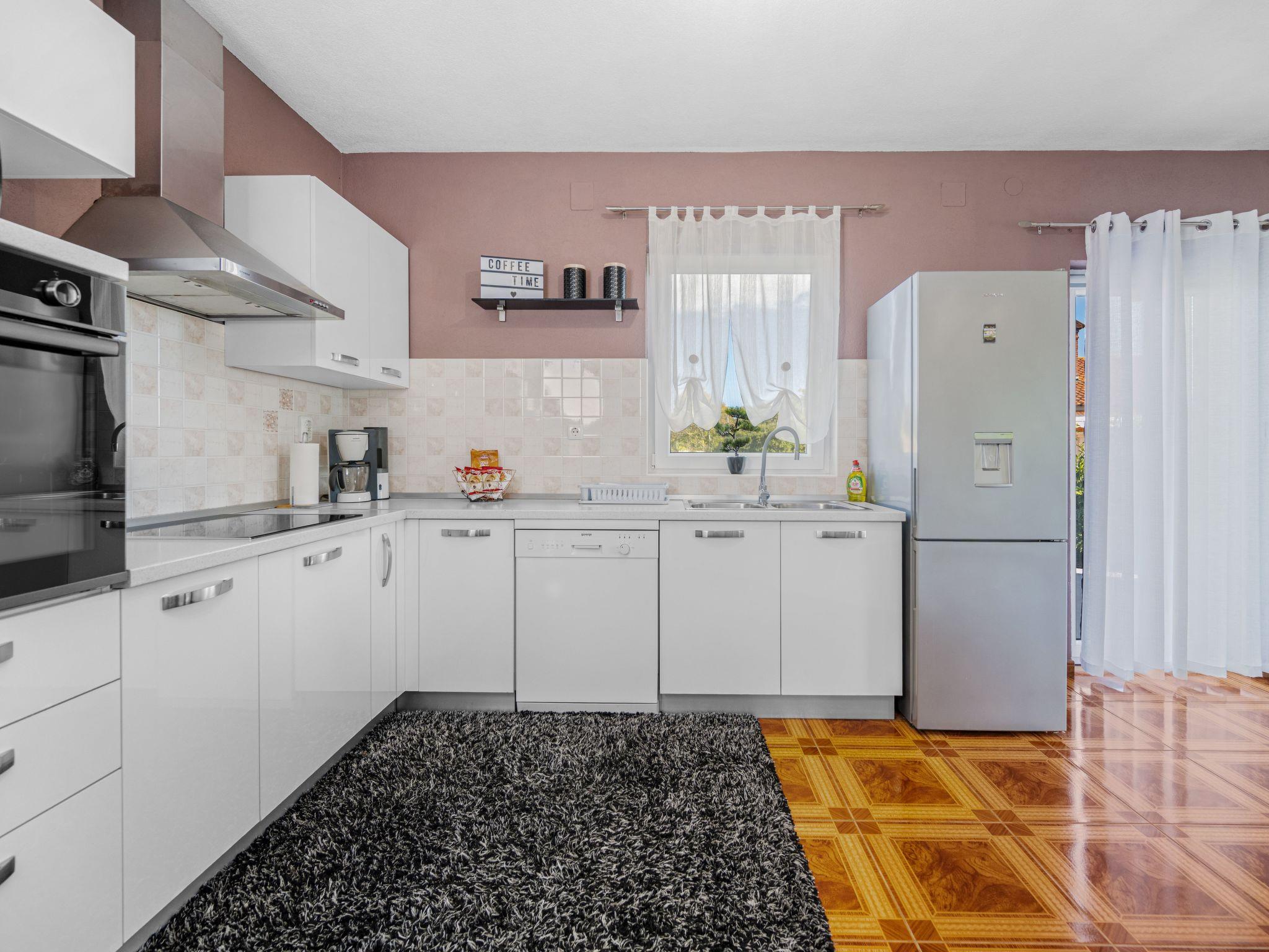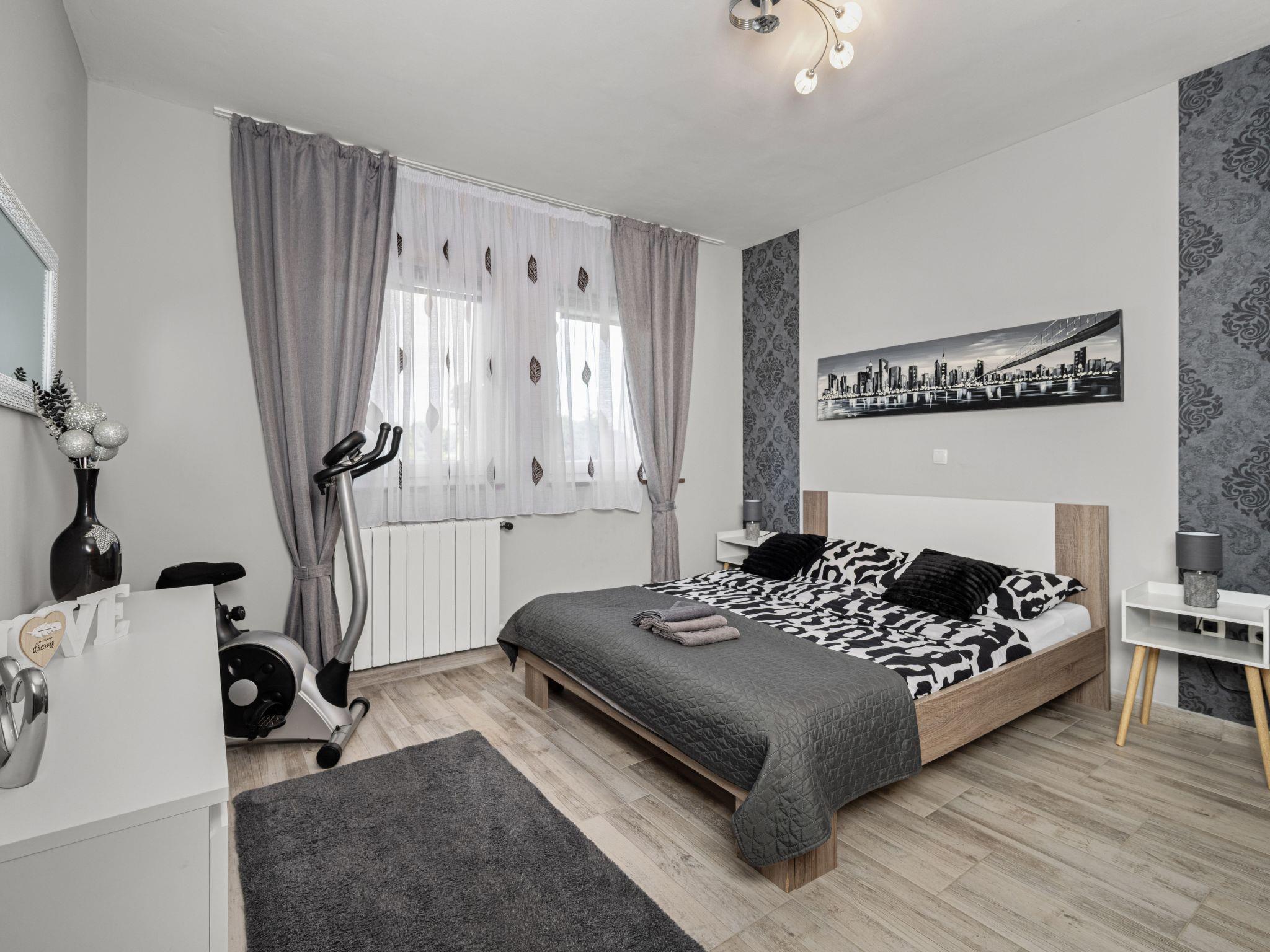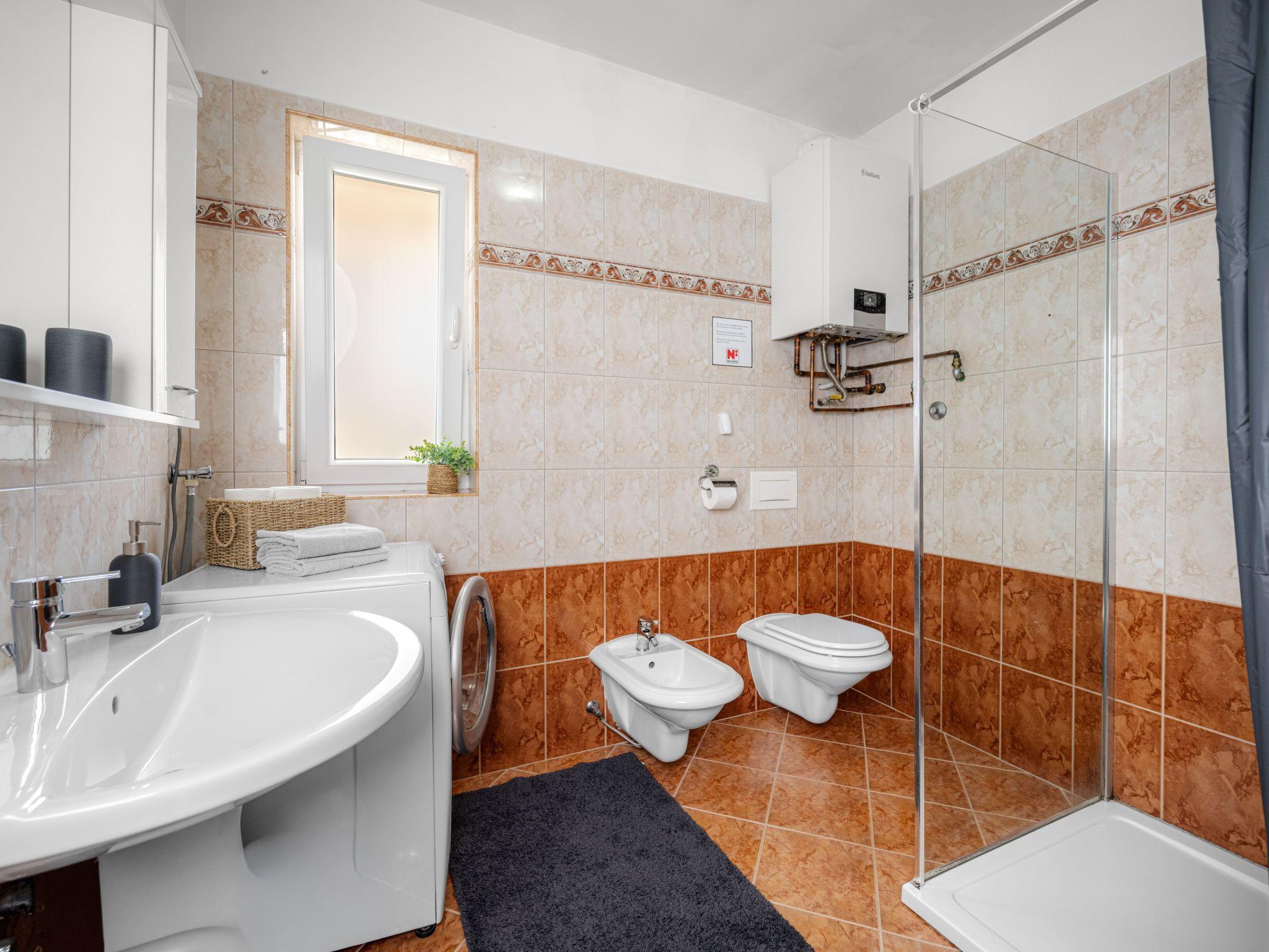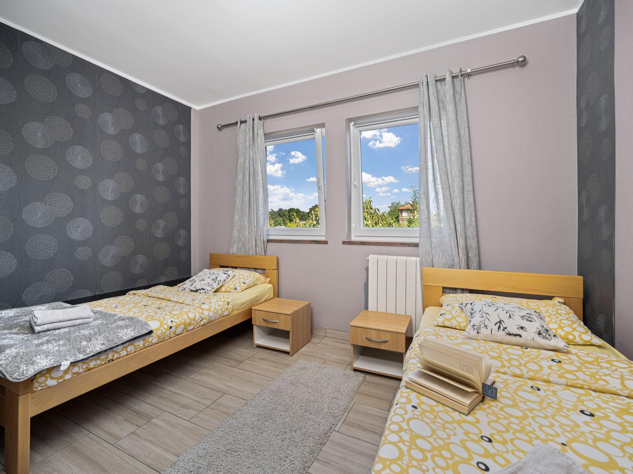 Dieses wunderschöne und gepflegte Doppelhaus befindet sich in Labin in einem hübschen Vorort Names Marceljani. Die traumhaften Strände von Rabac sind nur 15 Autominuten entfernt. Die historische Altstadt Labins erreichen Sie in nur 6 Minuten. Zahlreiche Restaurants, Bars und Einkaufsmöglichkeiten befindet sich in Ihrer unmittelbarer Nähe. Sie bewohnen für die Dauer Ihres Aufenthaltes den gesamten oberen Stock dieser Doppelhaushälfte. Privatsphäre ist garantiert, denn der Pool und der Außenbereich stehen Ihnen zur alleinigen Verfügung. Zudem besitzen Sie einen separaten und eigenen Hauseingang. Haus D&E bietet Platz für bis zu 8 Personen und beinhaltet 4 Schlafzimmer. Davon sind 3 Schlafzimmer mit Doppelbetten- und 1 Schlafzimmer mit 2 Einzelbetten ausgestattet. Insgesamt 2 Badezimmer, eine großzügige Küche und ein gemütliches Wohnzimmer bieten auf insgesamt 138m2 genügend Platz zum entspannen.Die gepflegte Poollandschaft, der herrliche Garten und die idyllische Grillstelle laden zum freudigen BBQ, entspannen und Sonnen ein. Lassen Sie die Seele baumeln und genießen Sie einen entspannten Aufenthalt in dieser charmanten Location.KurzbeschreibungSonstiges : NichtraucherhausKurzbeschreibung 1Anzahl Küchen : 1UmgebungLeihmöglichkeiten : Autovermietung, Bootsverleih, FahrradverleihSportmöglichkeiten in der Umgebung : Angeln, Radtouren, Rudern, Segeln, Sportcenter, Squash, Surfen, Tauchen, Tennis, WasserskiGarten und AussenanlagenFreizeiteinrichtungen am Objekt : Außenpool alleinige Nutzung, SwimmingpoolGartenausstattung : Gartenmöbel vorhanden, Grill