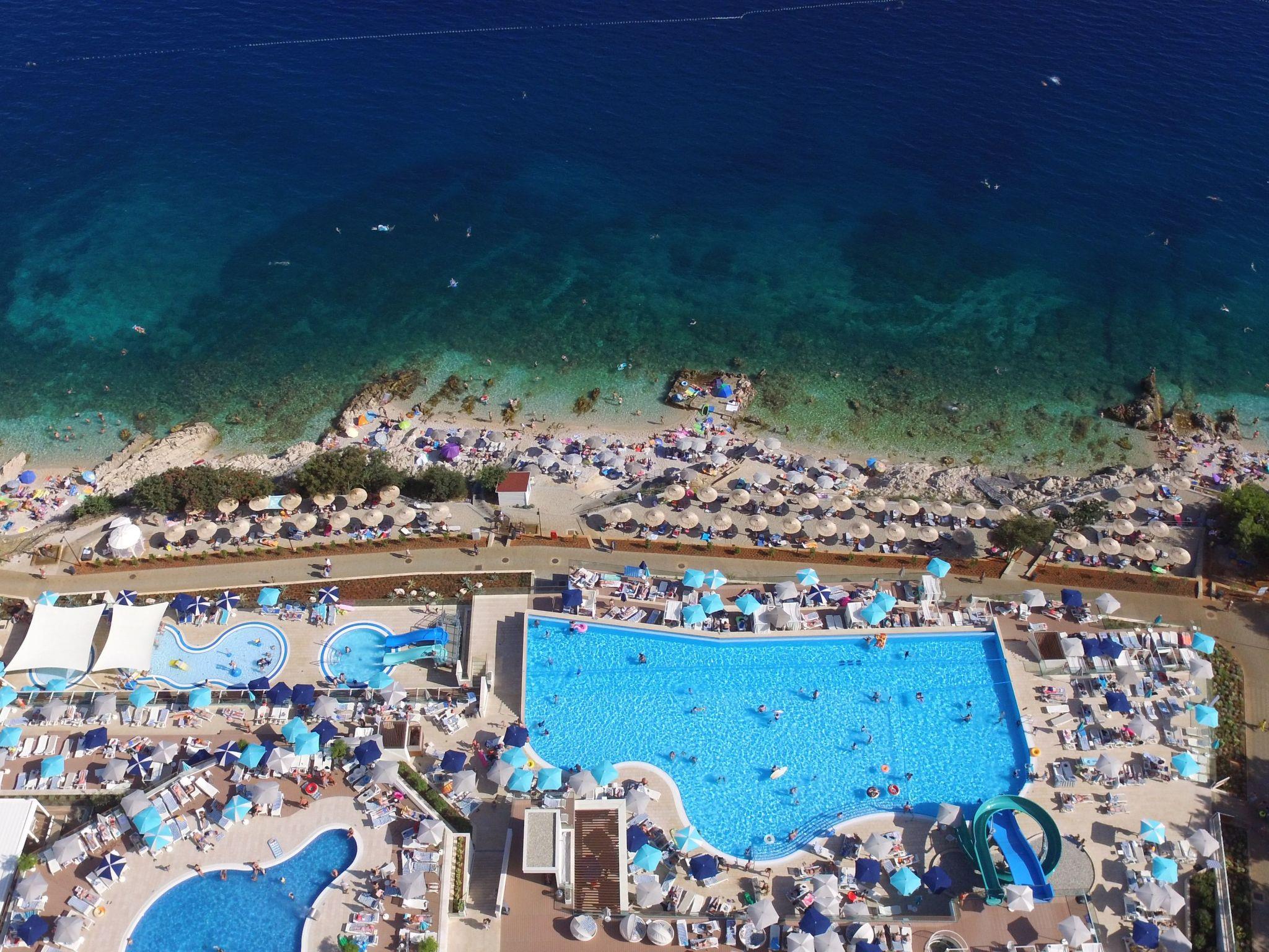 Genießen Sie ein Sonnenbad auf der überdachten Terrasse mit Liegestühlen und Sonnenschirmen. Oder erfrischen Sie sich in Ihrem eigenen privaten Pool.