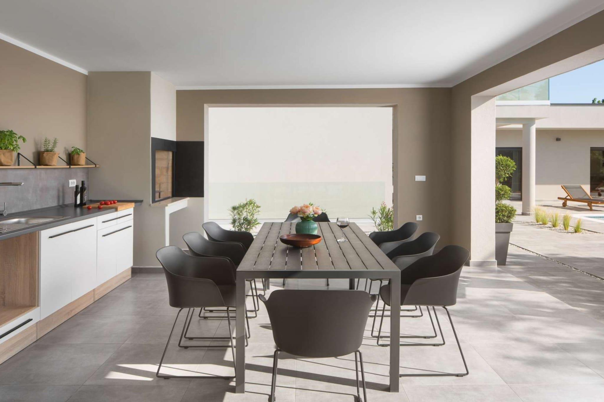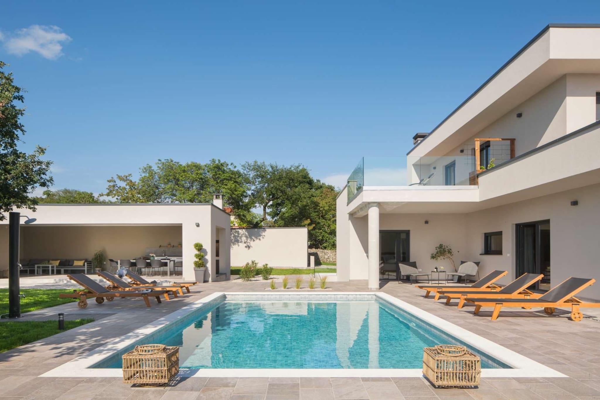 Diese attraktive Villa in Labin, Istrien, ist perfekt für einen erholsamen Urlaub mit Familie oder Freunden. Nur 7 km vom Strand entfernt, bietet sie einen privaten Außenpool und ein Fitnessstudio – ideal für aktive Reisende. Die großzügige Terrasse und der Garten bieten viel Platz zum Entspannen, egal ob Sie im Freien frühstücken oder die Sonne genießen. Der historische Charme von Labin ist nur 4 km entfernt. Hier erwarten Sie gepflasterte Straßen, gemütliche Cafés und ein Panoramablick auf die Adria. Erkunden Sie die Altstadt, besuchen Sie die Marienkirche oder genießen Sie die Landschaft vom Aussichtspunkt auf dem Hügel. Ein Supermarkt ist 4 km entfernt und lokale Restaurants erreichen Sie von der Villa aus nach nur 2 km. Die Villa verfügt über eine Außenküche, einen Balkon und einen privaten Parkplatz. Ob Sie trainieren, schwimmen oder ein Abendessen bei Sonnenuntergang genießen – diese Villa bietet alles, was Sie für einen unvergesslichen Urlaub in Istrien brauchen.