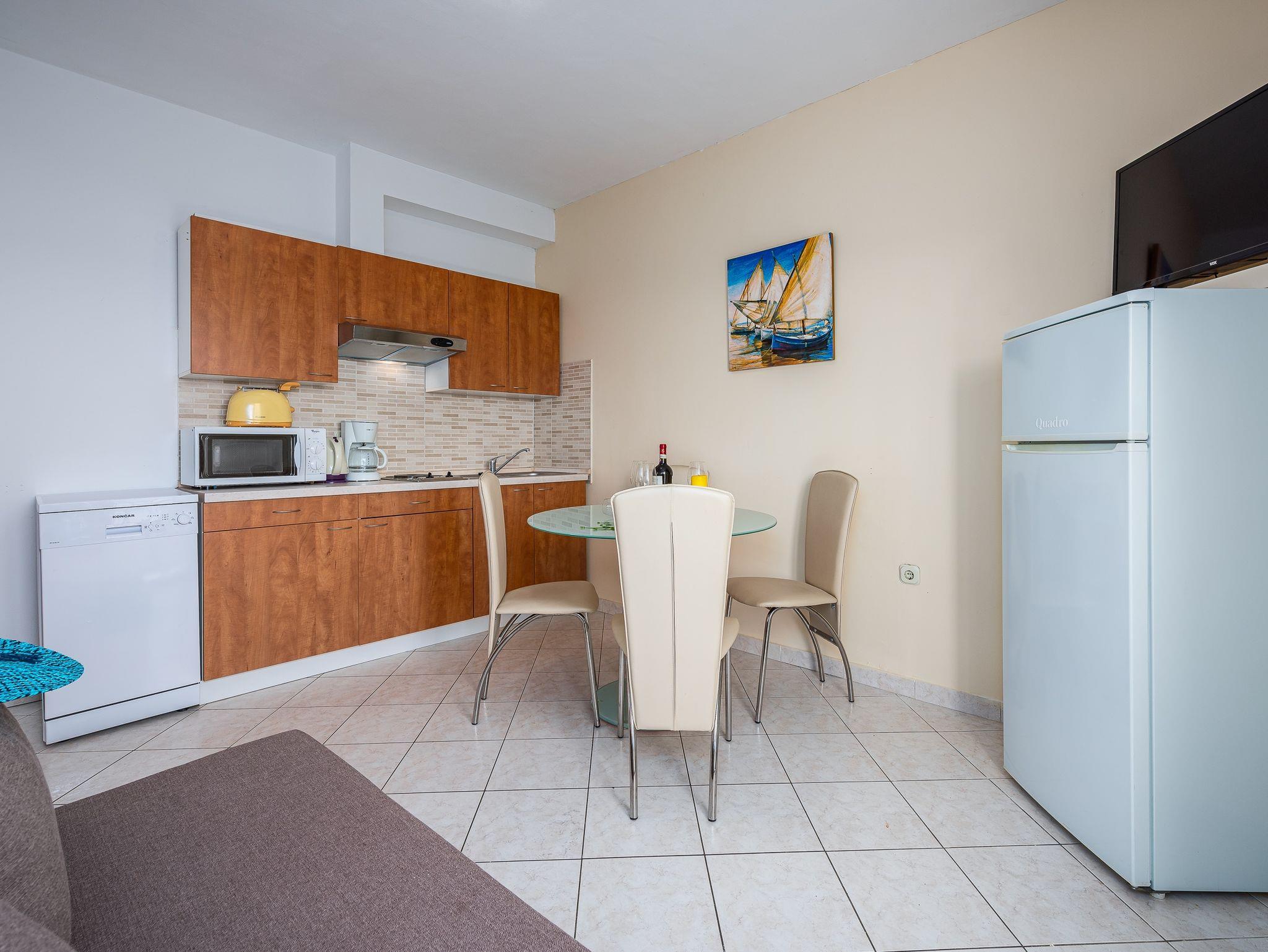 Ferienwohnung bietet Platz für 5 Gäste. Die Betten sind in Schlafzimmern, die es 2 gibt, und in Wohnzimmer, innerhalb einer Gesamtfläche von 49m2, angeordnet. Die Gäste haben einen eigenen Balkon zur Verfügung, auf der sie in warmen Sommernächten genießen können. Das Apartment bietet Meerblick. Es ist erlaubt, Speisen auf dem Gemeinschafts-Grill vorzubereiten. Während ihres Aufenthalts können Gäste das gemeinsam zur Nutzung stehende Schwimmbad benutzen. In der Unterkunftseinheit besteht die Möglichkeit des Mitbringens von Haustieren gegen Aufpreis. IM PREIS INBEGRIFFEN: Kurtaxe, Endreinigung, Klimatisierung, Pool, Parkplatz, Internet, Wäschewaschen, Kinderbett, Bügeleisen, Bügelbrett, Föhn. UNVERBINDLICHE ZUSÄTZLICHE KOSTEN: Haustiere (10,00 € pro Nacht), Fahrrad (20,00 € täglich (pro Stück)). Die Verfügbarkeit zusätzlicher Dienstleistungen in Ihrem reservierten Termin und die Preise derselben (falls nicht aufgeführt) müssen im Voraus überprüft werden. Zusätzliche Dienstleistungen die in der Zahlungsaufforderung nicht aufgeführt sind werden direkt beim Vermieter bezahlt, angenommen der Gast nutzt auch diese.