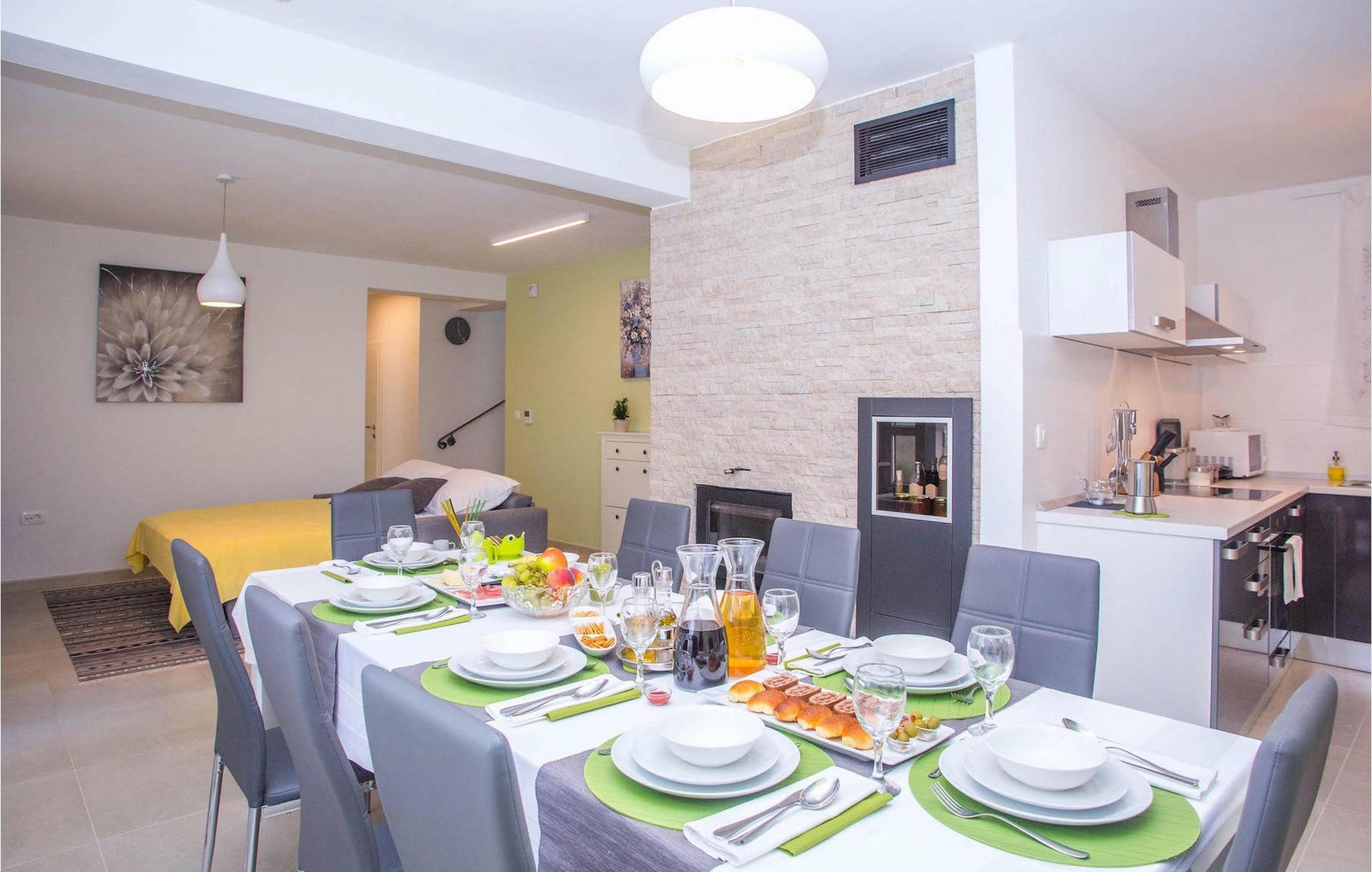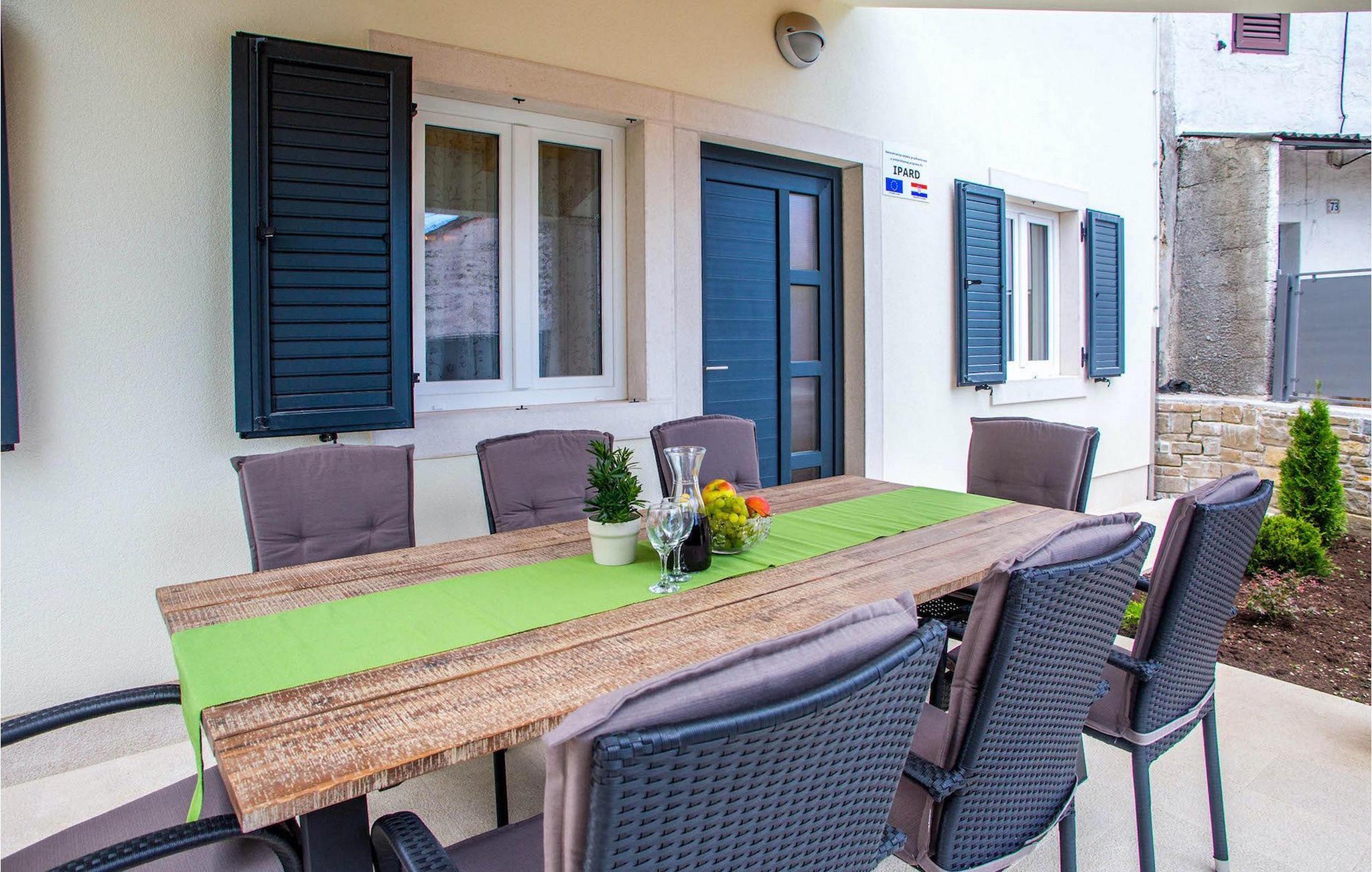 Die wunderschöne Villa Orljak befindet sich in Zentralistrien und ist ein wirklich ausgezeichnete Wahl für Ihren Urlaub. Die Villa kann bis zu 8 + 2 Personen in 4 Schlafzimmern beherbergen. Das Erdgeschoss besteht aus einem open concept Wohnzimmer mit Küche und Essbereich. Der Fitnessbereich, Wellness mit Sauna, Hydromassage-Badewanne und Bad sowie ein separates WC befinden sich ebenfalls im Erdgeschoss.