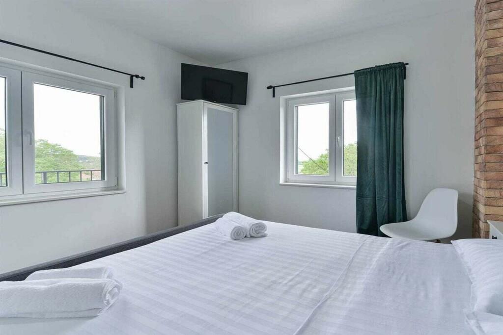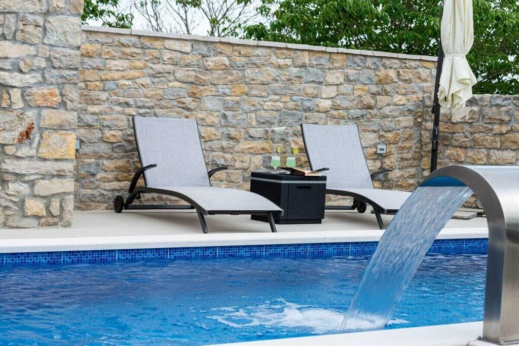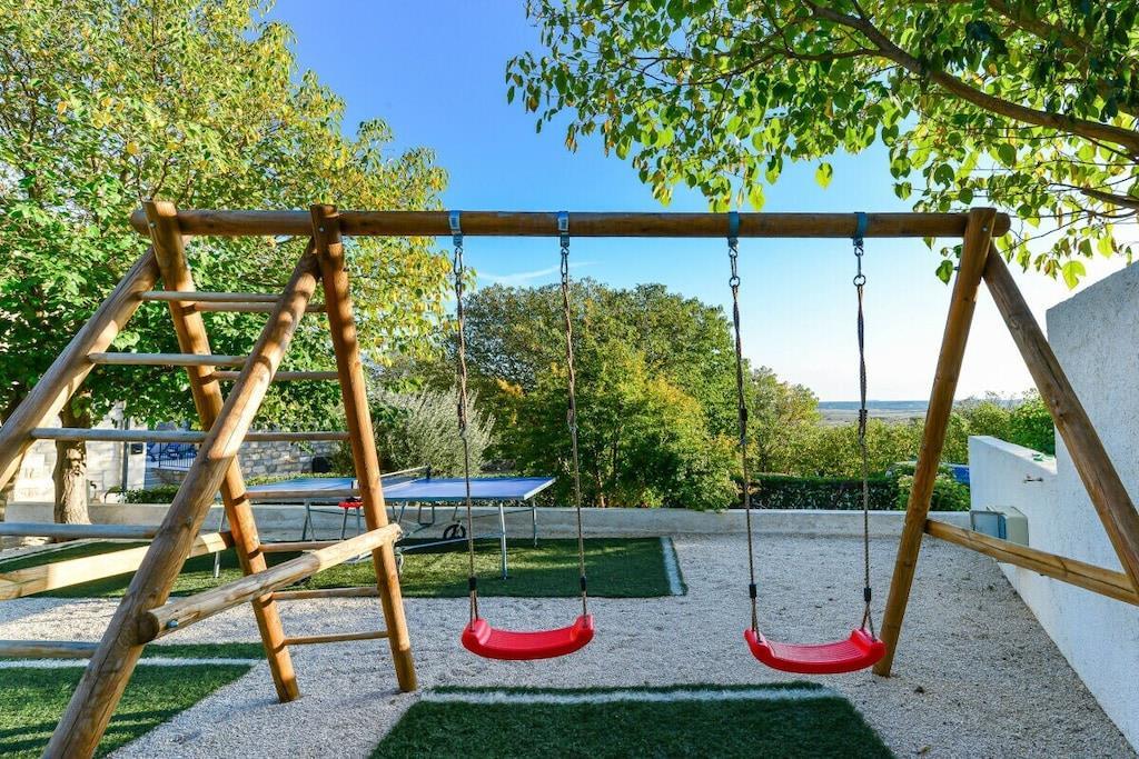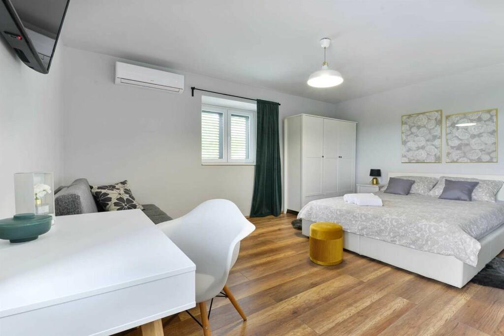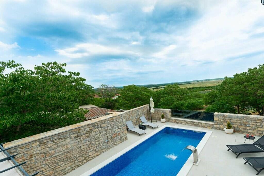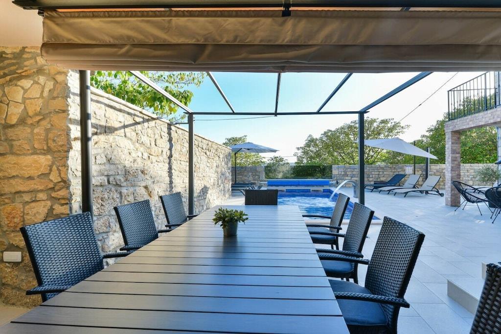 Villa Didovi Snovi – das Ferienhaus mit atemberaubender Innenarchitektur, einem wunderschönen Innenhof und herrlichem Blick auf Wiesen, wo Sie während Ihres Urlaubs in Kroatien wertvolle Erinnerungen schaffen werden. Villa Didovi Snovi liegt im idyllischen Dorf Lišane, nur eine kurze Fahrt von der schönen Stadt Skradin entfernt. Dieses fantastische Anwesen ist der perfekte Ort, um einen schönen, erholsamen Urlaub abseits der überfüllten Touristenziele zu verbringen. Das Innere der Villa erstreckt sich über eine Fläche von 140m2 und bietet Platz für bis zu 10 Gäste in fünf stilvoll eingerichteten Schlafzimmern. Die Villa verfügt über eine Gästetoilette und drei Badezimmer mit Dusche und allen wichtigen Badutensilien wie Waschmaschine, Handtücher, Fön usw. Den Gästen steht auch eine voll ausgestattete Küche mit hochwertigen Geräten zur Verfügung, die mit einen kleineren Essbereich für einen schnellen Snack. Das geräumige und gemütliche Wohnzimmer ist der ideale Ort in der Villa für Entspannung und Unterhaltung für die ganze Familie, da es mit einer bequemen Couch, Sat-TV und Klimaanlage ausgestattet ist. Hervorzuheben ist die hervorragende dalmatinische Taverne mit großer Grillstation und zweiter voll ausgestatteter Küche, die den perfekten Ort bietet, um ein schönes hausgemachtes Essen für Ihre Familie und Freunde zu genießen. Die Villa bietet auch zahlreiche Unterhaltungsaktivitäten, von Tischfußball, Billard bis hin zu Darts. Umgeben von viel Grün bietet der Außenbereich einen schönen Swimmingpool mit Liegestühlen, ideal zum Entspannen und Sonnenbaden. Es gibt auch eine kleine Kinderecke für Trampolin und private Parkplätze für die Gäste der Villa. Das gesamte Grundstück der Villa Didovi Snovi ist komplett eingezäunt, so dass die Gäste ihre absolute Privatsphäre genießen können.