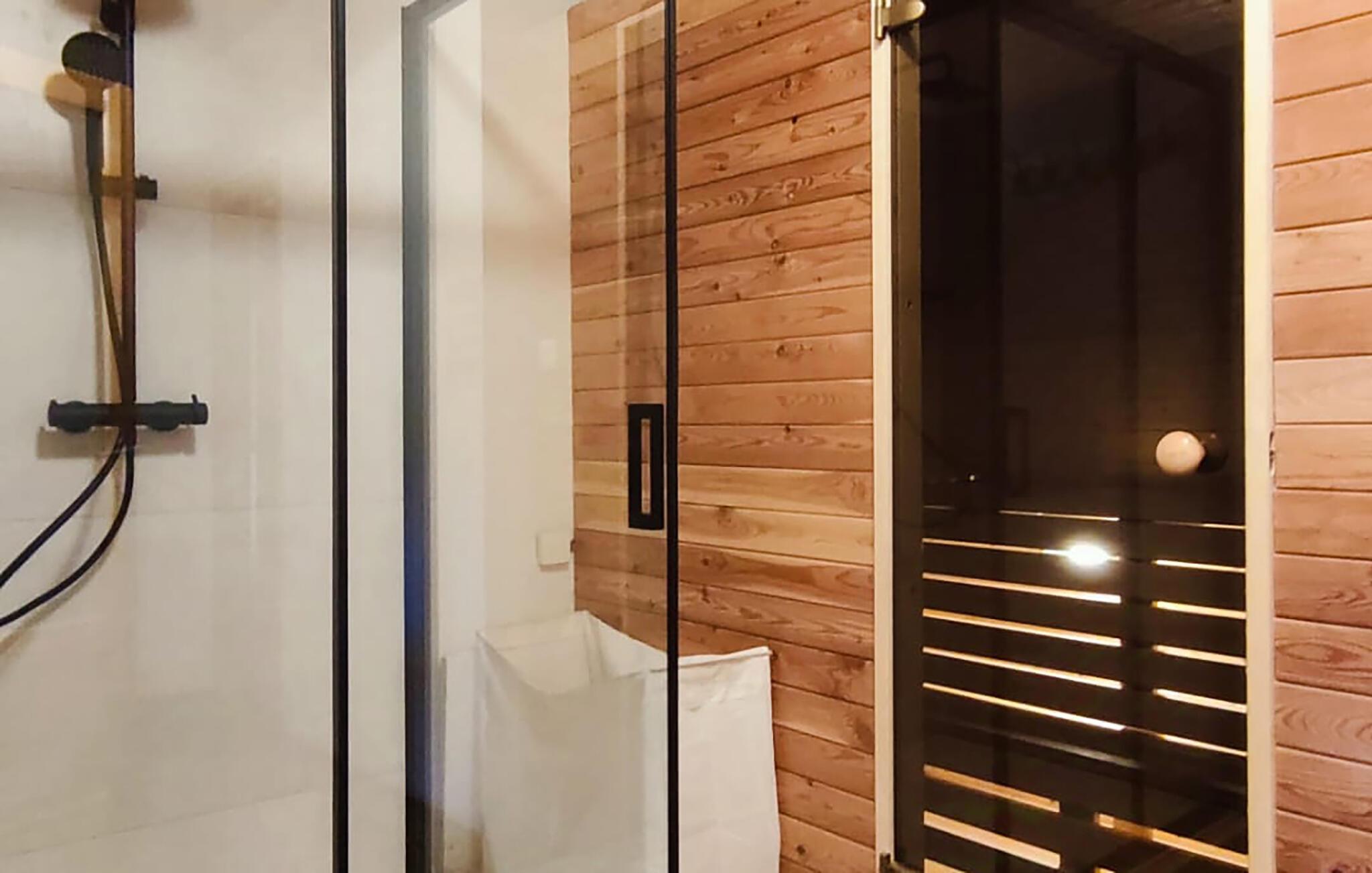 Genießen Sie die Panorama-Aussicht in diesem Ferienhaus mit eigener Sauna.