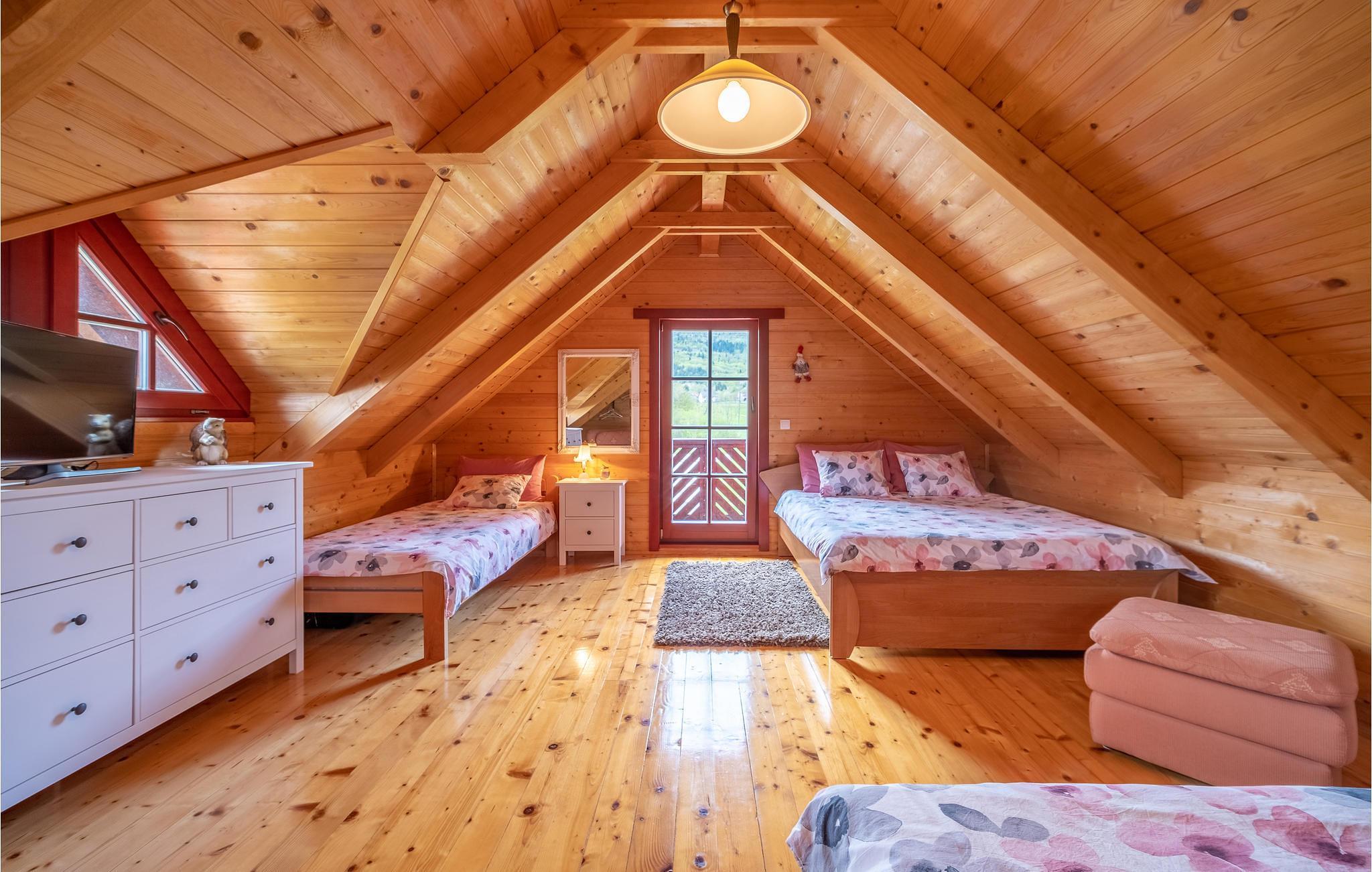Dieses Ferienhaus befindet sich im kleinen Dorf Licko Lesce, in der Nähe des Flusses Gacka. Es handelt sich um ein Holzhaus in Harmonie mit der Natur. Im Erdgeschoss liegt die Küche mit Ess- und Wohnbereich. Im Dachgeschoss befinden sich das Schlafzimmer mit einer minimalen Deckenhöhe von 80 cm und ein kleiner Balkon. Entspannen Sie auf der Terrasse bei einem Glas Wein. Badebassin ab 2017. Diese Unterkunft ermöglicht Ihnen einen erholsamen Urlaub und für alle Aktivurlauber gibt es Radfahrwege, Sie können Fliegenfischen und die weltbekannten Plitwitzer Seen (ca. 30-40 Min. Autofahrt) entdecken.