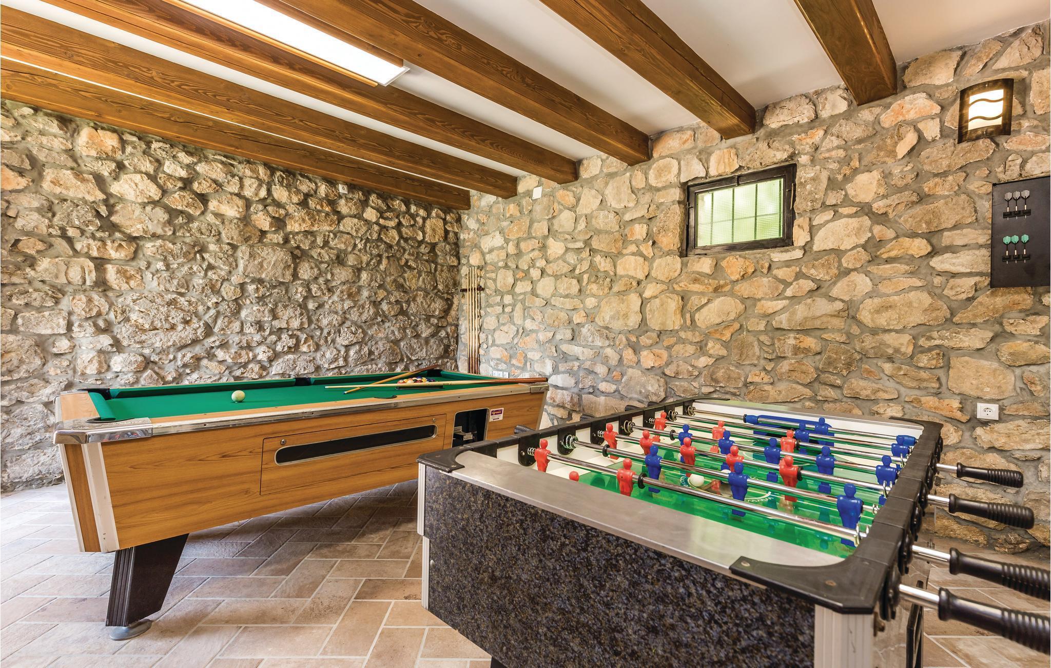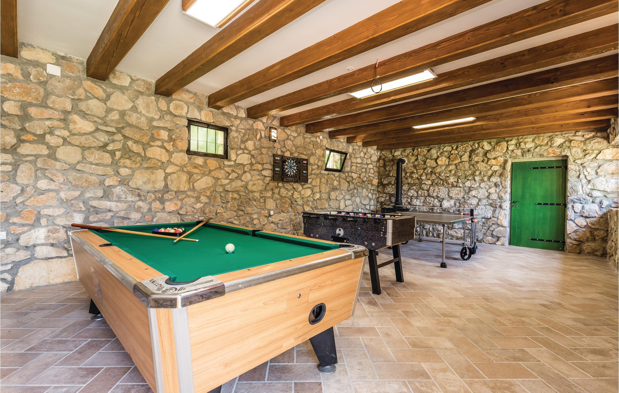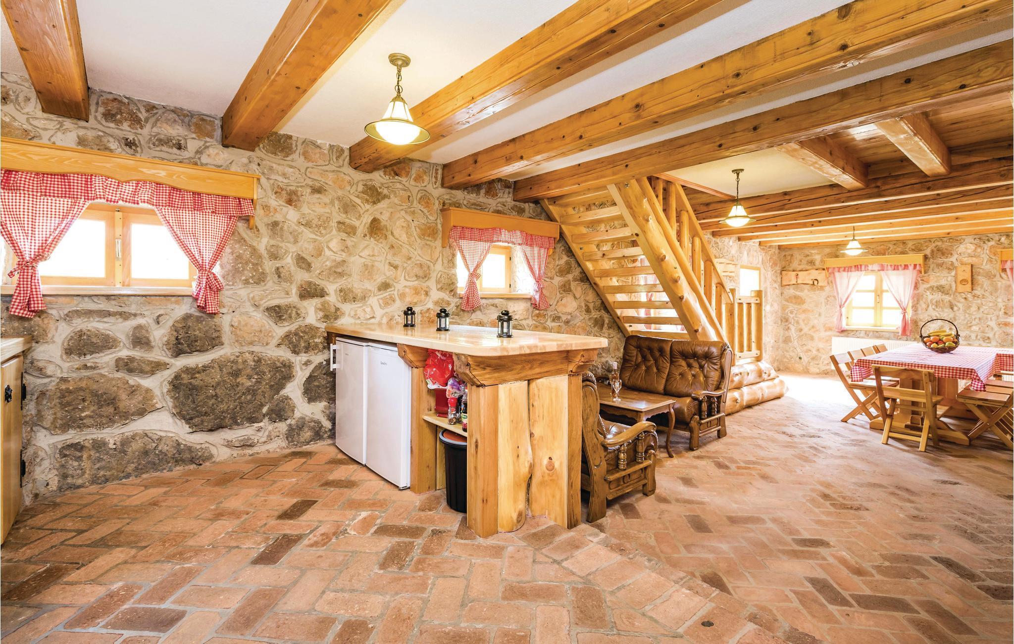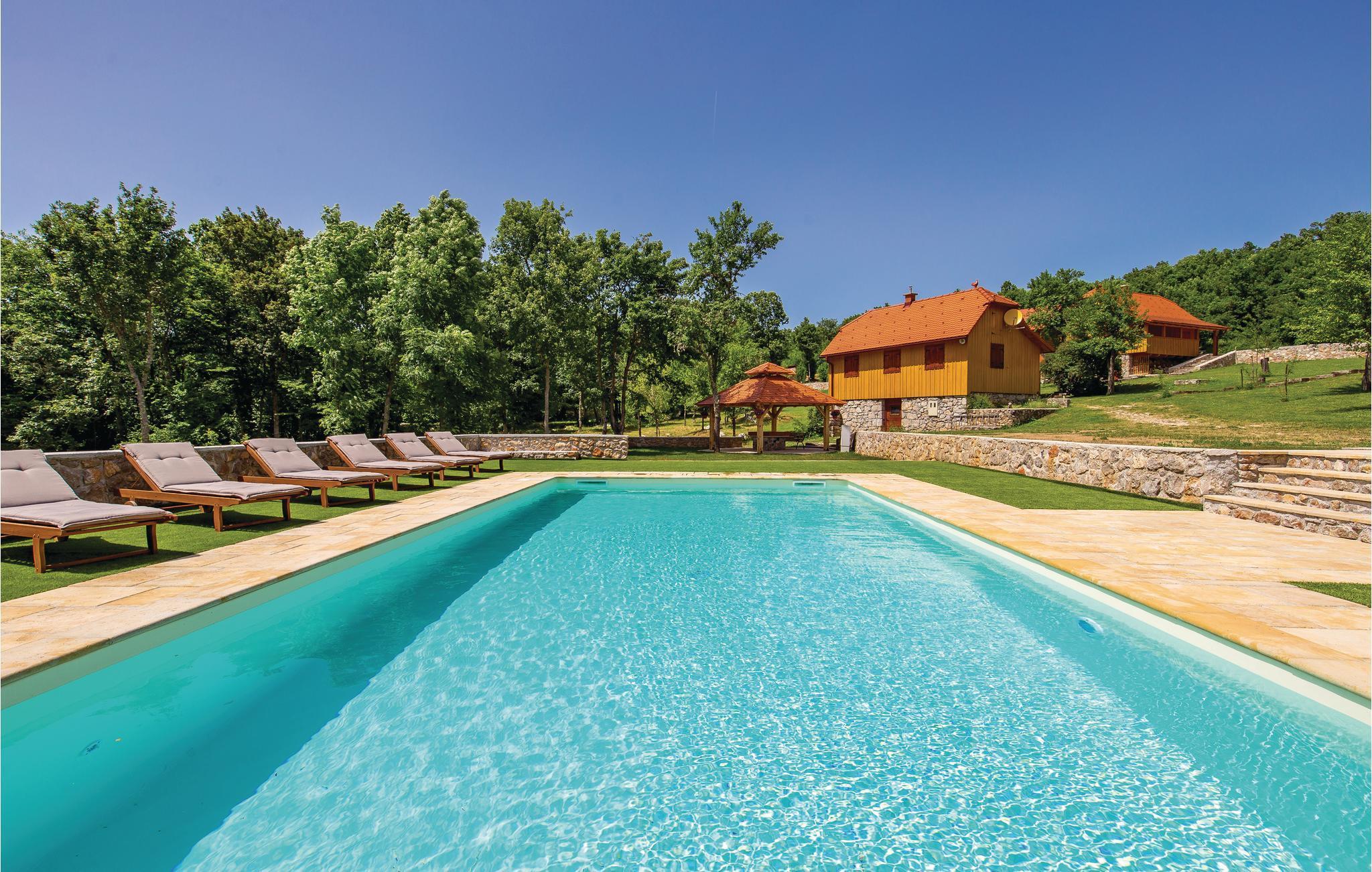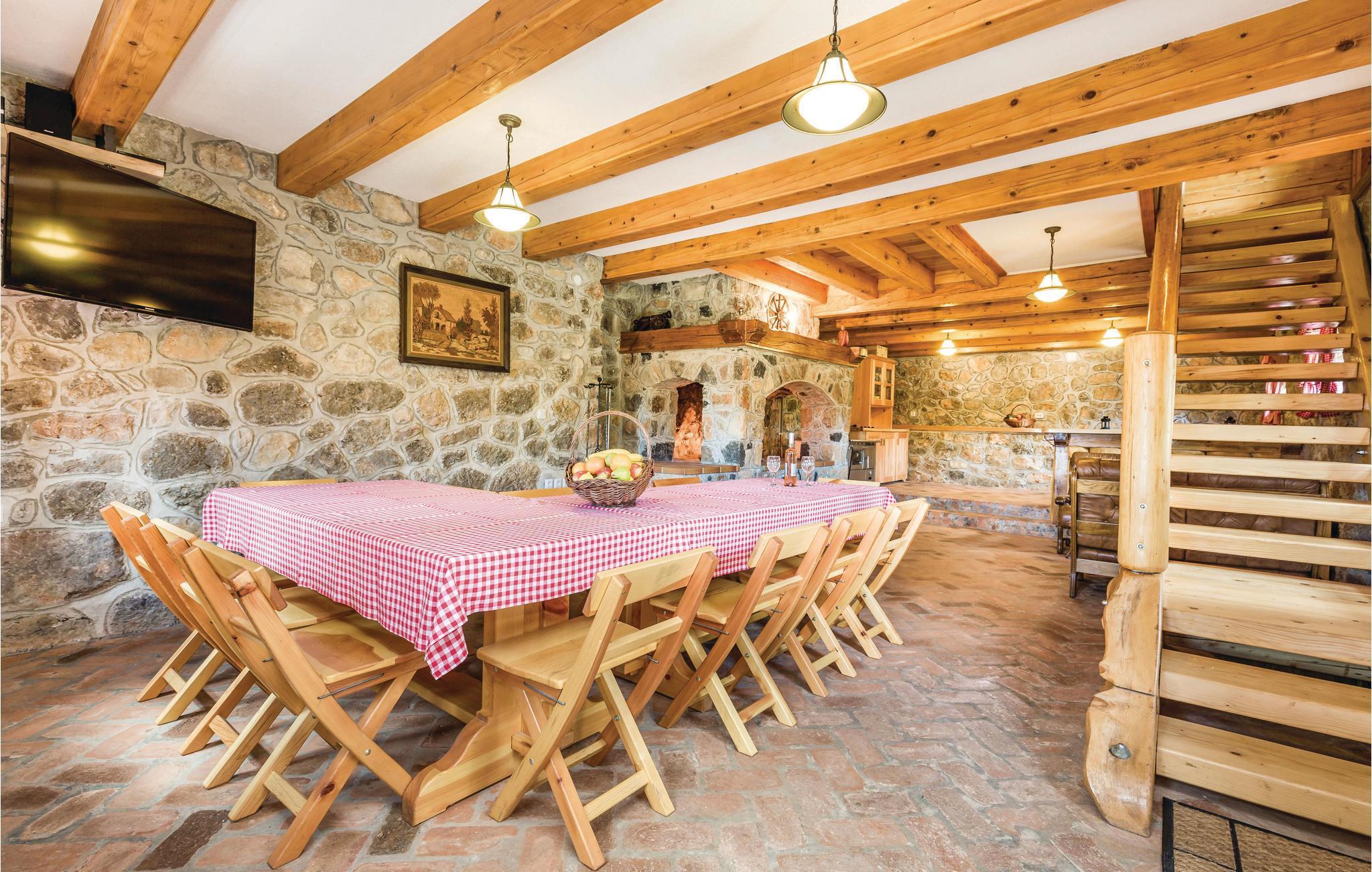 Hier begrüßen Sie die freundlichen Gastgeber mit einem Willkommensgetränk und laden ein, in Ihrem geschmackvoll eingerichteten Ferienhaus einen entspannten Urlaub mitten im Grünen zu verbringen. Das Anwesen liegt auf einem Privatgrundstück, das zu einem gemieteten Jagdgebiet in Lika gehört. Sie können mit der großen Familie und Freunden den Urlaub hier in ländlicher Idylle verbringen. Im Erdgeschoss sind ein großer Wohnbereich mit Kamin sowie eine Küche, im Obergeschoss liegen vier Schlafzimmer mit eigenen Badezimmern. Um das Haus herum gibt es mehrere kleine Ferienhäuser, von denen jedes genügend Platz und Privatsphäre bietet. Wir empfehlen an die Quelle des Gacka-Flusses zu kommen, sie liegt am Rande des Nationalparks Plitvicer Seen, der Fluss ist der bei Anglern als gutes Forellengewässer bekannt. Zur gemeinsamen Benutzung mit den Ferienhäusern CKB295 und CKB296 stehen ein Pool mit Sonnendeck zur Verfügung, sowie Angebote für Kinder wie Spielhaus, Sandkasten, Wippe und Schaukel, 8 Fahrräder für Erwachsene, ein Netz für Badminton/Volleyball, eine Gartenlaube mit Grill, ein Nebengebäude auf zwei Etagen mit Unterhaltung wie Tischtennis, Tischfußball, Projektor mit Leinwand für mögliche Präsentationen, Billard und auch eine Teeküche und ein Bad.