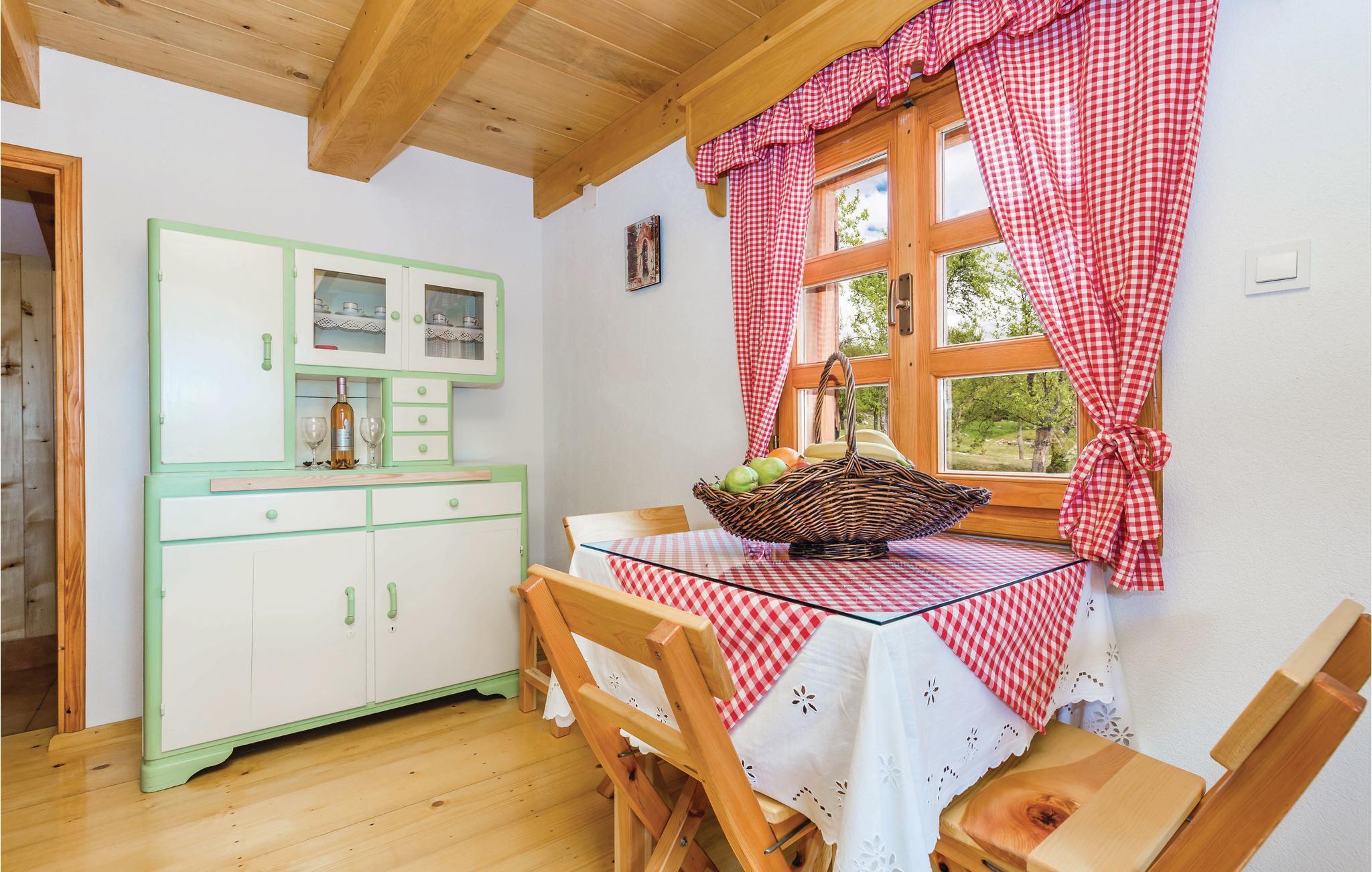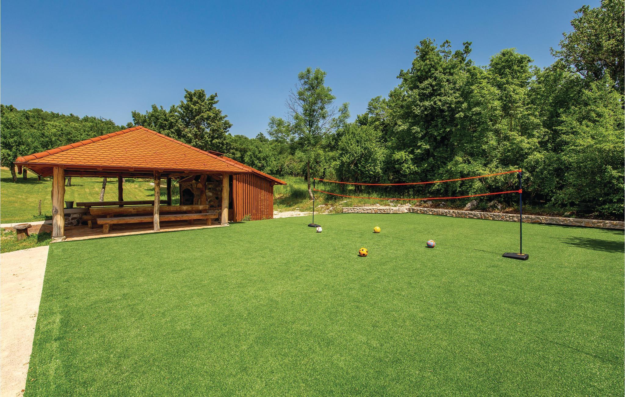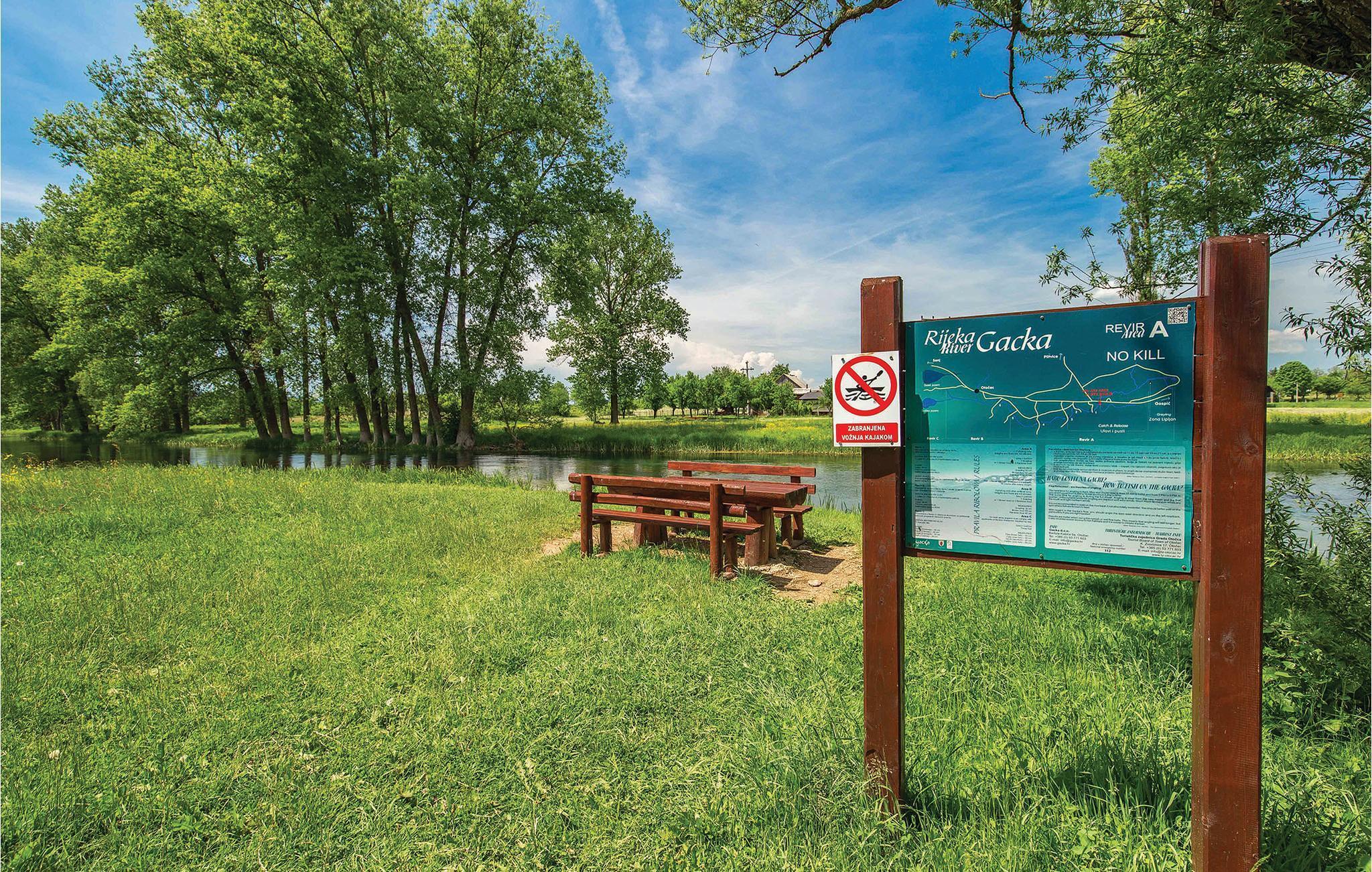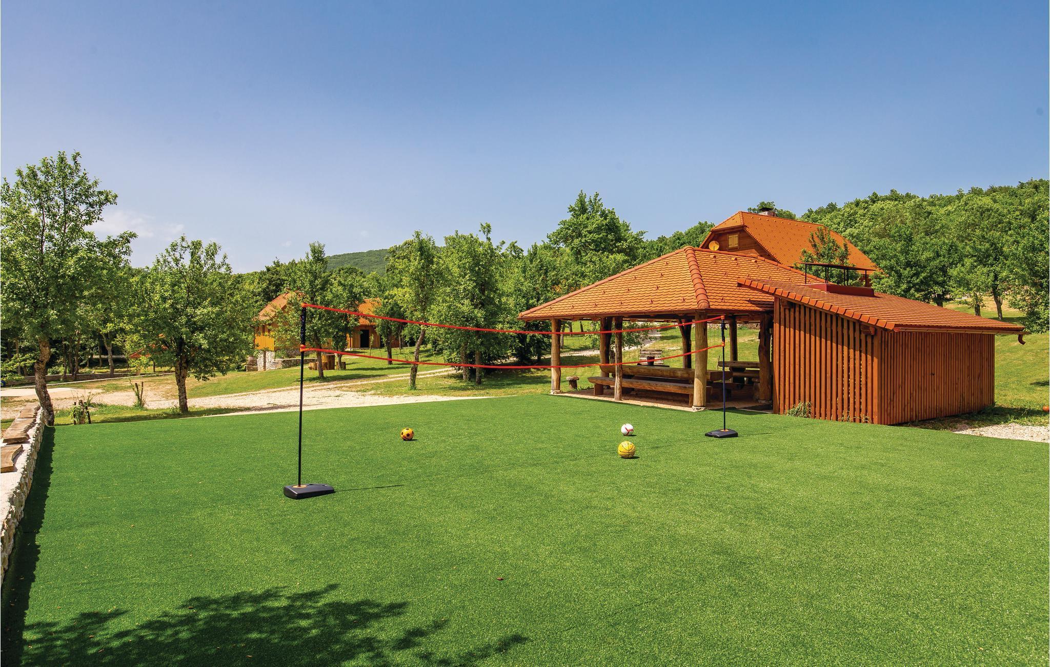 Dieses schöne kleine Ferienhaus ist ideal für einen unvergesslichen Urlaub in wunderschöner Natur. Dekoriert und ausgestattet wie in einem „Bilderbuch“, bleibt es in ständiger Erinnerung. Hier können Kinder sorglos spielen. Während des Urlaubs besuchen Sie das Museums von Nikola Tesla, die Quelle des Flusses Gacka oder Sie probieren die Spezialität dieser Gegend: gegrillte Forelle. Auf dem gemeinsamen Grundstück gibt es eine gemeinsame, große Laube mit Grill, wo Sie Spezialitäten für Ihre Lieben zubereiten können. Der Eigentümer wird Sie mit einem Willkommensgetränk und einheimischen Spezialitäten begrüßen. Zur gemeinsamen Benutzung mit den Ferienhäusern CKB294 und CKB296 stehen ein Pool mit Sonnendeck zur Verfügung, sowie Angebote für Kinder wie Spielhaus, Sandkasten, Wippe und Schaukel, 8 Fahrräder für Erwachsene, ein Netz für Badminton/Volleyball, eine Gartenlaube mit Grill, ein Nebengebäude auf zwei Etagen mit Unterhaltung wie Tischtennis, Tischfußball, Projektor mit Leinwand für mögliche Präsentationen, Billard und auch eine Teeküche und ein Bad.
