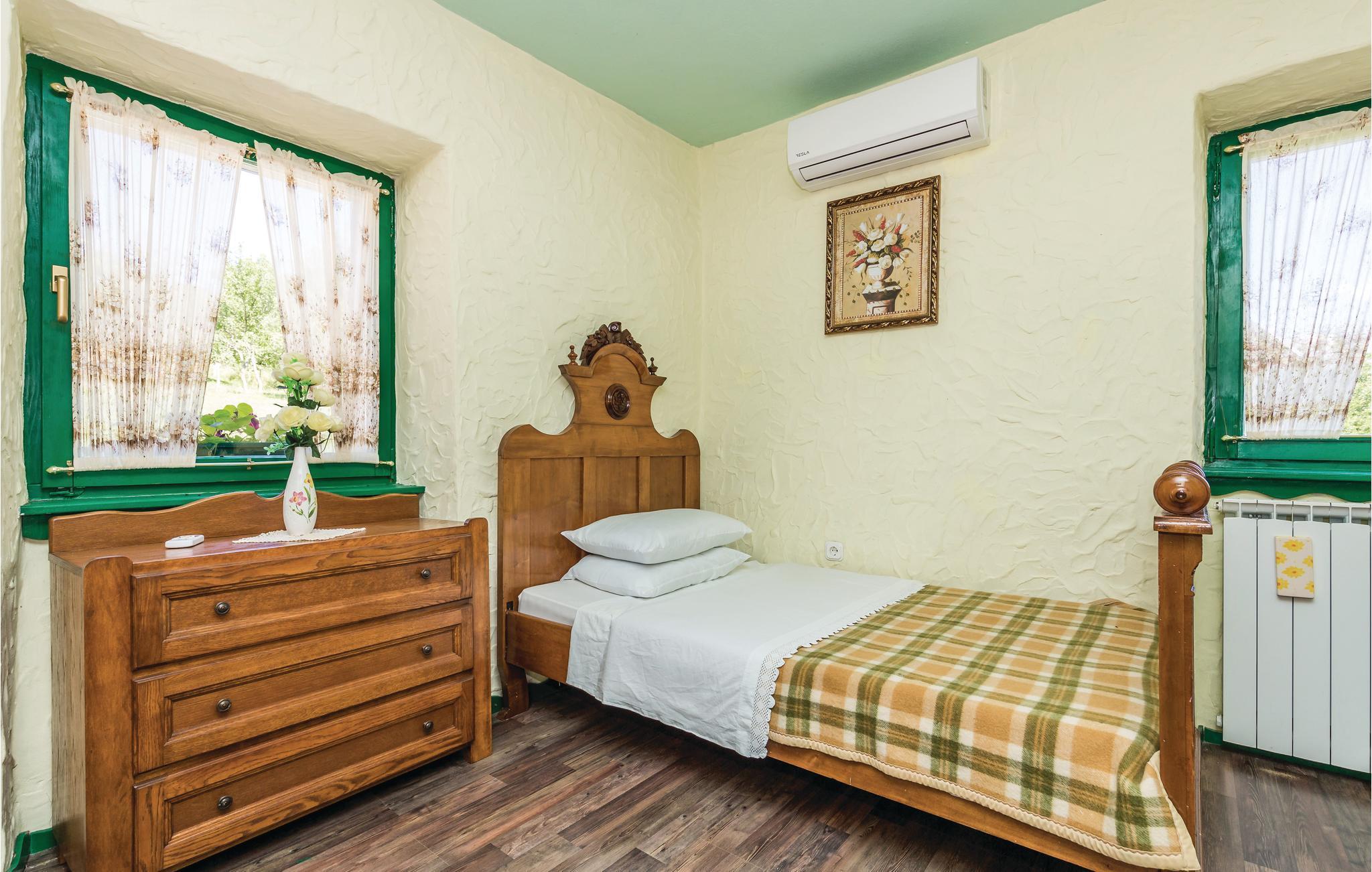 Nahe dem Fluss Gacka in dem kleinen Dorf Svica liegt dieses hübsche Ferienhaus. Das Haus ist ideal für Erholung in unberührter Natur. Zum Haus führt der Weg durch die schönen Wälder und am Fluss entlang, der für die Fischerei auf Forelle bekannt ist. Das Haus liegt auf einem großen Grundstück mit Obstbäumen und Wiesen. Der Wohnraum erstreckt sich über das Erdgeschoss. Das SZ 2 ist von außen betretbar. Ein überdachter Pavillon ist verfügbar, wo Sie ihre Gerichte auf dem Grill vorbereiten und eine herrliche Aussicht auf die Landschaft genießen können, während die Kinder auf Wiesen spielen. Schwimmen Sie im nahe gelegenen Fluss. In etwa einer Stunde Autofahrt erreichen Sie die Adria Küste oder den Nationalpark Plitvicer Seen. Ideale Lage für einen aktiven Urlaub, genießen Sie Radfahren, Wandern, Angeln, Quad Adventure oder Kajak am Fluss Gacka.
