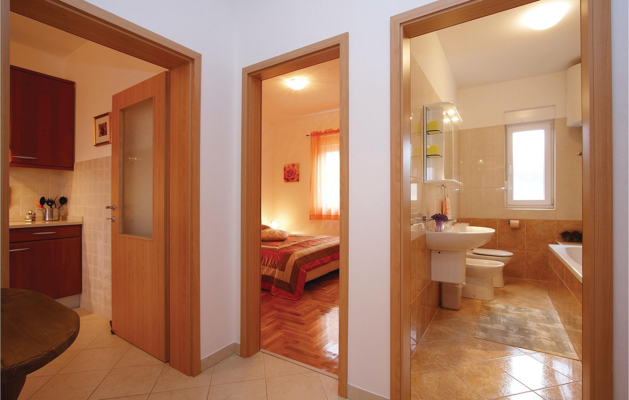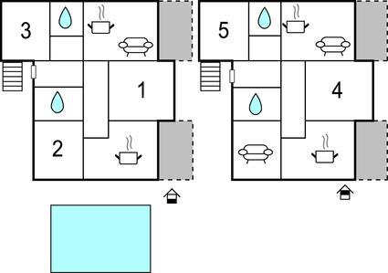 Dieses Ferienhaus besteht aus 4 separaten Wohneinheiten, von denen sich zwei im Erdgeschoss und zwei im ersten Stock befinden. Somit ist dieses Feriendomizil eine praktische Wahl für befreundete Familien und Gruppen die zusammen Urlaub machen jedoch nicht auf Privatsphäre verzichten möchten. Die Etagen sind über eine Außentreppe miteinander verbunden und die Wohneinheiten, die sich auf der gleichen Etage befinden, haben gemeinsame Eingänge. Jede Wohneinheit verfügt über eine eigene Terrasse. Im Gartenbereich steht Ihnen ein Außenpool zur Verfügung, er ist eine tolle Erfrischungsmöglichkeit im Sommer. Erkunden Sie die schönen Naturstrände in der Umgebung und lassen Sie sich vom kristallklaren Meer begeistern. Empfehlenswert ist ein Besuch des Ortes Medulin und der Stadt Pula. Beide Orte bieten sämtliche Unterhaltungsmöglichkeiten für Groß und Klein. Das reiche Gastronomieangebot der ganzen Region lädt Sie dazu ein, traditionelle Speisen zu kosten.