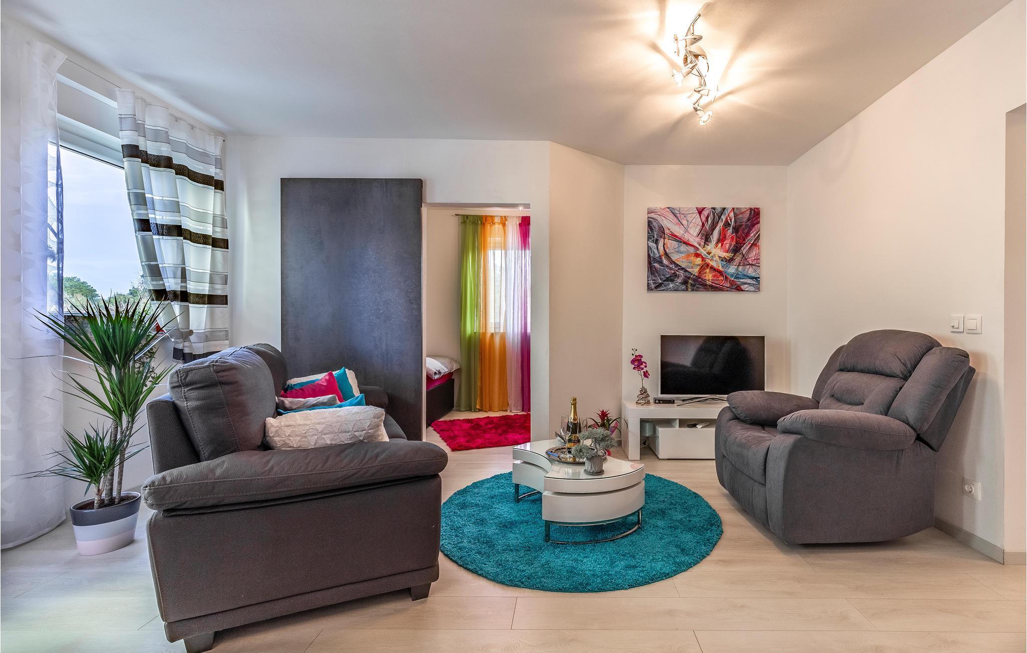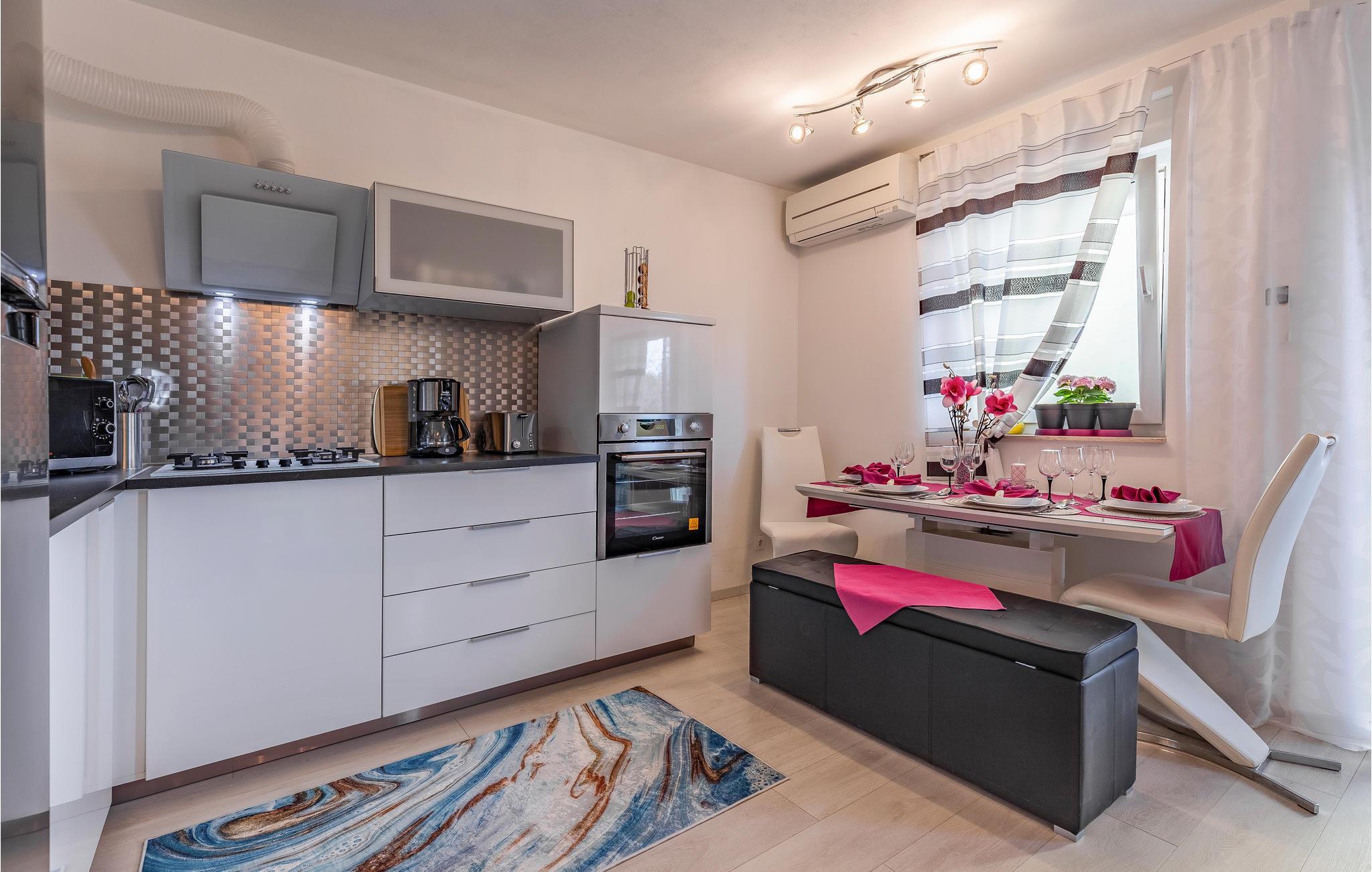 Kommen Sie mit Ihrer Familie oder Freunden samt Vierbeiner in diese angenehme Ferienunterkunft. Die gemütliche Einrichtung sorgt für eine entspannte und wohlige Atmosphäre. Bereiten Sie sich in der freundlich gestalteten Küche leckere Gerichte zu und genießen Sie die Sonne vom Balkon aus. Lauschen Sie dem Vogelgezwitscher, da Sie sich hier in einem ruhigen, verkehrsfreien Teil in der Nähe der wunderschönen Natur befinden. Der kleine Ort Liznjan strahlt ein mediterranes Ambiente aus und lockt mit zahlreichen kulturellen Veranstaltungen in den Sommermonaten.