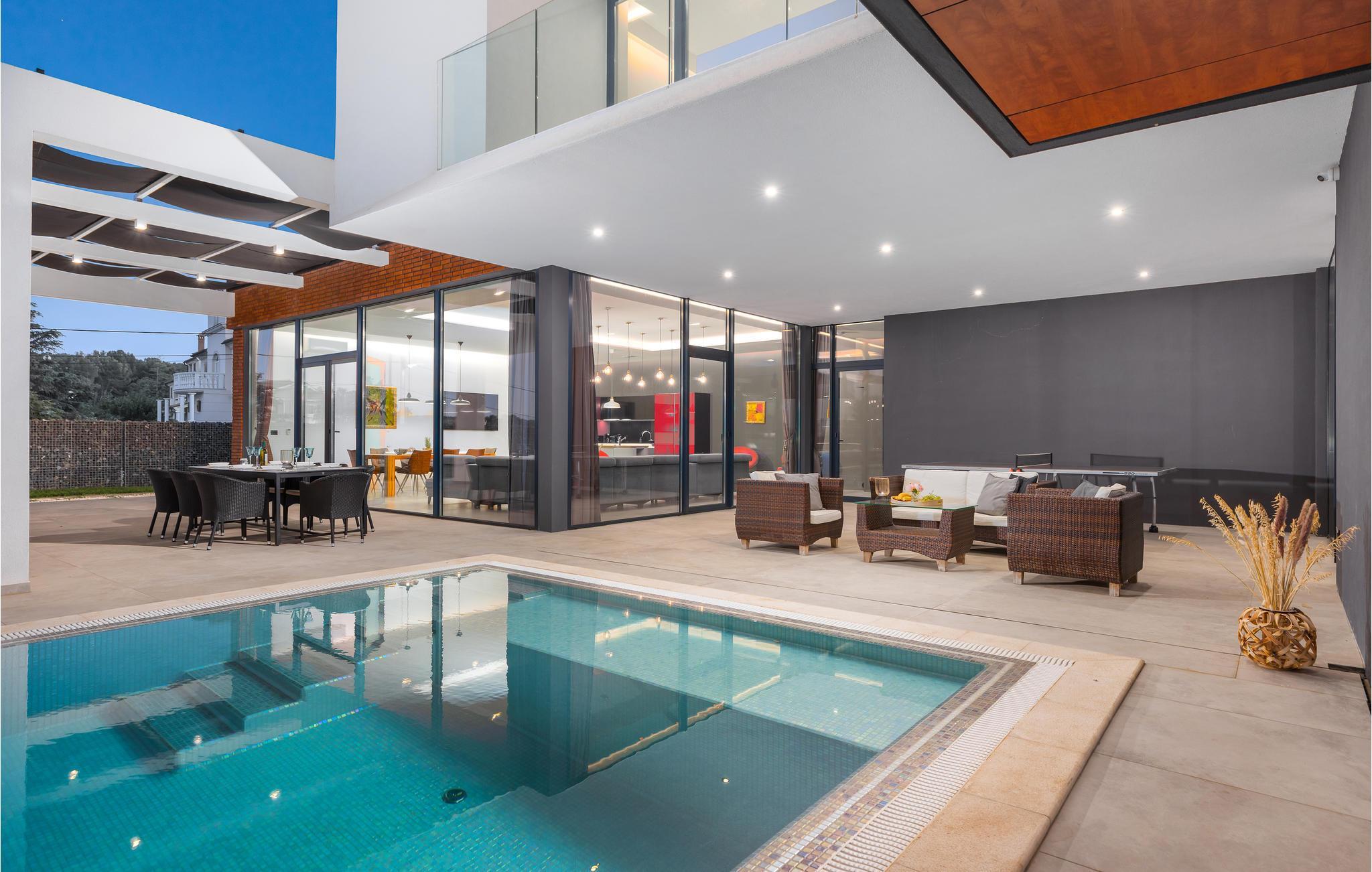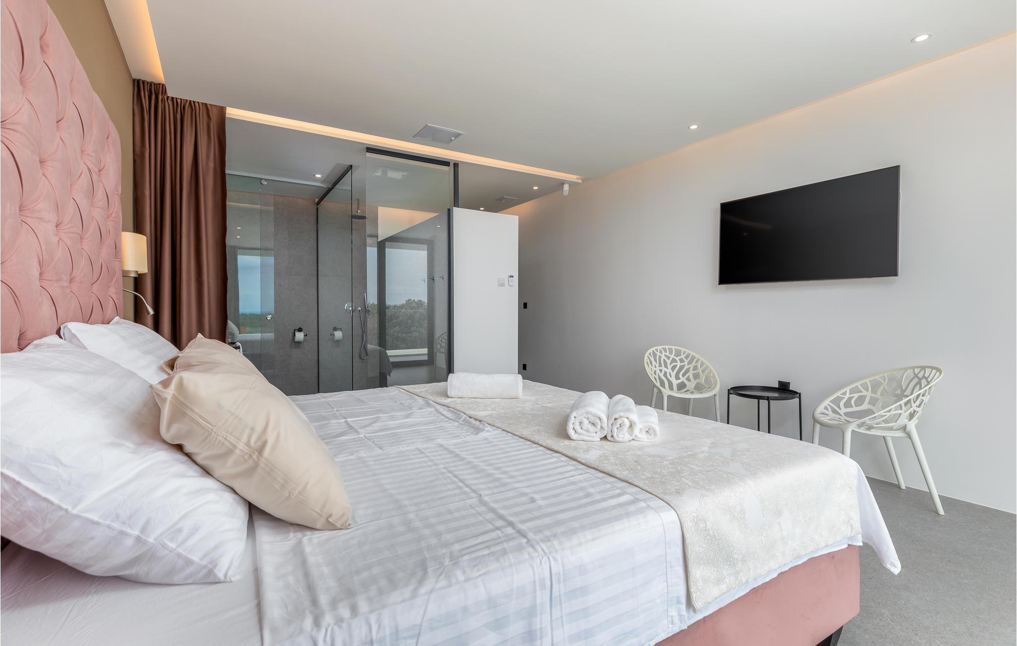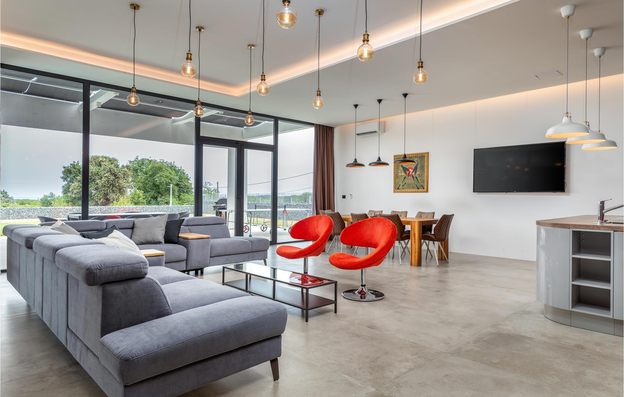 Dieses architektonisch beeindruckende Ferienhaus liegt in der Nähe des Meeres und befindet sich an der südlichsten Spitze Istriens im kleinen Fischerdorf Ližnjan. Das 2021 fertig gestellte Haus bietet einen schönen Blick auf das Meer und die Inseln Cres und Lošinj. Die Architektur dieser Villa wurde von den renommiertesten kroatischen Zeitschriften für Design und Architektur veröffentlicht. Die Zimmer sind modern eingerichtet mit viel Licht und Glasflächen. Das Haus ist für Menschen mit Behinderung geeignet, da das gesamte Erdgeschoss keine Treppen hat. Der Pool ist nur 2 m vom Bett des unteren Zimmers entfernt.