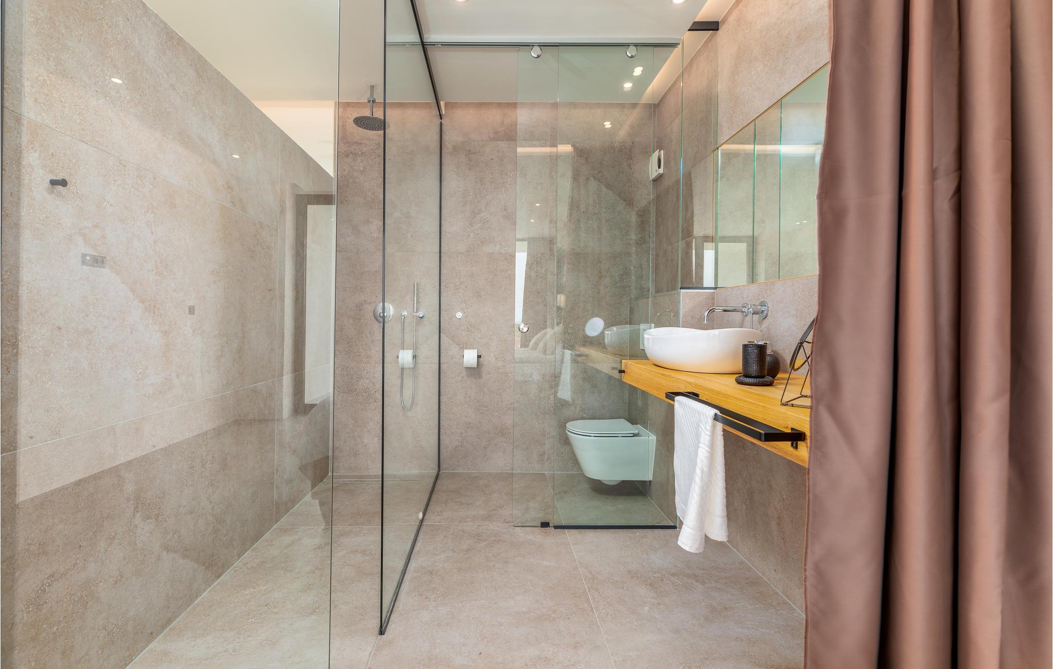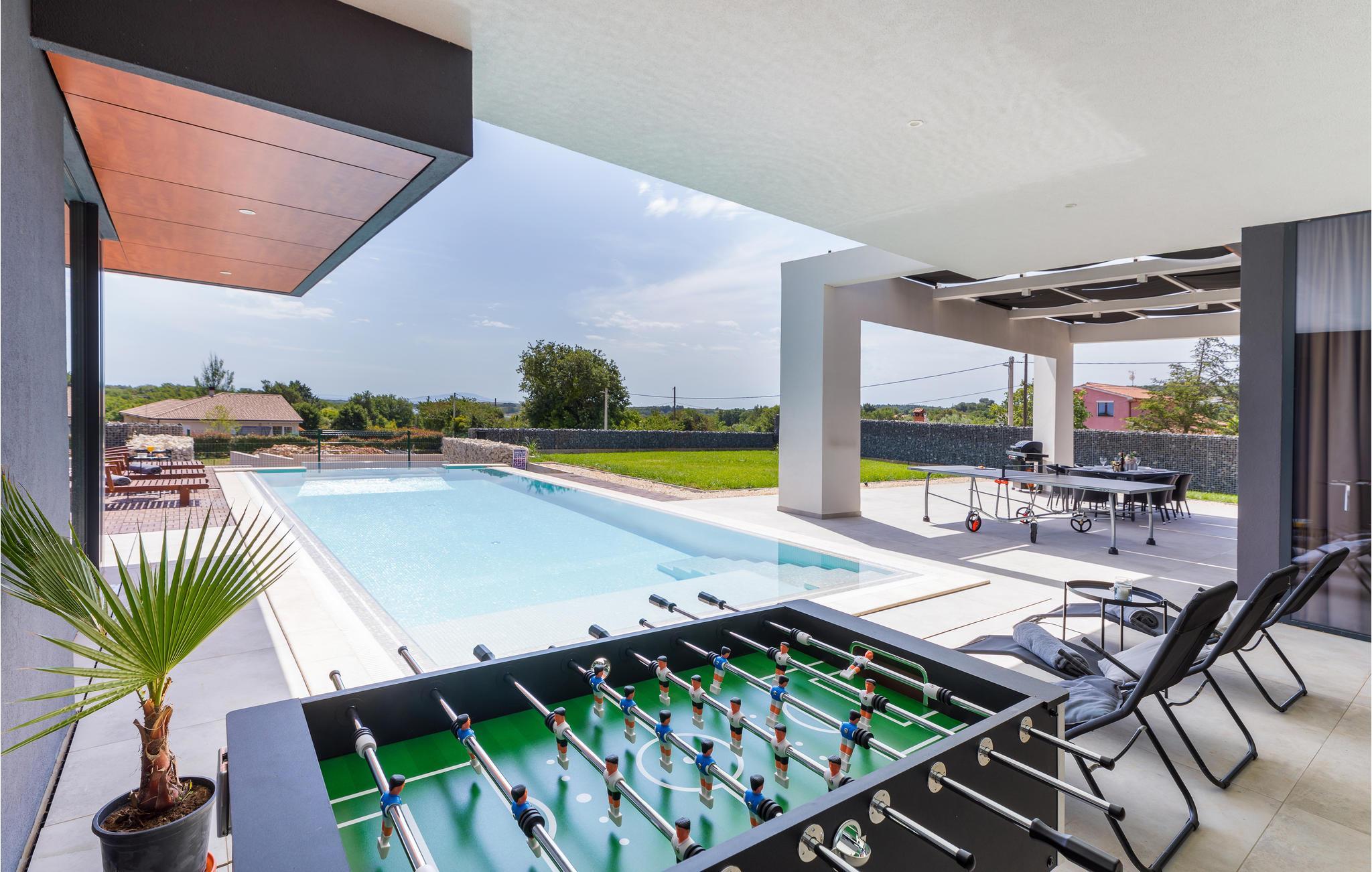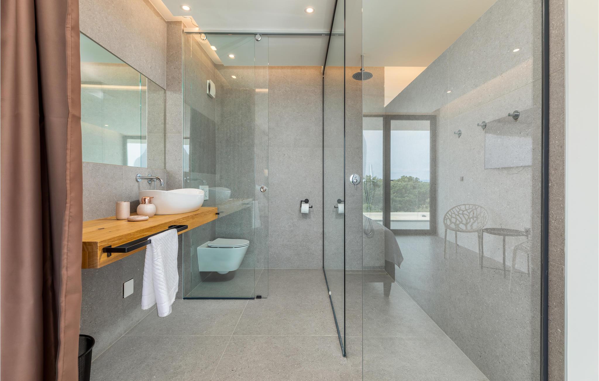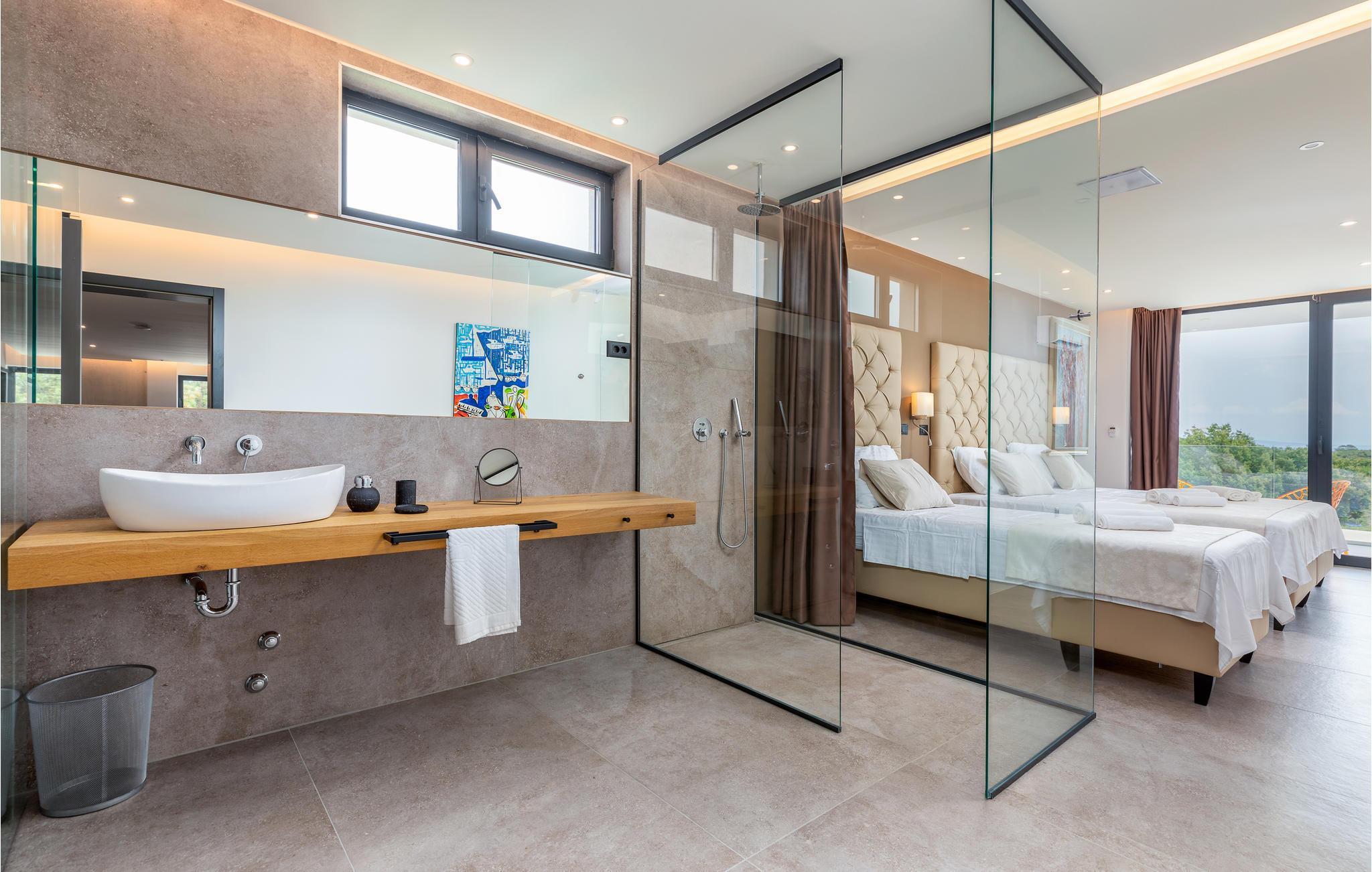 Dieses architektonisch beeindruckende Ferienhaus liegt in der Nähe des Meeres und befindet sich an der südlichsten Spitze Istriens im kleinen Fischerdorf Ližnjan. Das 2021 fertig gestellte Haus bietet einen schönen Blick auf das Meer und die Inseln Cres und Lošinj. Die Architektur dieser Villa wurde von den renommiertesten kroatischen Zeitschriften für Design und Architektur veröffentlicht. Die Zimmer sind modern eingerichtet mit viel Licht und Glasflächen. Das Haus ist für Menschen mit Behinderung geeignet, da das gesamte Erdgeschoss keine Treppen hat. Der Pool ist nur 2 m vom Bett des unteren Zimmers entfernt.