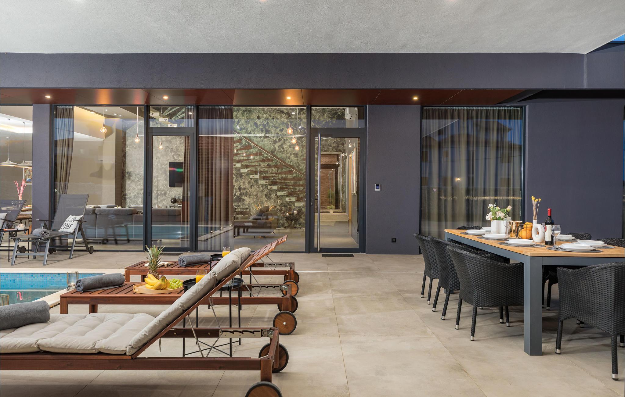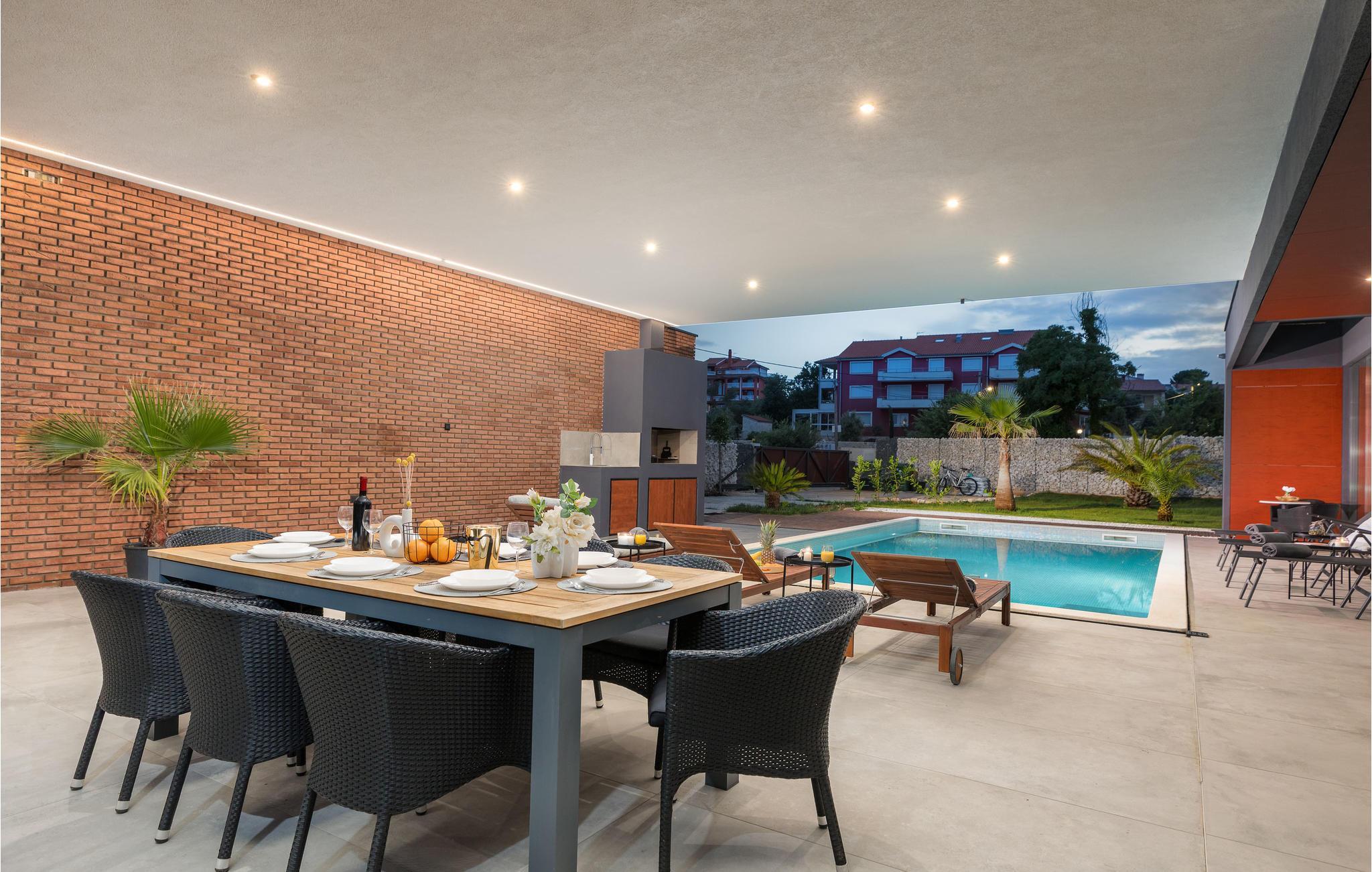 Es handelt sich um ein schönes, modernes und geräumiges Haus mit hohem Komfort aus dem Jahr 2021. Die Zimmer sind modern eingerichtet mit viel Licht und Glasflächen, von hier haben Sie einen schönen Blick auf das Meer und die Inseln von Losinj. Die Schlafzimmer befinden sich im 1. Stock, während das Erdgeschoss aus einem großen Wohnzimmer besteht, das sich zu einer überdachten Terrasse öffnet, durch die der beheizte Pool führt. Der Pool erstreckt sich unterhalb des Hauses und setzt sich bis in den Außenbereich fort.
