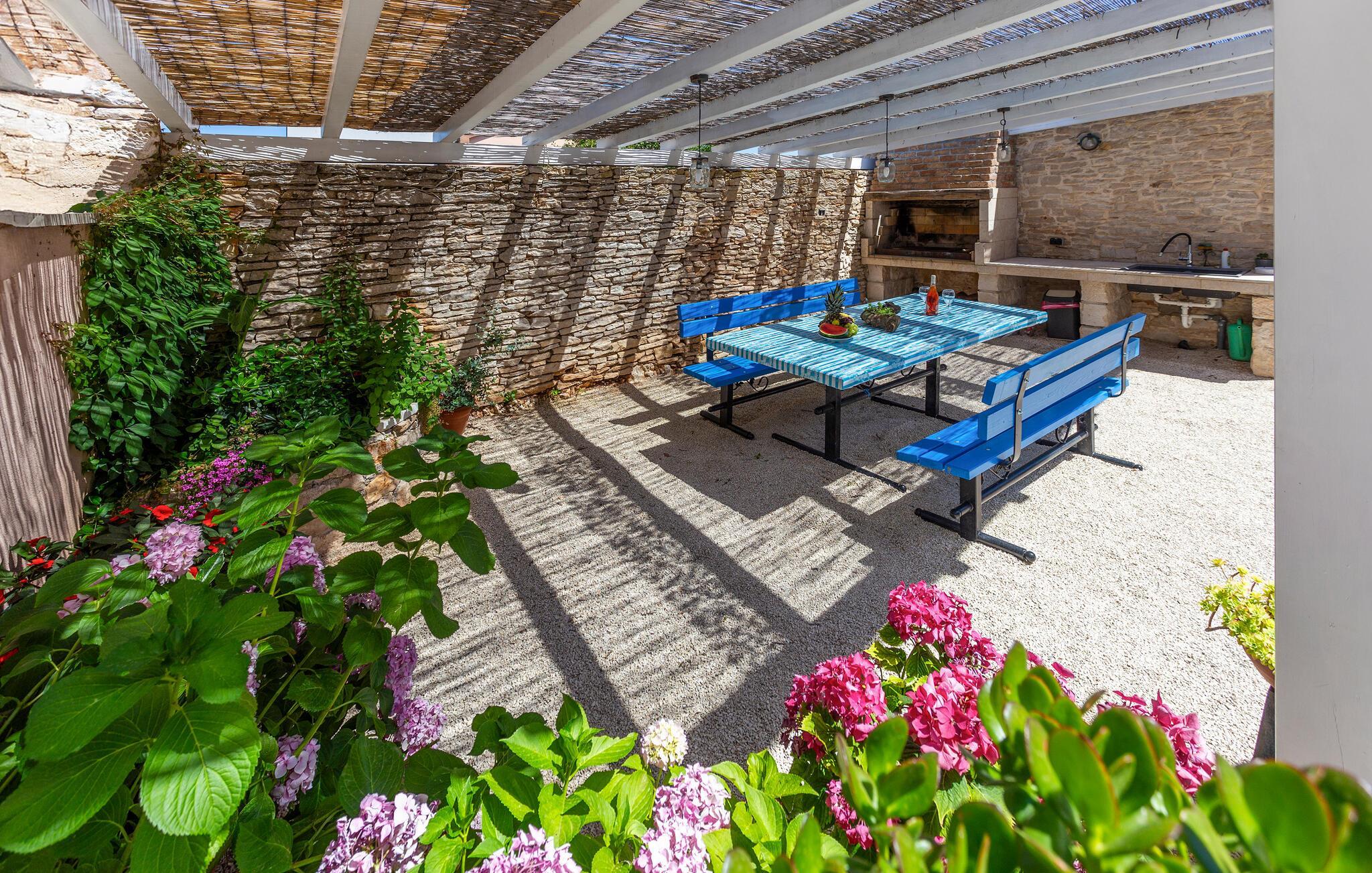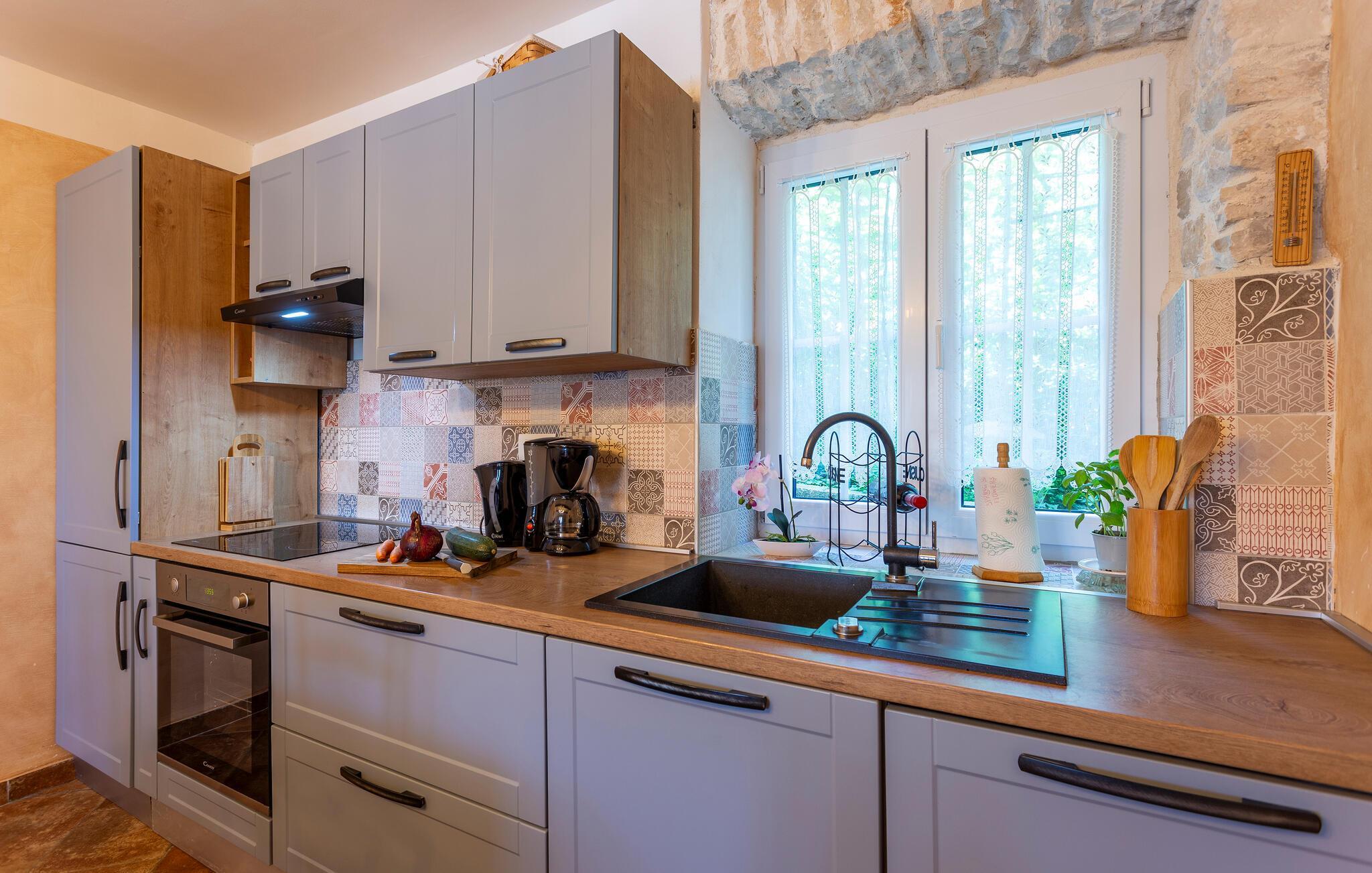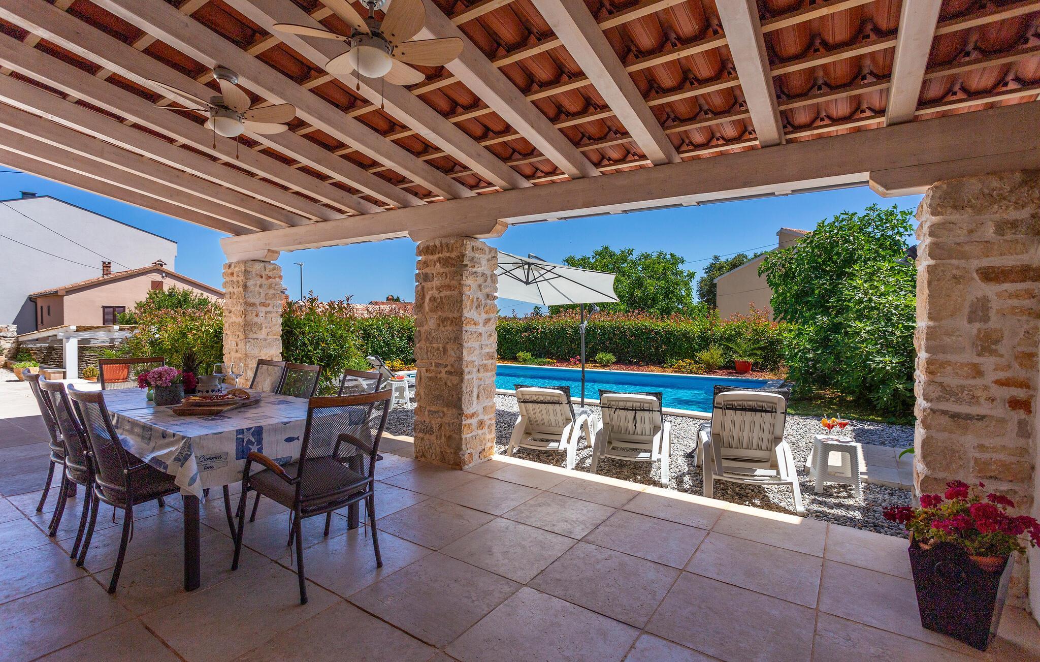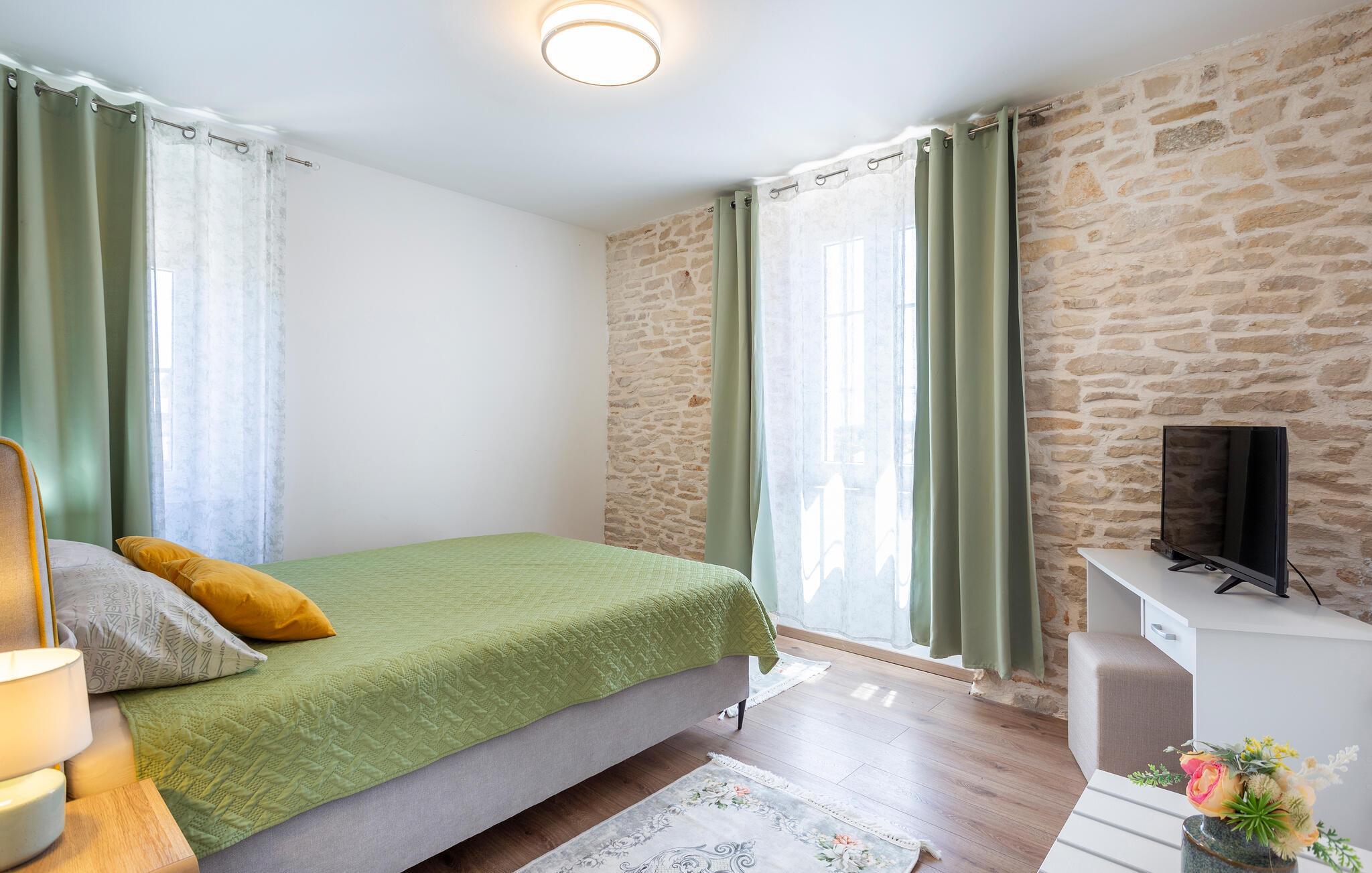 Dieses wunderschöne istrische Steinhaus vereint rustikalen Charme mit modernem Komfort. Die geschmackvoll eingerichteten Innenräume strahlen eine warme und einladende Atmosphäre aus. Im großzügigen Wohnbereich finden Sie alles, was Sie für einen erholsamen Urlaub brauchen. Veranstalten Sie einen Filmabend oder kommen in der großen Essküche zum gemeinsamen Kochen zusammen.
