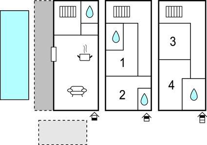 Badezimmer 4m2 (nr. 1) - WC. Warmes und kaltes Wasser. Dusche