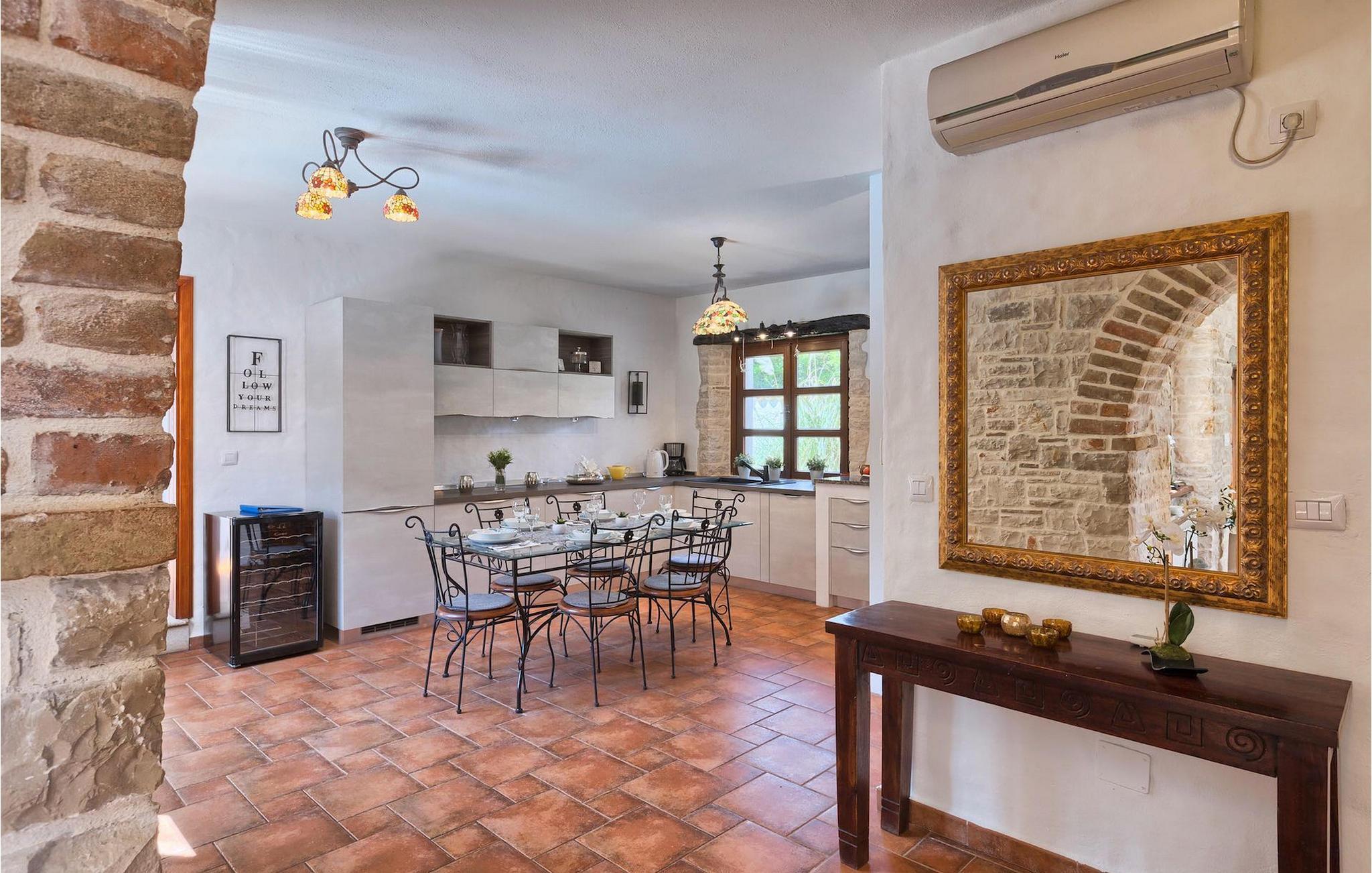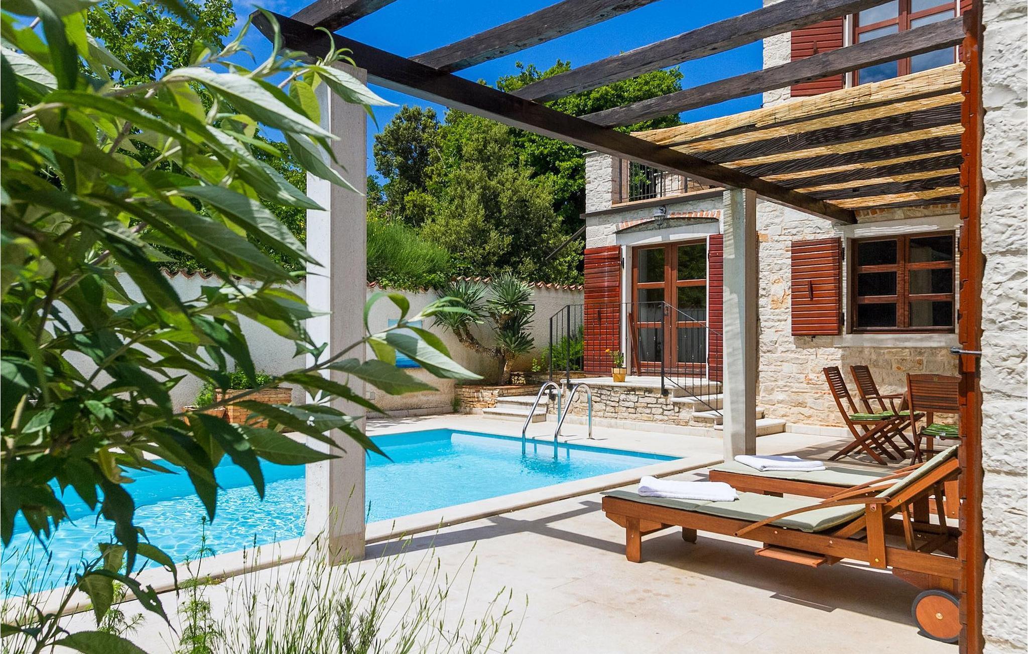 Lichtdurchflutet, geräumig und komfortabel eingerichtet, verbindet die Villa moderne Annehmlichkeiten wie Klimaanlage, WiFi, eine komplett ausgestattete Küche und moderne Ensuite Bäder, und bewahrt zeitgleich den rustikalen Charme eines Landhauses mit traditionellen Balkendecken, Möbeln aus massivem Holz und einem gemütlichen Kamin, der für eine warme, angenehme Atmosphäre sorgt. Zwei Schlafzimmer sind über die obere Etage verteilt, während das dritte direkt auf den einladenden privaten Poolbereich öffnet – den wunderbaren Ort zum Erholen und Entspannen. Die hübsche, überdachte Veranda mit dem authentischen eingebauten Grill und einem großen Esstisch ist eine attraktive Zuflucht von der Sommerhitze, sowie der perfekte Ort für genussvolle Mahlzeiten im Freien. Ein weiterer Lounge-Bereich befindet sich auf der oberen Terrasse mit der wohl besten Aussicht. Mit dem prächtigen Blick über die idyllische Landschaft mit dem smaragdblauen Meer als Hintergrund, wer könnte widerstehen, diese Villa zum perfekten istrischen Zufluchtsort auszuwählen. Die Villa bietet Platz für 6 Erwachsene und zwei KinderLižnjan ist ein malerischer alter Fischerort mit einem natürlich geschützten Hafen und einer 28 km langen Küste reich an atemberaubend schönen, unberührten Stränden, die gelassen auf die Kvarnerinseln in all ihrer Pracht blickt. Die Geschichte dieser Ortschaft und ihrer Umgebung ist wirklich faszinierend, was uns mehr als 26 archäologische Stätten erzählen, sowie Überreste von römischen Villen, Scherben von Amphoren, alte Leuchttürme und versunkene Schiffe, die immer noch auf dem Meeresgrund liegen. Es ist ein idealer Ort für Naturgenießer, sowie für diejenigen, die weg von der Hektik des Alltags entspannen möchten, dennoch gleichzeitig unweit vom Zentrum der Unterhaltung sein. Sport- und Abenteuer-Enthusiasten haben eine sehr große Vielzahl an Sommer- und Wassersportaktivitäten, wie Windsurfen, Tauchen und Segeln zur Verfügung, sowie Reiten, Jagen und Panoramaflüge mehr im Inland. Für eine noch reichere Auswahl an Freizeitaktivitäten und touristischen Annehmlichkeiten sind die herrliche Medulin-Riviera, sowie die wunderbaren architektonischen Sehenswürdigkeiten und kulturellen Veranstaltungen von Pula nur wenige Fahrminuten weg. Die magische Landschaft Zentralistriens berühmt für ihre zauberhaften mittelalterlichen Hügelstädte, sowie gastronomische Genüsse ist entlang sehr guten Straßen leicht erreichbar.