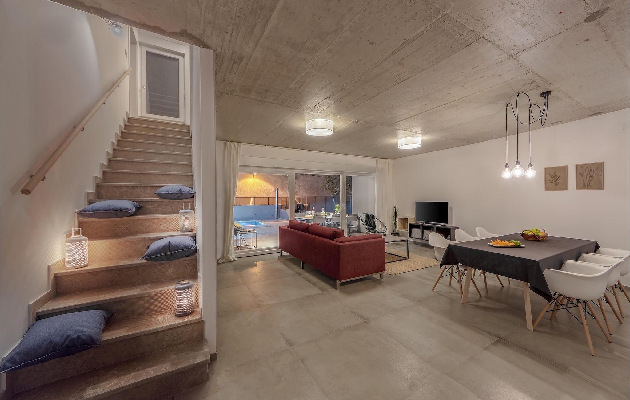 Die Villa San is die ideale Wahl für Gäste, die einen entspannenden Familienurlaub in der Nähe der Adria genießen möchten. Im gemütlichen Innenbereich kann diese Villa bis zu 6 Personen beherbergen. Wir sind sicher, dass Sie sich in das helle und moderne Wohnzimmer mit Zugang zur Terrasse verlieben werden. Das Wohnzimmer ist mit der Küche verbunden, die komplett ausgestattet ist, damit Ihnen im Urlaub nichts fehlt.