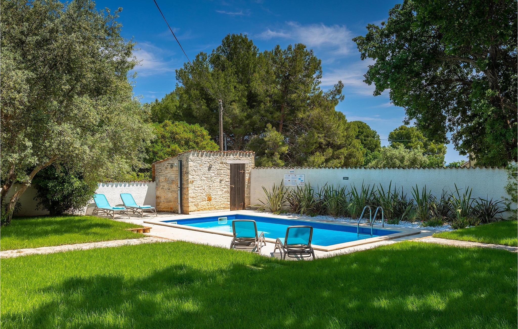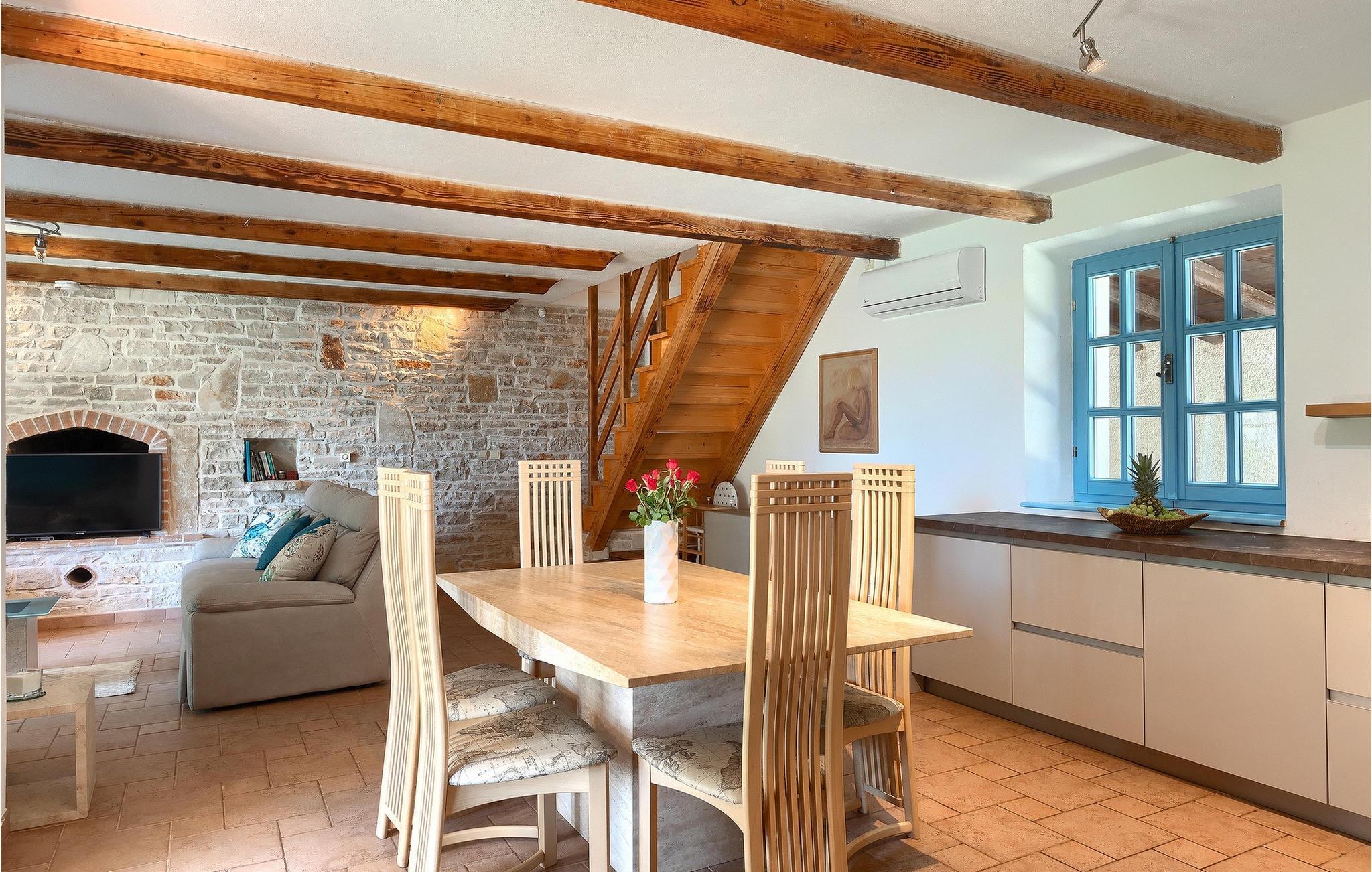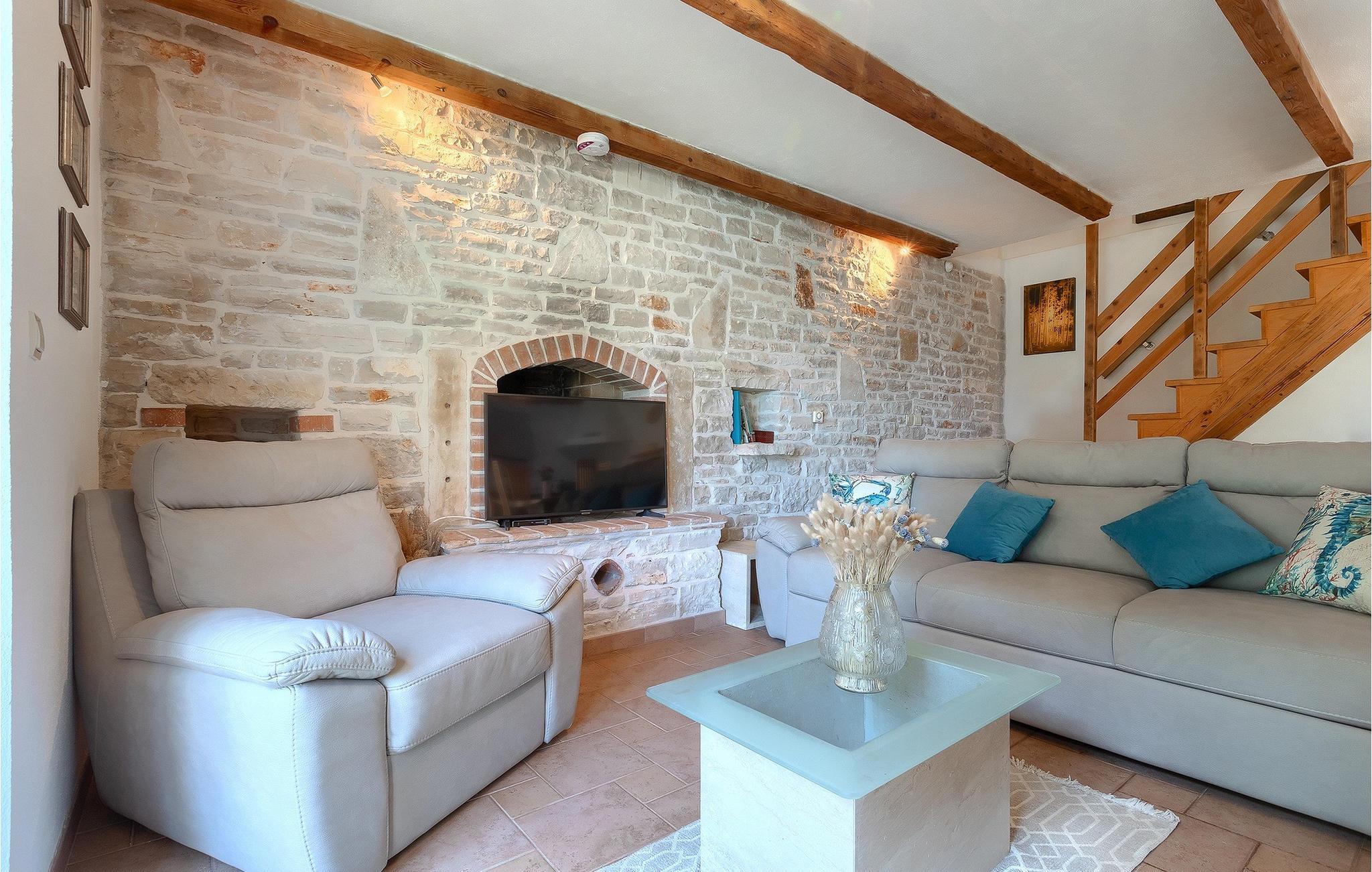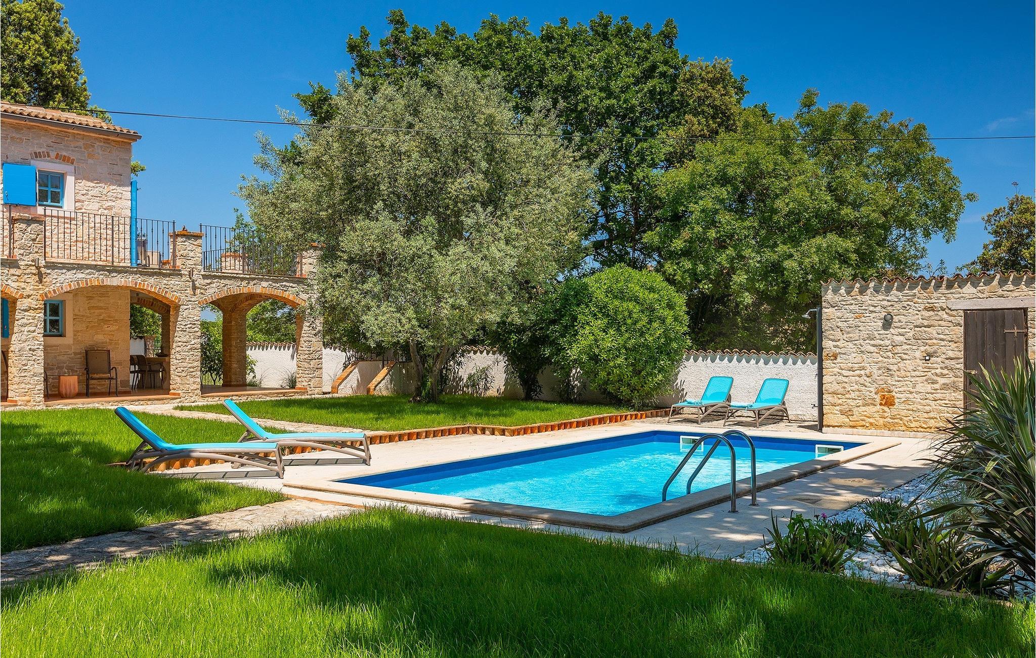 Diese rustikale Familienvilla befindet sich im kleinen Dorf Liznjan in der Nähe der prächtigen Stadt Pula. Die Villa Marlera ist ein romantisches Steinhaus, das ein einzigartiges istrisches Erlebnis bietet. Das Haus hat zwei Etagen und einen schönen Außenbereich mit einem Swimmingpool. Das offene Erdgeschoss besteht aus einem rustikalen und charmanten Ess- und Wohnbereich, einer voll ausgestatteten Küche und einem Badezimmer. Drei wunderschön eingerichtete Schlafzimmer und ein Badezimmer befinden sich im ersten Stock. Zwei Schlafzimmer haben ein Doppelbett, während ein Schlafzimmer mit einem Etagenbett ausgestattet ist - das Bett unten ist für 2 Personen und das Bett oben für 1 Person vorgesehen. Alle gut ausgestatteten Zimmer haben direkten Zugang zur Sonnenterrasse, von wo aus Sie einen schönen Blick auf die Umgebung haben. Der Außenbereich verfügt über einen 28 m2 großen privaten Pool und eine beruhigende Sonnenterrasse, auf der Sie sich an heißen Sommertagen erfrischen oder einfach in der friedlichen Natur entspannen können. Neben dem Pool befindet sich eine überdachte Terrasse, auf der Sie mit Ihrer Familie und Freunden warme Sommerabende verbringen können. Das Haus verfügt über einen großen Rasen, auf dem Sie mit Ihren Kindern spielen und die gemeinsame Zeit genießen können.