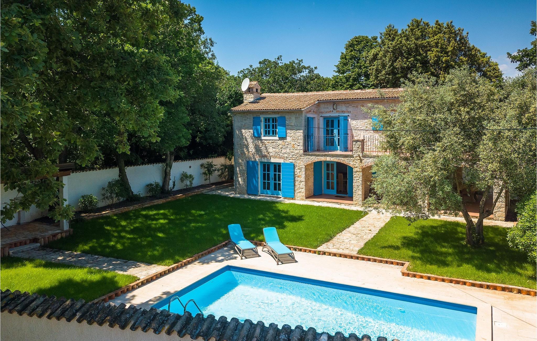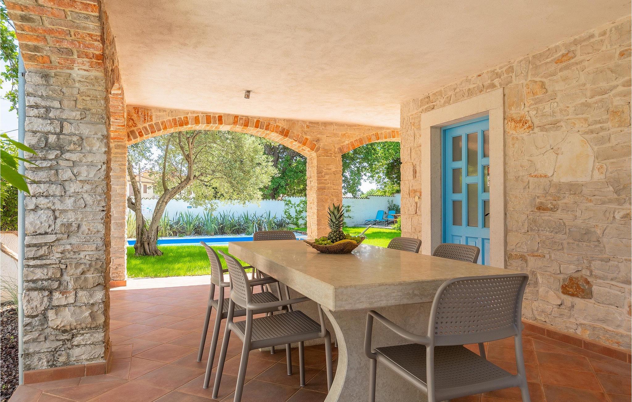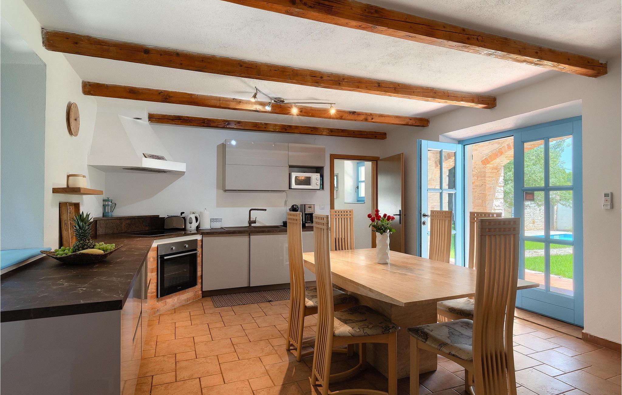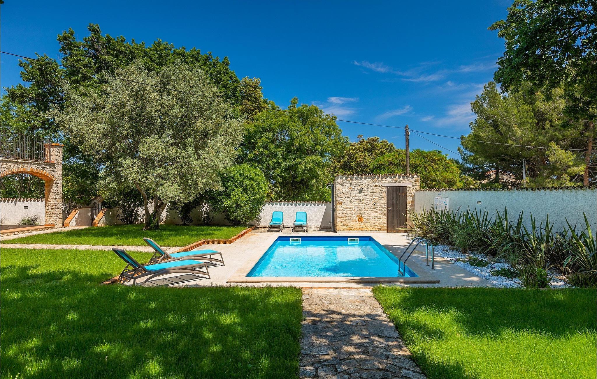 Diese rustikale Familienvilla befindet sich im kleinen Dorf Liznjan in der Nähe der prächtigen Stadt Pula. Die Villa Marlera ist ein romantisches Steinhaus, das ein einzigartiges istrisches Erlebnis bietet. Das Haus hat zwei Etagen und einen schönen Außenbereich mit einem Swimmingpool. Das offene Erdgeschoss besteht aus einem rustikalen und charmanten Ess- und Wohnbereich, einer voll ausgestatteten Küche und einem Badezimmer. Drei wunderschön eingerichtete Schlafzimmer und ein Badezimmer befinden sich im ersten Stock. Zwei Schlafzimmer haben ein Doppelbett, während ein Schlafzimmer mit einem Etagenbett ausgestattet ist - das Bett unten ist für 2 Personen und das Bett oben für 1 Person vorgesehen. Alle gut ausgestatteten Zimmer haben direkten Zugang zur Sonnenterrasse, von wo aus Sie einen schönen Blick auf die Umgebung haben. Der Außenbereich verfügt über einen 28 m2 großen privaten Pool und eine beruhigende Sonnenterrasse, auf der Sie sich an heißen Sommertagen erfrischen oder einfach in der friedlichen Natur entspannen können. Neben dem Pool befindet sich eine überdachte Terrasse, auf der Sie mit Ihrer Familie und Freunden warme Sommerabende verbringen können. Das Haus verfügt über einen großen Rasen, auf dem Sie mit Ihren Kindern spielen und die gemeinsame Zeit genießen können.