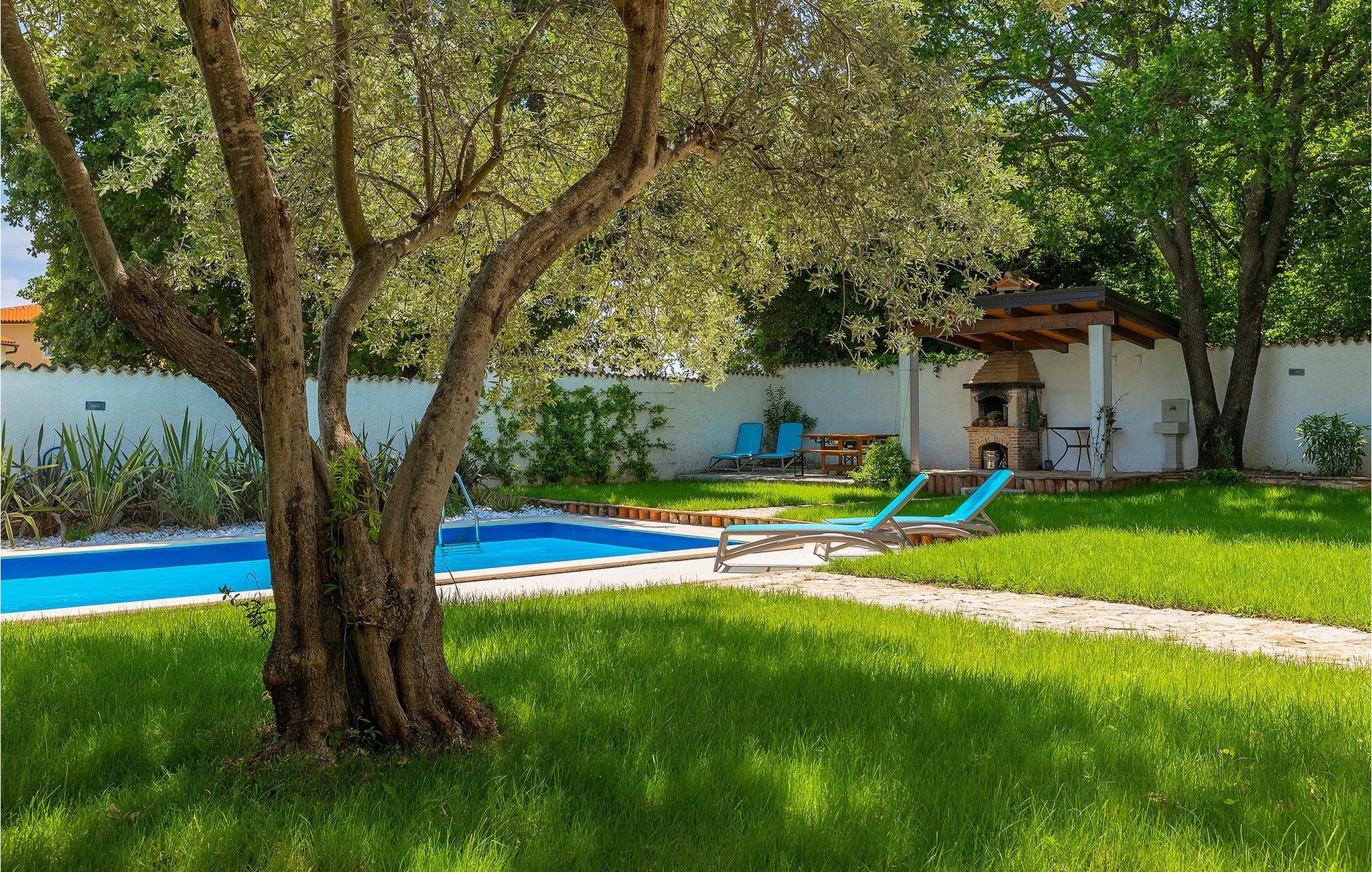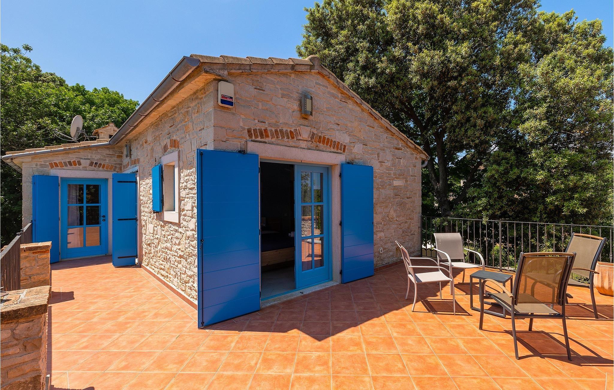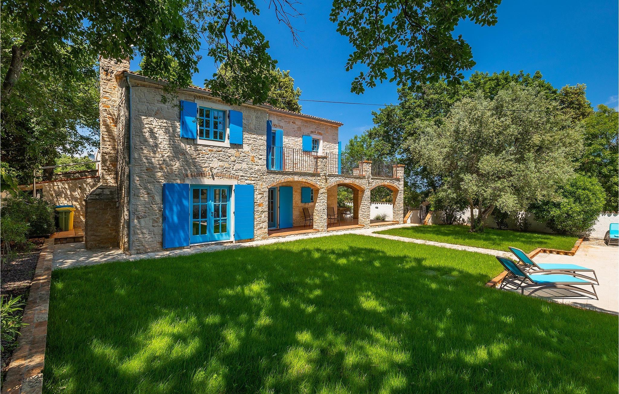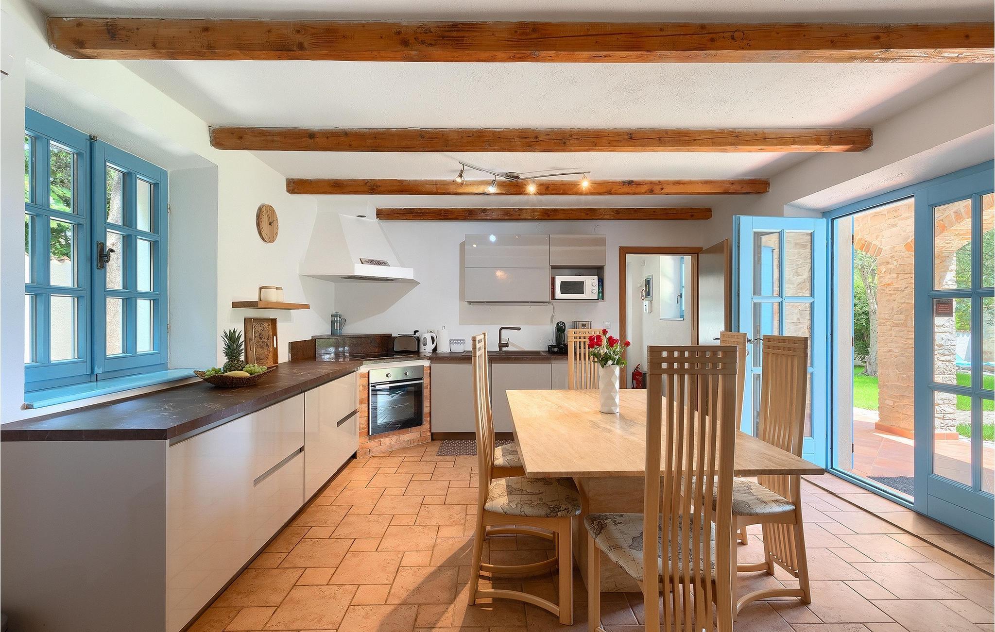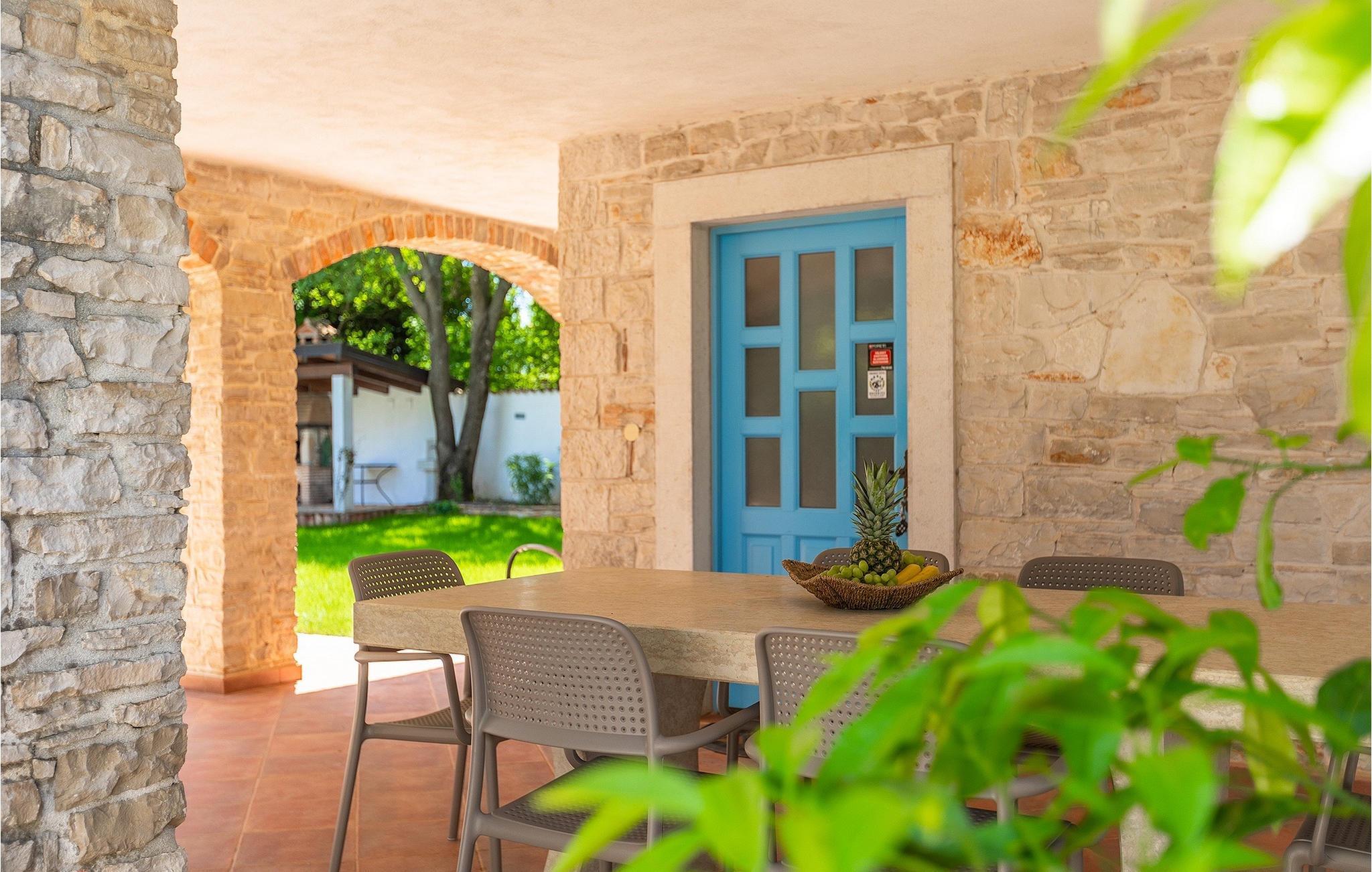Diese rustikale Familienvilla befindet sich im kleinen Dorf Liznjan in der Nähe der prächtigen Stadt Pula. Die Villa Marlera ist ein romantisches Steinhaus, das ein einzigartiges istrisches Erlebnis bietet. Das Haus hat zwei Etagen und einen schönen Außenbereich mit einem Swimmingpool. Das offene Erdgeschoss besteht aus einem rustikalen und charmanten Ess- und Wohnbereich, einer voll ausgestatteten Küche und einem Badezimmer. Drei wunderschön eingerichtete Schlafzimmer und ein Badezimmer befinden sich im ersten Stock. Zwei Schlafzimmer haben ein Doppelbett, während ein Schlafzimmer mit einem Etagenbett ausgestattet ist - das Bett unten ist für 2 Personen und das Bett oben für 1 Person vorgesehen. Alle gut ausgestatteten Zimmer haben direkten Zugang zur Sonnenterrasse, von wo aus Sie einen schönen Blick auf die Umgebung haben. Der Außenbereich verfügt über einen 28 m2 großen privaten Pool und eine beruhigende Sonnenterrasse, auf der Sie sich an heißen Sommertagen erfrischen oder einfach in der friedlichen Natur entspannen können. Neben dem Pool befindet sich eine überdachte Terrasse, auf der Sie mit Ihrer Familie und Freunden warme Sommerabende verbringen können. Das Haus verfügt über einen großen Rasen, auf dem Sie mit Ihren Kindern spielen und die gemeinsame Zeit genießen können.