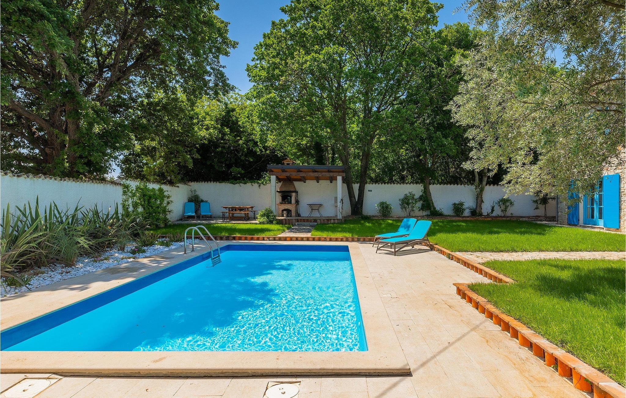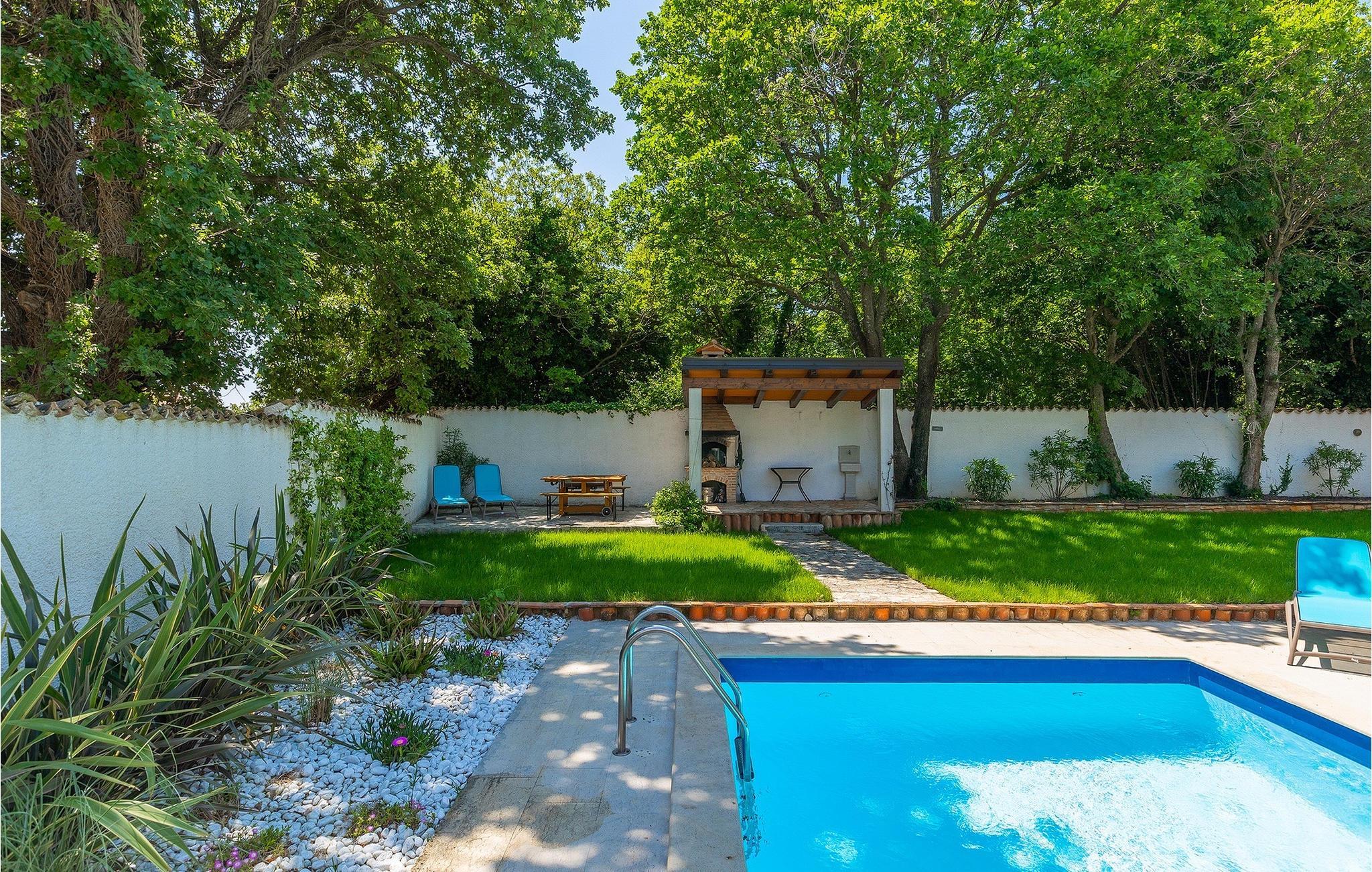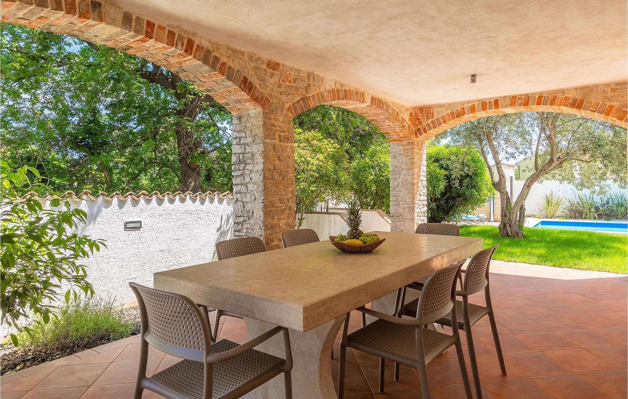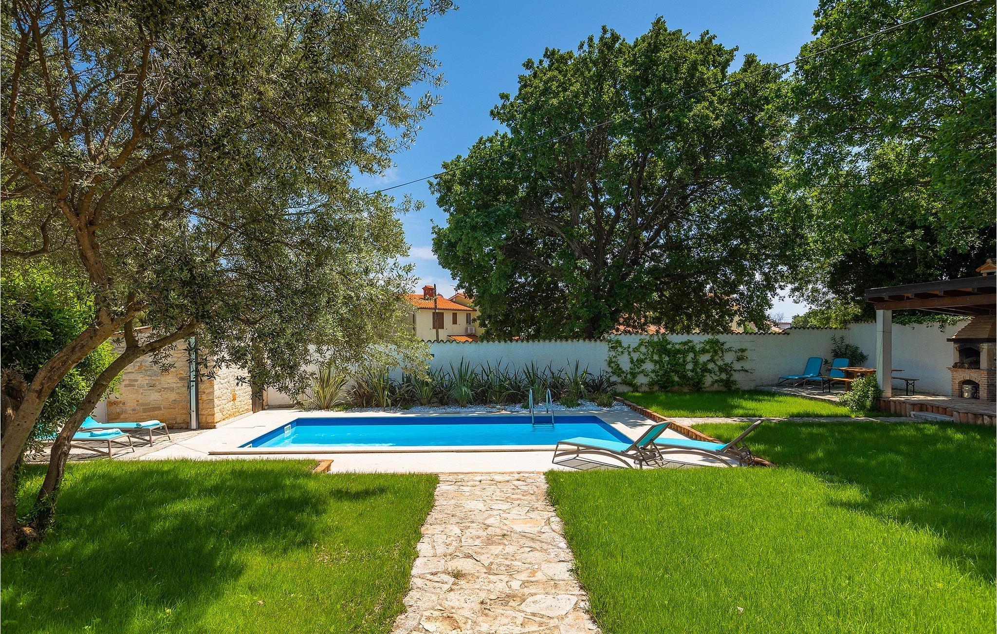 Diese rustikale Familienvilla befindet sich im kleinen Dorf Liznjan in der Nähe der prächtigen Stadt Pula. Die Villa Marlera ist ein romantisches Steinhaus, das ein einzigartiges istrisches Erlebnis bietet. Das Haus hat zwei Etagen und einen schönen Außenbereich mit einem Swimmingpool. Das offene Erdgeschoss besteht aus einem rustikalen und charmanten Ess- und Wohnbereich, einer voll ausgestatteten Küche und einem Badezimmer. Drei wunderschön eingerichtete Schlafzimmer und ein Badezimmer befinden sich im ersten Stock. Zwei Schlafzimmer haben ein Doppelbett, während ein Schlafzimmer mit einem Etagenbett ausgestattet ist - das Bett unten ist für 2 Personen und das Bett oben für 1 Person vorgesehen. Alle gut ausgestatteten Zimmer haben direkten Zugang zur Sonnenterrasse, von wo aus Sie einen schönen Blick auf die Umgebung haben. Der Außenbereich verfügt über einen 28 m2 großen privaten Pool und eine beruhigende Sonnenterrasse, auf der Sie sich an heißen Sommertagen erfrischen oder einfach in der friedlichen Natur entspannen können. Neben dem Pool befindet sich eine überdachte Terrasse, auf der Sie mit Ihrer Familie und Freunden warme Sommerabende verbringen können. Das Haus verfügt über einen großen Rasen, auf dem Sie mit Ihren Kindern spielen und die gemeinsame Zeit genießen können.