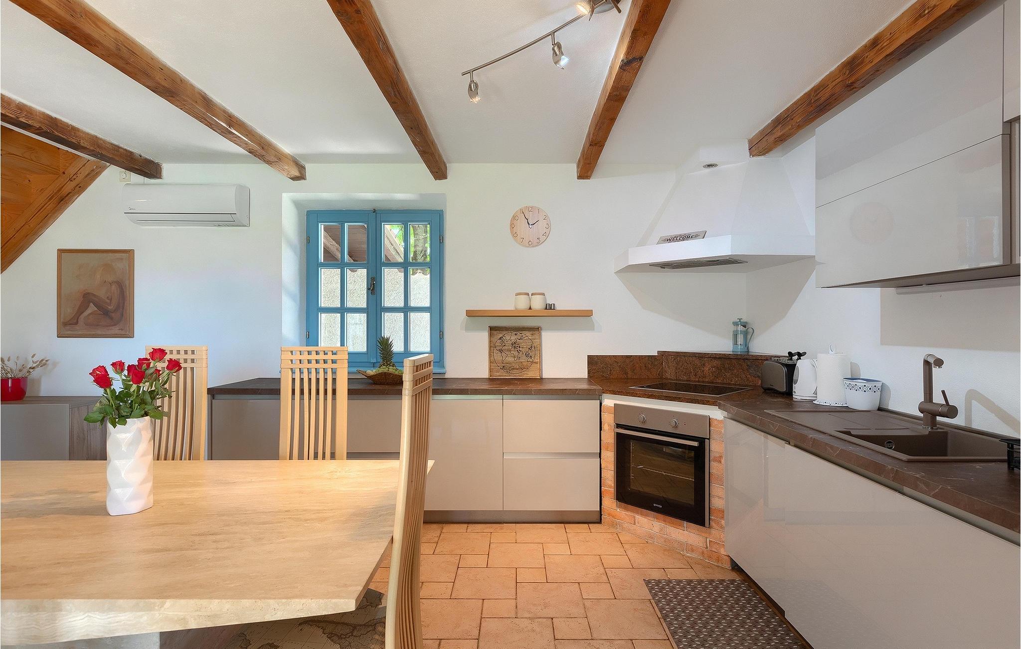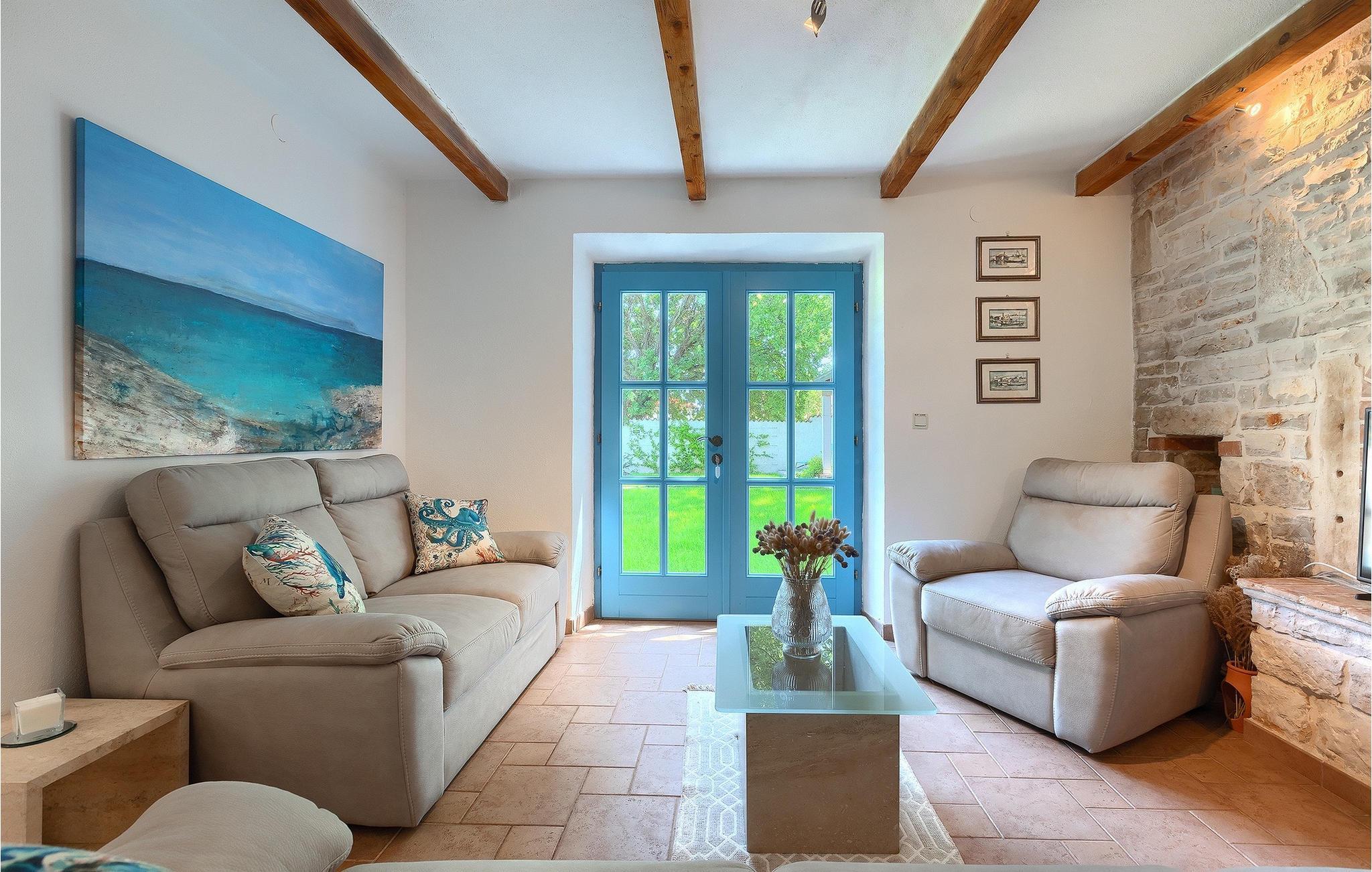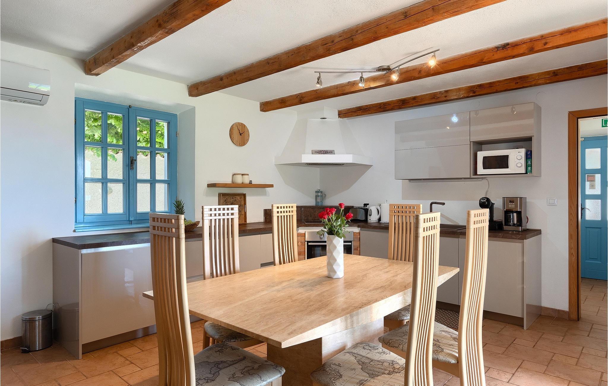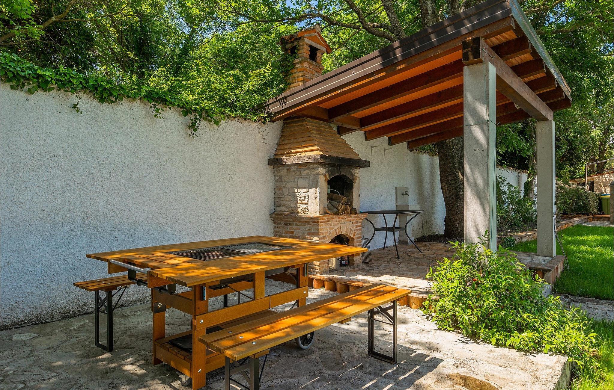 Diese rustikale Familienvilla befindet sich im kleinen Dorf Liznjan in der Nähe der prächtigen Stadt Pula. Die Villa Marlera ist ein romantisches Steinhaus, das ein einzigartiges istrisches Erlebnis bietet. Das Haus hat zwei Etagen und einen schönen Außenbereich mit einem Swimmingpool. Das offene Erdgeschoss besteht aus einem rustikalen und charmanten Ess- und Wohnbereich, einer voll ausgestatteten Küche und einem Badezimmer. Drei wunderschön eingerichtete Schlafzimmer und ein Badezimmer befinden sich im ersten Stock. Zwei Schlafzimmer haben ein Doppelbett, während ein Schlafzimmer mit einem Etagenbett ausgestattet ist - das Bett unten ist für 2 Personen und das Bett oben für 1 Person vorgesehen. Alle gut ausgestatteten Zimmer haben direkten Zugang zur Sonnenterrasse, von wo aus Sie einen schönen Blick auf die Umgebung haben. Der Außenbereich verfügt über einen 28 m2 großen privaten Pool und eine beruhigende Sonnenterrasse, auf der Sie sich an heißen Sommertagen erfrischen oder einfach in der friedlichen Natur entspannen können. Neben dem Pool befindet sich eine überdachte Terrasse, auf der Sie mit Ihrer Familie und Freunden warme Sommerabende verbringen können. Das Haus verfügt über einen großen Rasen, auf dem Sie mit Ihren Kindern spielen und die gemeinsame Zeit genießen können.