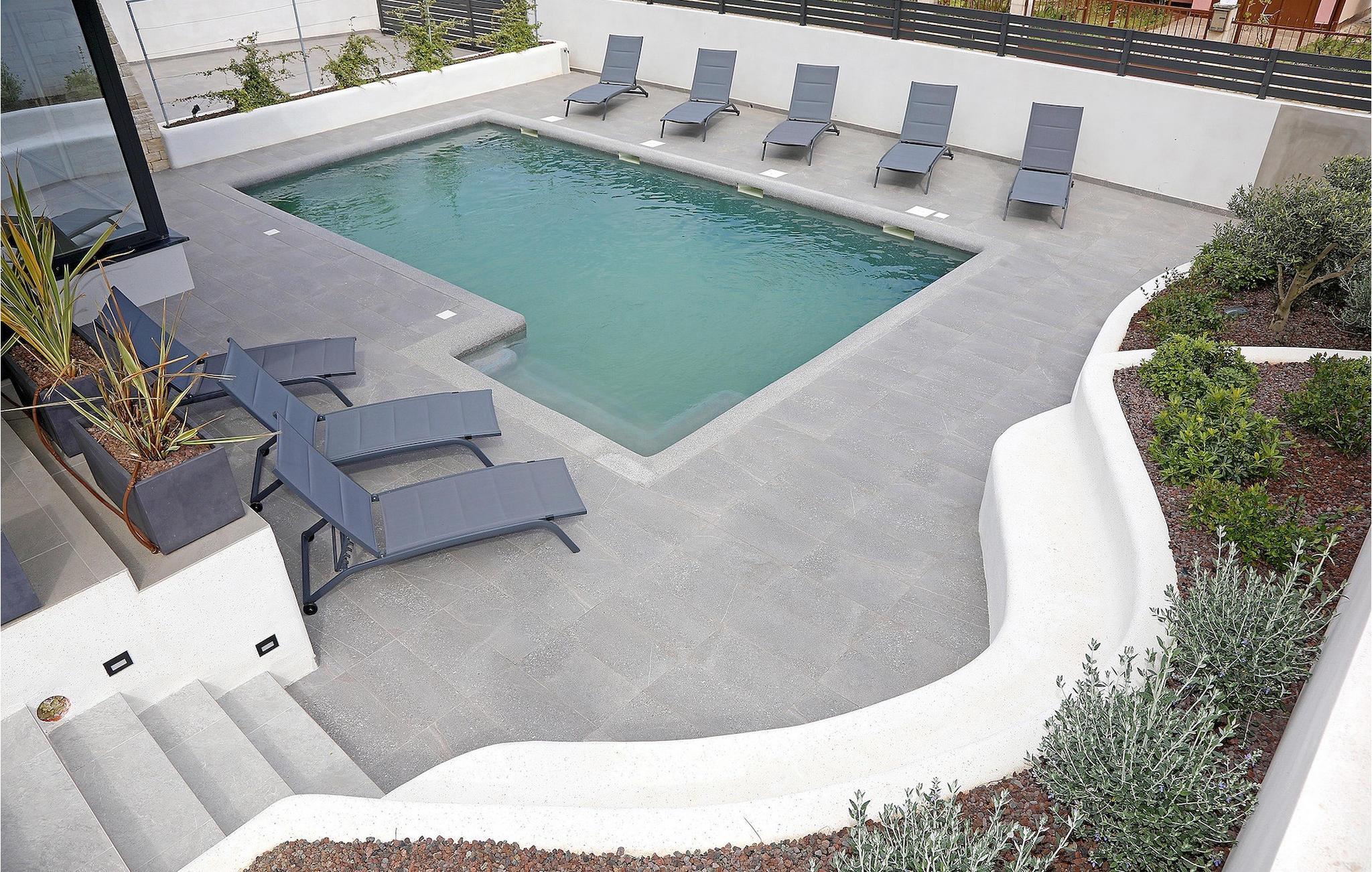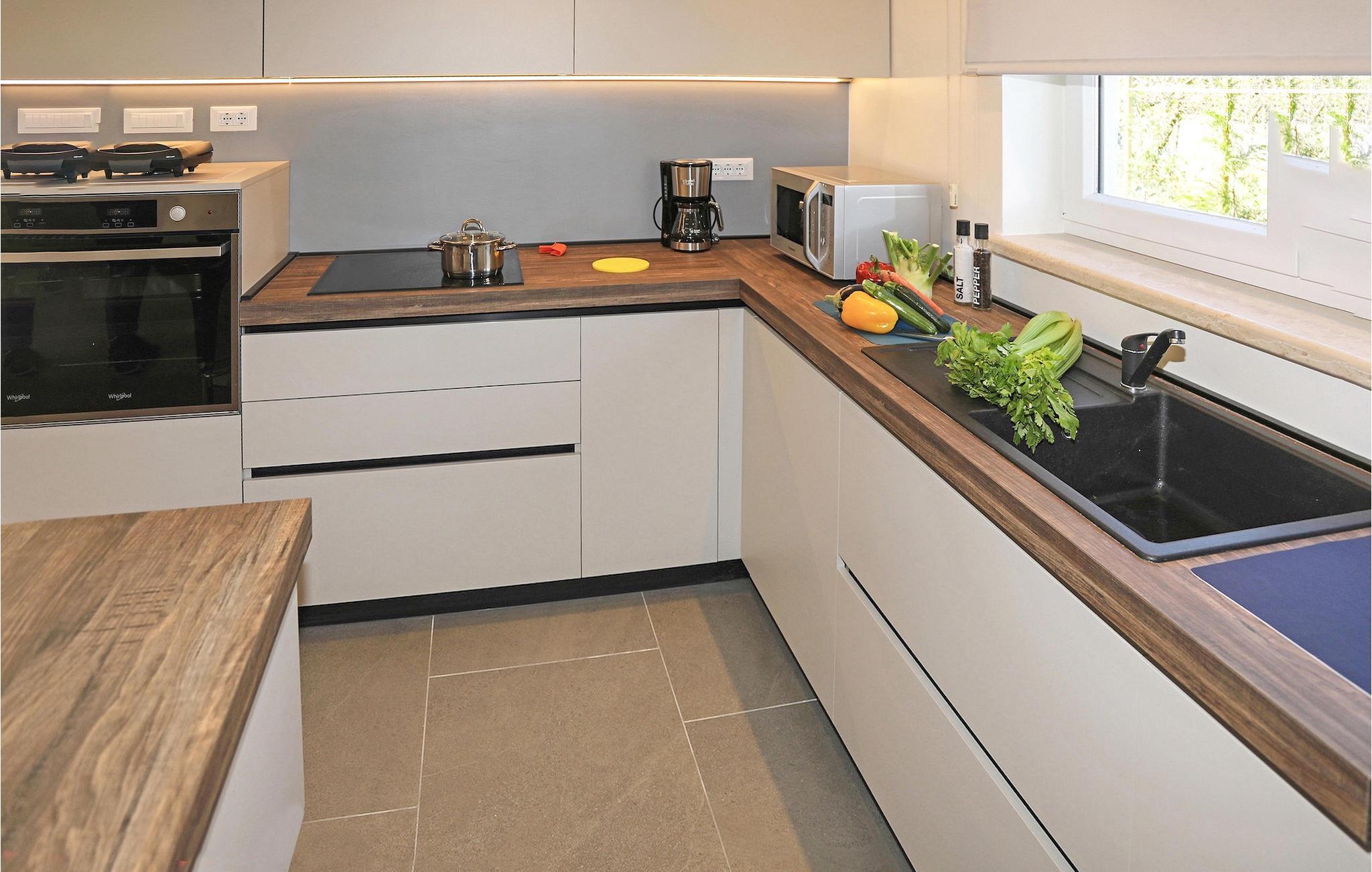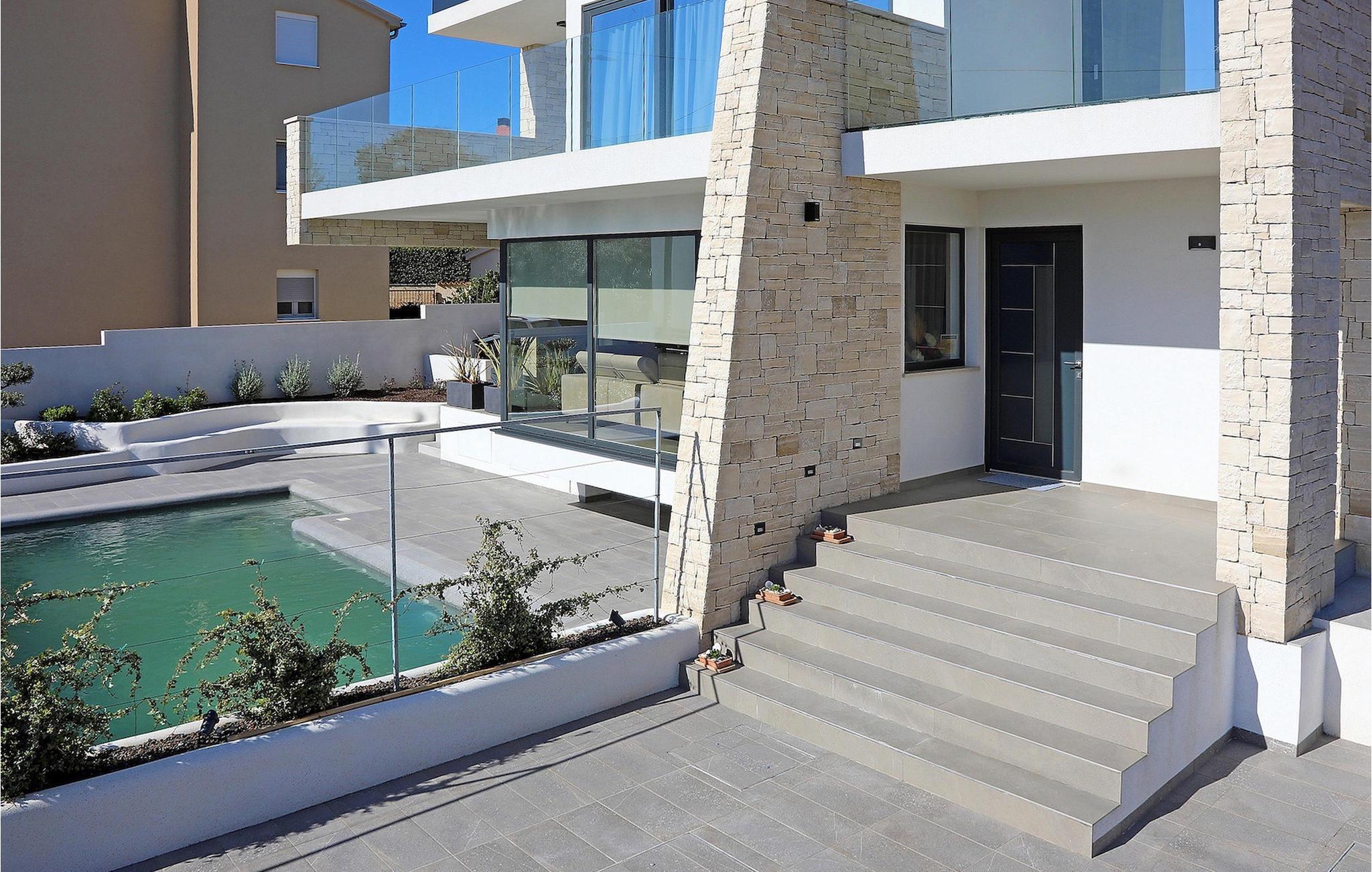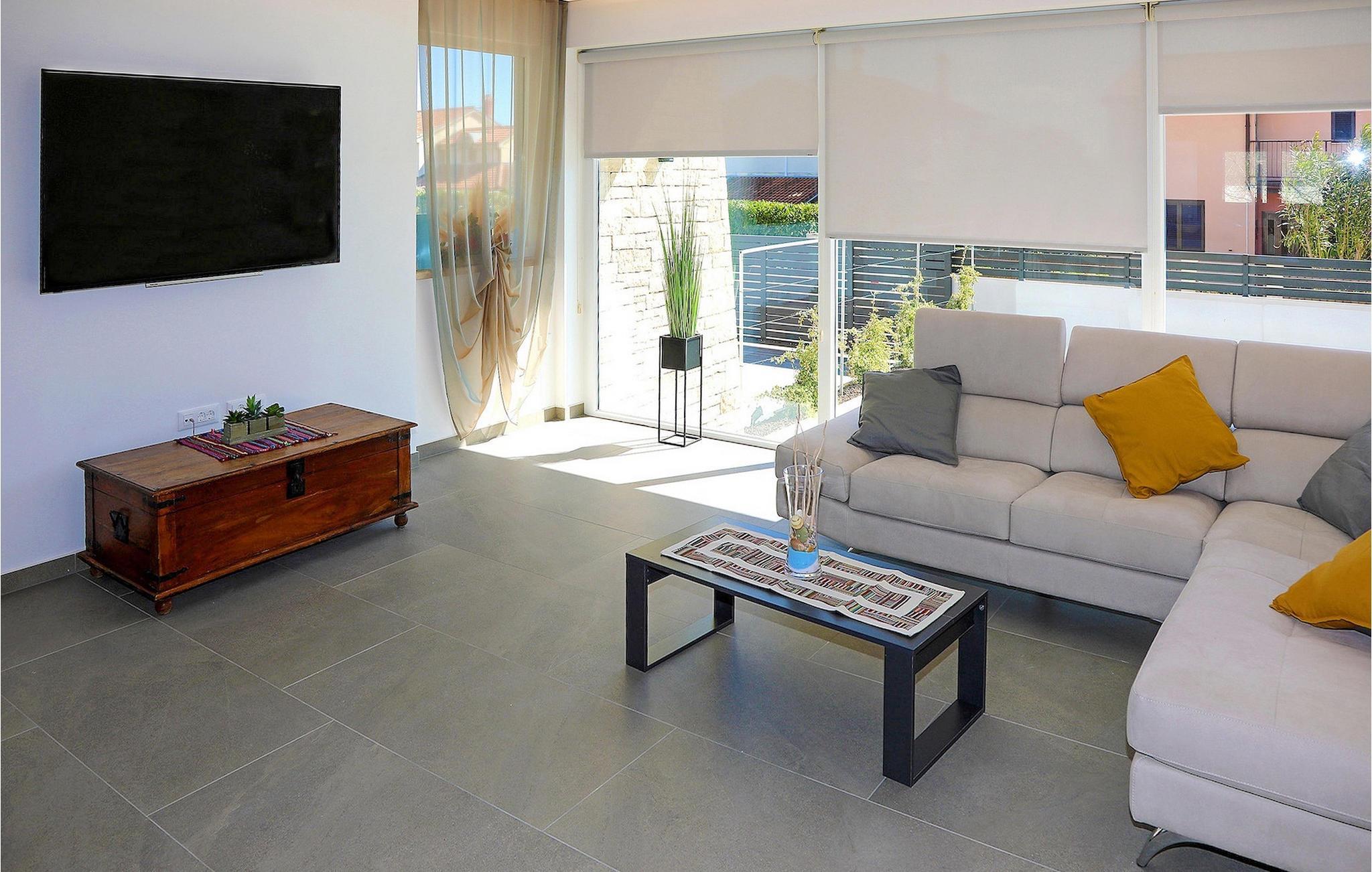 Das Innere der Villa ist modern eingerichtet und bietet Ihnen alles, was Sie für einen angenehmen Urlaub benötigen. Im Erdgeschoss der Villa befindet sich ein geräumiges Wohnzimmer mit Zugang zur Terrasse mit Pool und eine voll ausgestattete Küche mit Essbereich, sowie ein Schlafzimmer mit eigenem Bad.
