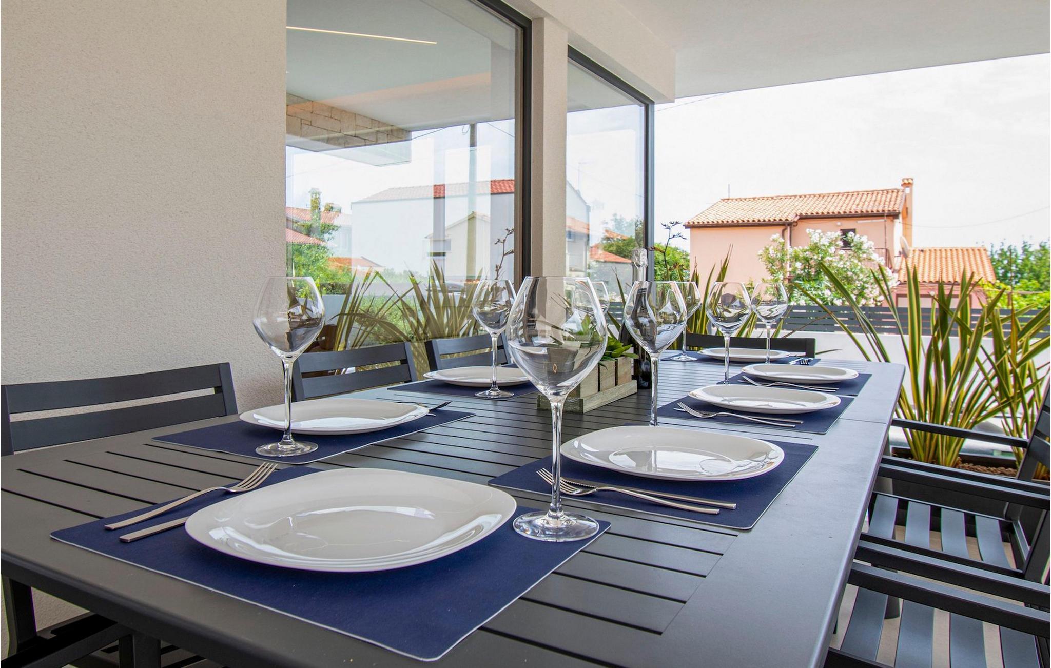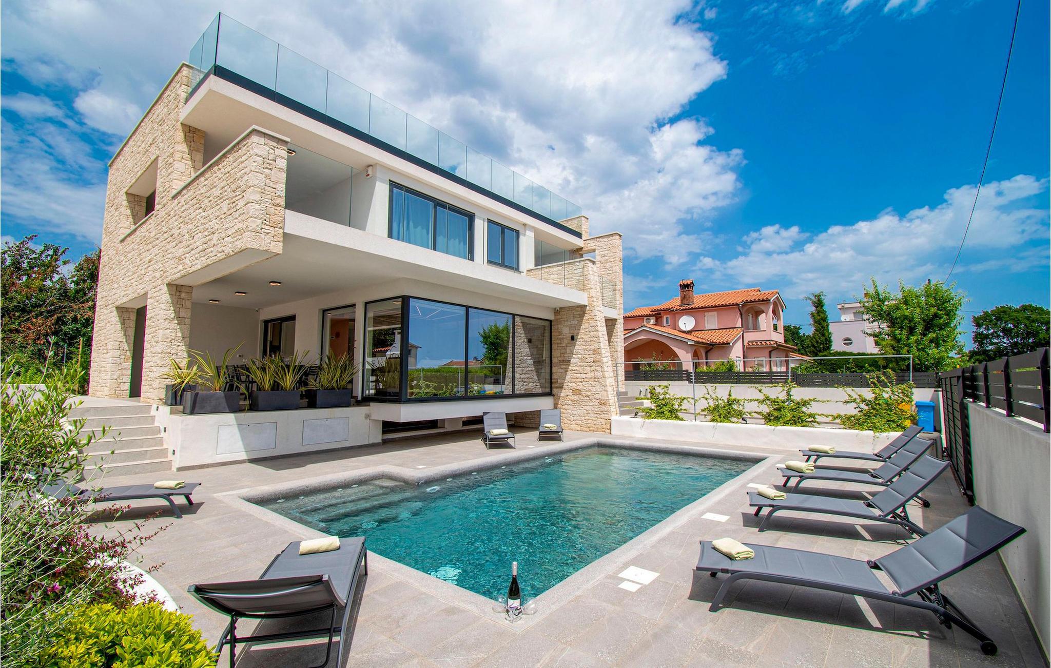 Wenn Sie eine moderne Unterkunft in attraktiver Lage nah zum Meer suchen, dann ist die wunderschöne Villa Rosarol die perfekte Wahl für Sie. Diese Villa in der kleinen Stadt Liznjan ist ideal für einen unvergesslichen Urlaub in Istrien. Vor der Villa befindet sich ein großer privater Pool mit Hydromassage, bei dem Sie sich entspannen können. Im Außenbereich finden Sie auch eine überdachte Terrasse mit Grill und Esstisch, wo Sie sicherlich die romantische Atmosphäre an Sommerabenden mit Familie und Freunden genießen werden.