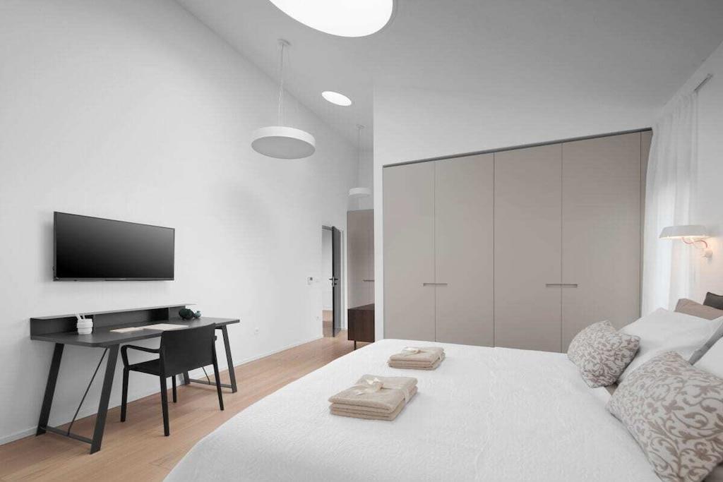 Luxusvilla mit Pool in der Nähe von Pula Die schöne Luxusvilla Atria befindet sich in Liznjan in der Nähe von Pula, nur 2 km vom Meer entfernt. Diese Villa bietet Platz für bis zu 10 Personen. Sie hat ein ungewöhnliches Design, welches dieser Villa eine besondere Note verleiht. Im Erdgeschoss befinden sich ein helles und modernes Wohnzimmer mit Essbereich, eine sehr moderne Küche und ein Doppelzimmer mit TV und eigenem Bad. Die erste Etage ist als Schlafbereich eingerichtet und bietet 3 Doppelzimmer, die alle mit einer Klimaanlage, einem TV und einem eigenen Bad ausgestattet sind. Wenn Sie aktiv bleiben oder einfach nur Spaß haben möchten, bietet Ihnen die Villa Eden ein Fitnessrad und Tischtennis. Die Villa hat auch eine wunderbare offene Galerie, in der Sie sitzen und die schöne Aussicht auf die gesamte Villa von innen wie von außen genießen können - der herrliche Blick reicht sogar bis zum Pool und Garten. Wenn Sie sich erfrischen oder schwimmen möchten, steht Ihnen ein wunderschöner, beheizter Pool mit Liegestühlen zur Verfügung. Wenn Sie köstlich grillen möchten, stehen Ihnen auch ein Holzkohlegrill und ein gemütlicher Essbereich zur Verfügung. Das Erdgeschoss ist eben, sowohl im Innen- als auch im Außenbereich, was die Villa geeignet für Gehbehinderte macht.