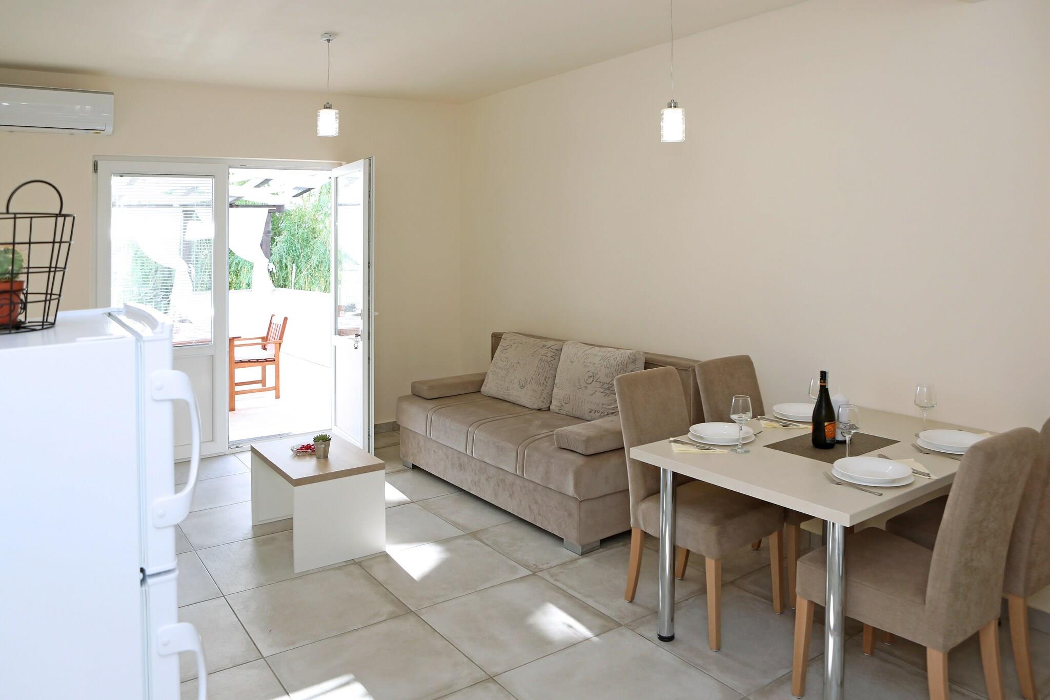 Dieses gemütliche Apartment mit 1 Schlafzimmer in Ljubac ist ideal für Paare oder kleine Familien, die einen erholsamen Küstenurlaub verbringen möchten. Nur 200 m vom Meer entfernt, bietet es den idealen Ausgangspunkt für Erkundungstouren durch Dalmatien. Das Apartment ist umgeben von malerischen Sehenswürdigkeiten, darunter das nahegelegene Velebit-Gebirge, die nur 15 Minuten entfernte Insel Pag und die historische Stadt Zadar, die in 20 Minuten erreichbar ist. Naturliebhaber können Nationalparks wie die Krka-Wasserfälle, Paklenica und Kornati erkunden. Täglich starten Bootsausflüge von Zadar aus. Das Apartment verfügt über einen Garten und eine Terrasse zum Entspannen im Freien. Im Apartment finden Sie Klimaanlage, Bettwäsche und Handtücher für einen komfortablen Aufenthalt. Ein Supermarkt für alles Wichtige ist nur 350 m entfernt, und Restaurants erreichen Sie nach 800 m, falls Sie Lust auf ein Abendessen haben. Der Flughafen Zadar liegt verkehrsgünstig nur 20 km von der Unterkunft entfernt und ermöglicht so eine einfache und stressfreie Anreise.
