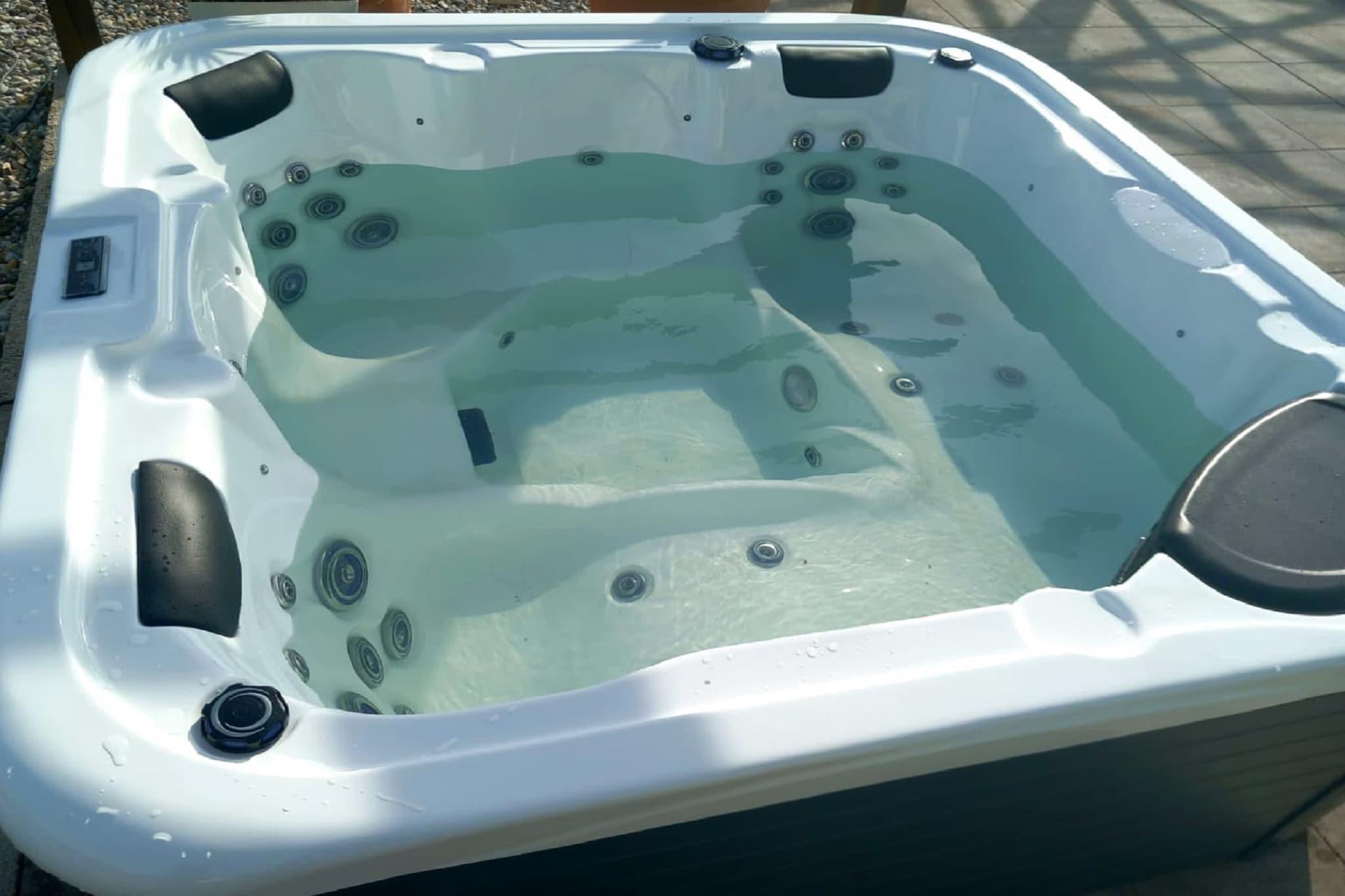Parterre: (Wohnzimmer(Doppelschlafcouch, TV(Flatscreen), Sitzecke), Küche(Esstisch, Wasserkocher, Toaster, Kochherd, Backofen, Mikrowelle, Spülmaschine, Kühl-/Gefrierkombination), Schlafzimmer(Doppelbett), Schlafzimmer(Doppelbett), Schlafzimmer(Einzelbett, Einzelbett), Badezimmer(Dusche, Waschbecken, Toilette), Badezimmer(Dusche, Waschbecken, Toilette), Terrasse(alleinige Nutzung, umzäunt, 60 m2)) Whirlwanne(Gemeinschaftliche Nutzung mit anderen Gästen), Waschmaschine, Patio, Klimaanlage, Innenhof(Gemeinschaftliche Nutzung mit anderen Gästen), Terrasse(Gemeinschaftliche Nutzung mit anderen Gästen), Garten(Gemeinschaftliche Nutzung mit anderen Gästen), Gartenmöbel, Liegen, Grill(Gemeinschaftliche Nutzung mit anderen Gästen), Parkplatz, Sonnenschirm, Pool(Gemeinschaftliche Nutzung mit anderen Gästen), Gartenlounge