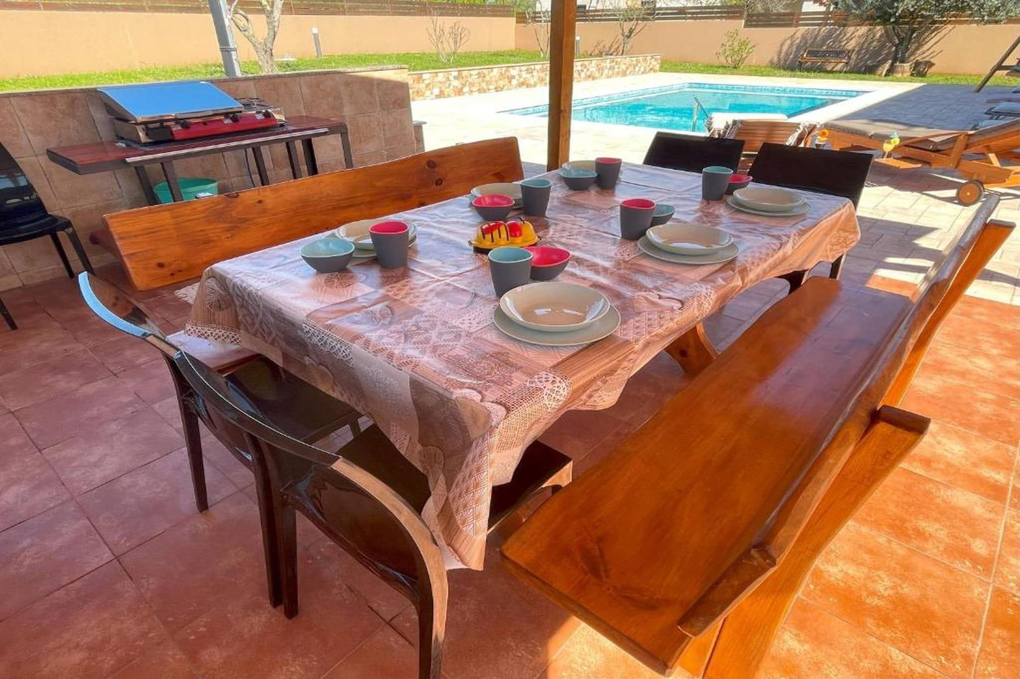 Offene Küche(Esstisch, Herd, Wasserkocher, Toaster, Kaffeemaschine, Mikrowelle, Spülmaschine, Kühlschrank, Waschmaschine, Hochstuhl, , ), Wohn/Esszimmer(TV(Flatscreen), Esstisch, Sitzecke), Schlafzimmer(Doppelbett), Schlafzimmer(Doppelbett), Schlafzimmer(Etagenbett), Badezimmer(Dusche, Waschbecken, Toilette, Bidet, Föhn), Badezimmer(Dusche, Waschbecken, Toilette, Bidet, Föhn), Internet, Parkplatz, Esstisch, Balkon, Patio, Klimaanlage, Terrasse, Garten, Gartenmöbel, Liegen, Grill, Pool(alleinige Nutzung), Bügeleisen, Trockenschrank