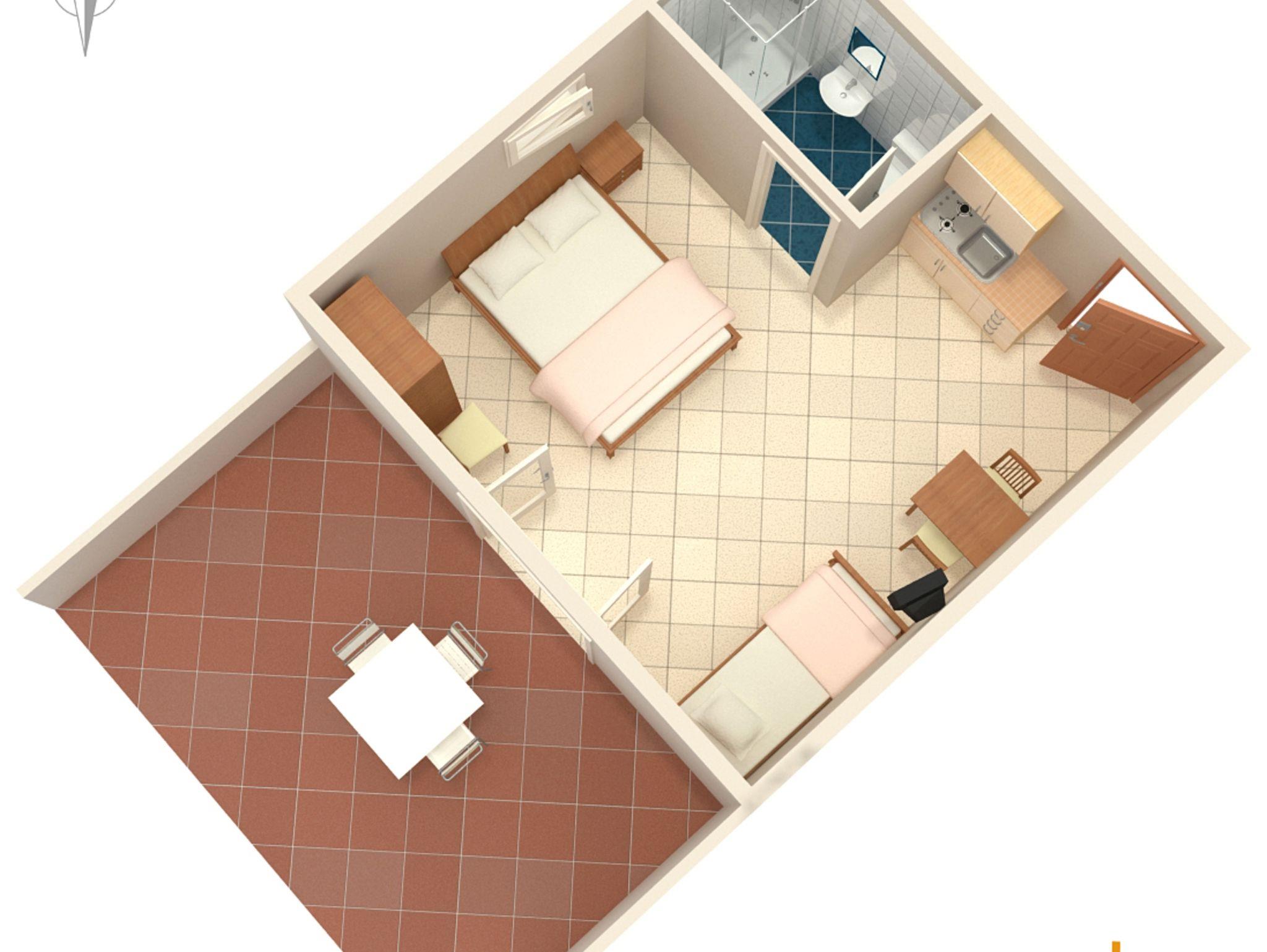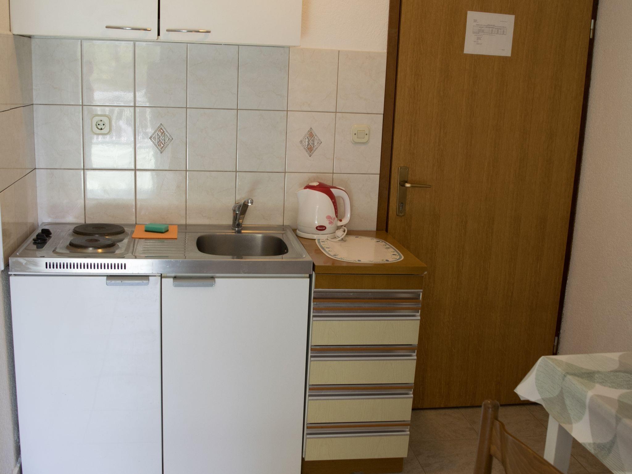 Studio bietet Platz für 3 Gäste. Die Betten sind in Schlafzimmern, die es 1 gibt, innerhalb einer Gesamtfläche von 19m2, angeordnet. Die Gäste haben eine eigene Terrasse zur Verfügung, auf der sie in warmen Sommernächten genießen können. Das Studio-Apartment bietet Meerblick. Es ist erlaubt, Speisen auf dem Gemeinschafts-Grill vorzubereiten. In der Unterkunftseinheit besteht die Möglichkeit des Mitbringens von Haustieren gegen Aufpreis. IM PREIS INBEGRIFFEN: Kurtaxe, Endreinigung, Klimatisierung, Parkplatz, Internet, Zusatzbett, Bügeleisen, Bügelbrett. VERBINDLICHE ZUSÄTZLICHE KOSTEN: Aufzahlung für Kurzaufenthalte (prozentualer Zuschlag pro Nächtigungsanzahl: 30% - 1, 20% - 2, 10% - 3). UNVERBINDLICHE ZUSÄTZLICHE KOSTEN: Haustiere (5,00 € pro Nacht). Die Verfügbarkeit zusätzlicher Dienstleistungen in Ihrem reservierten Termin und die Preise derselben (falls nicht aufgeführt) müssen im Voraus überprüft werden. Zusätzliche Dienstleistungen die in der Zahlungsaufforderung nicht aufgeführt sind werden direkt beim Vermieter bezahlt, angenommen der Gast nutzt auch diese.
