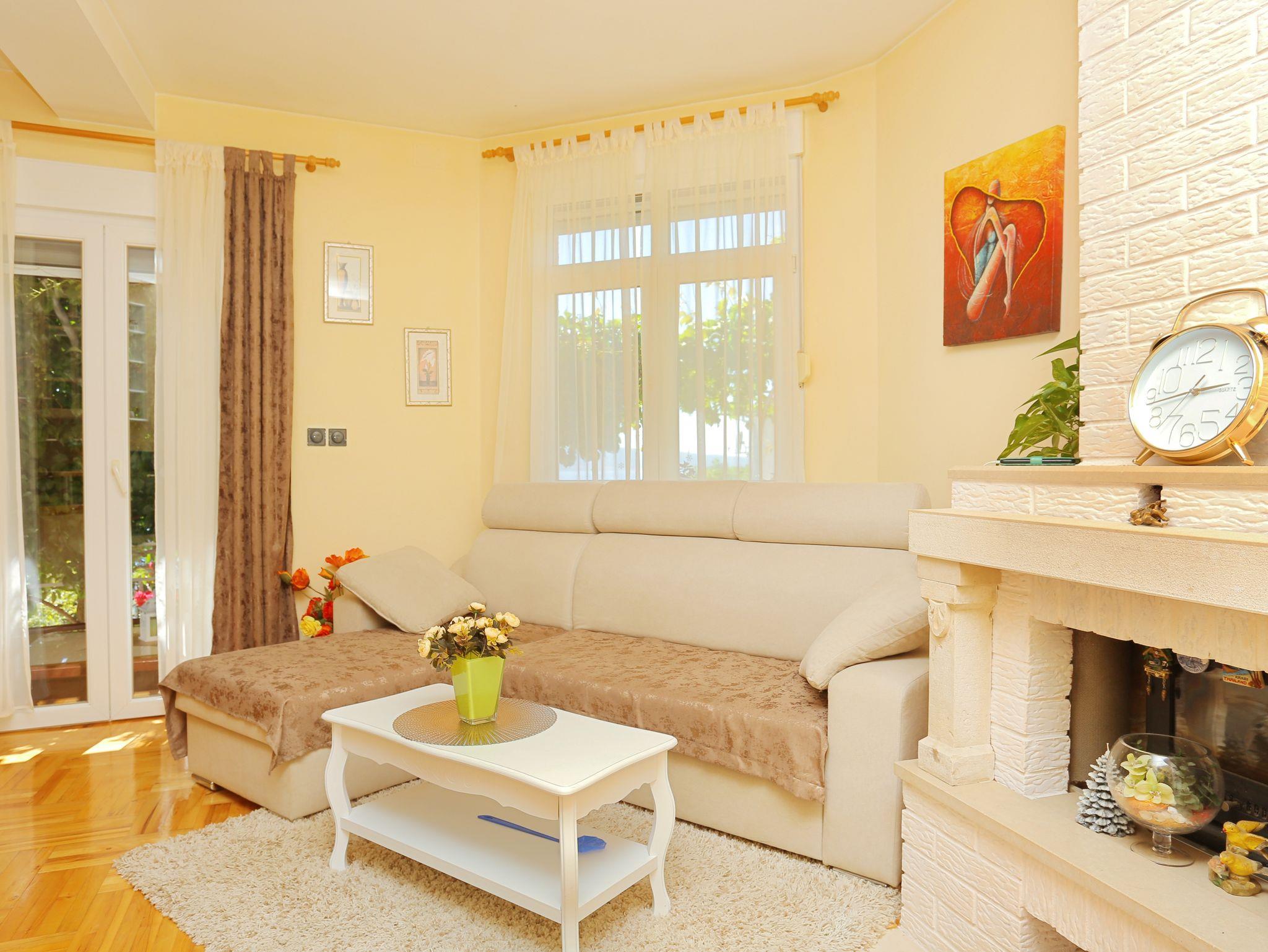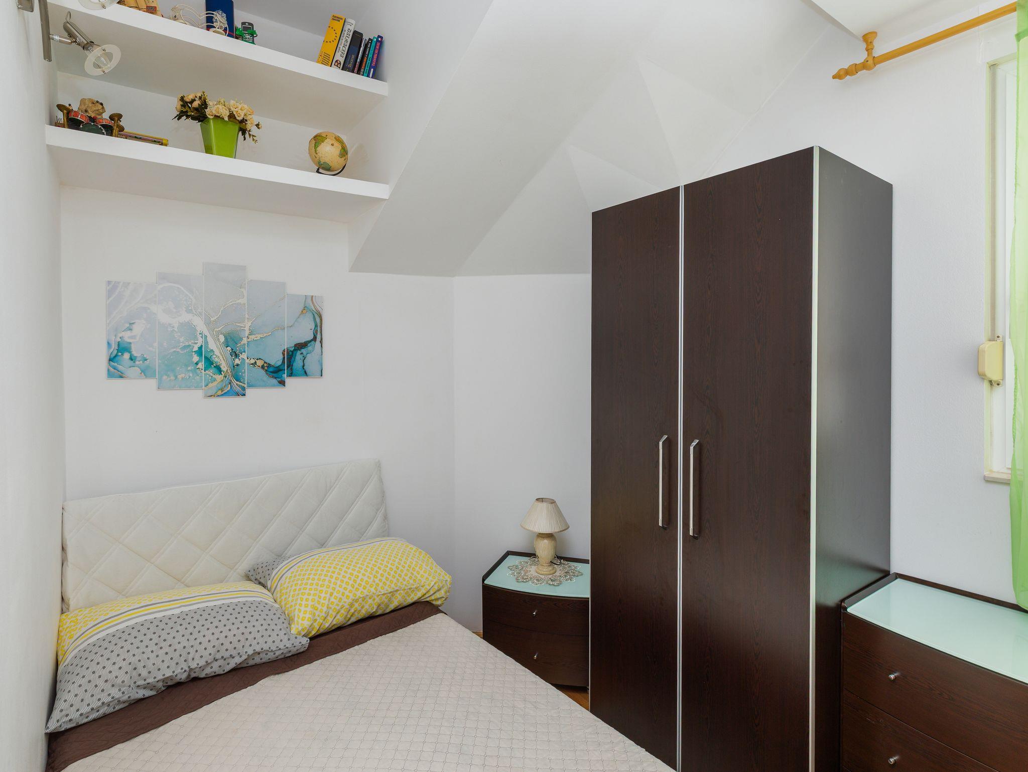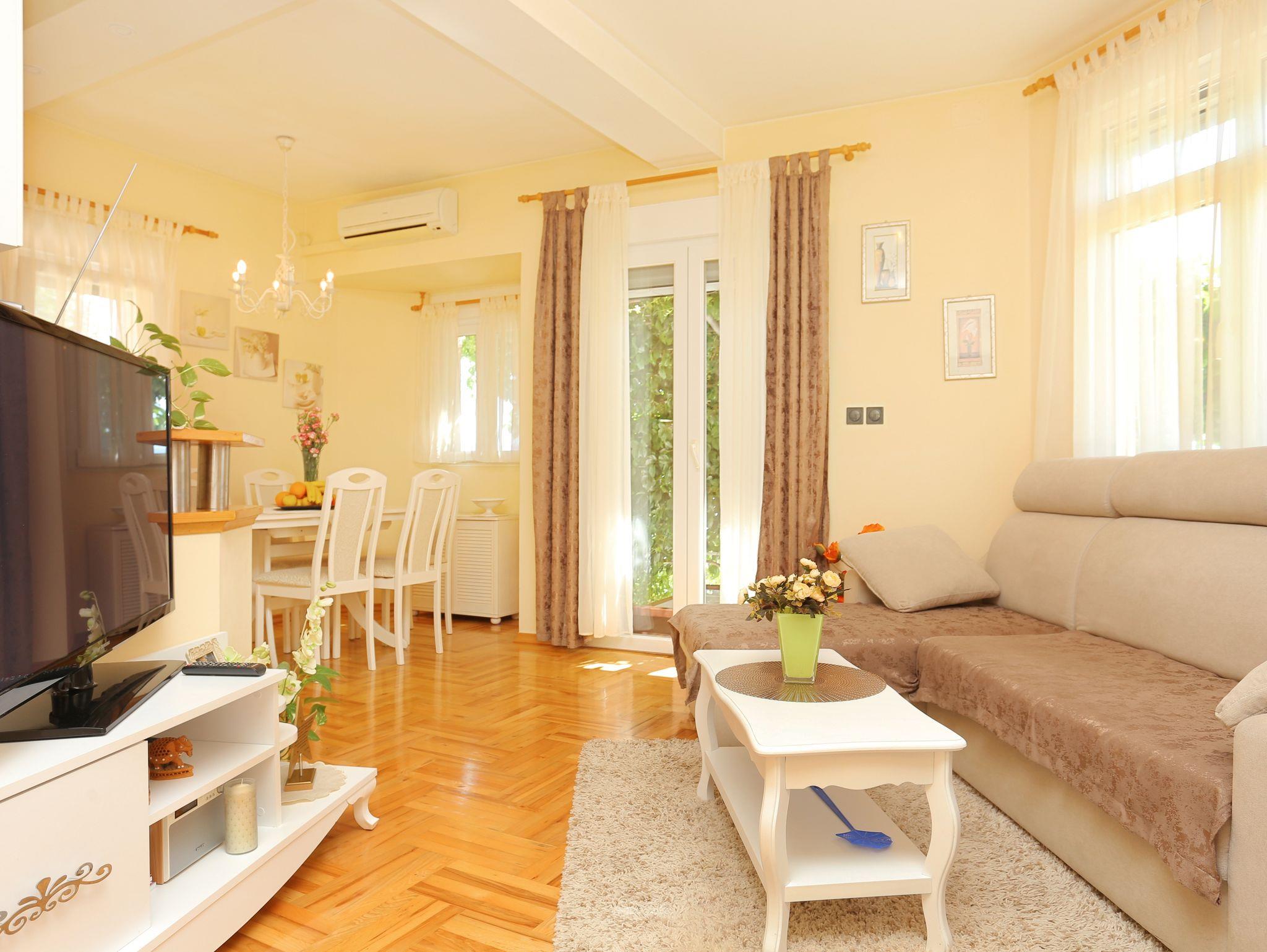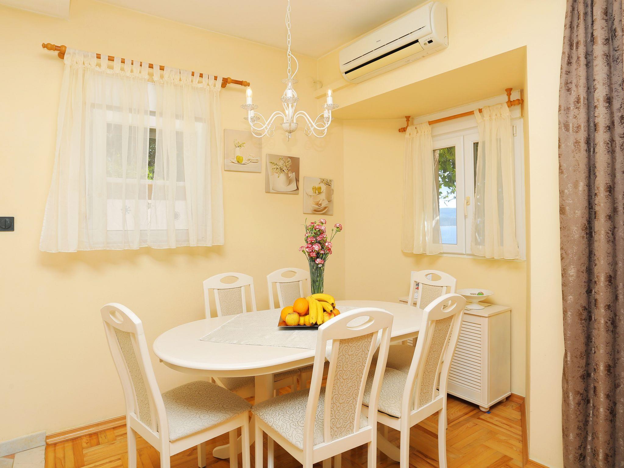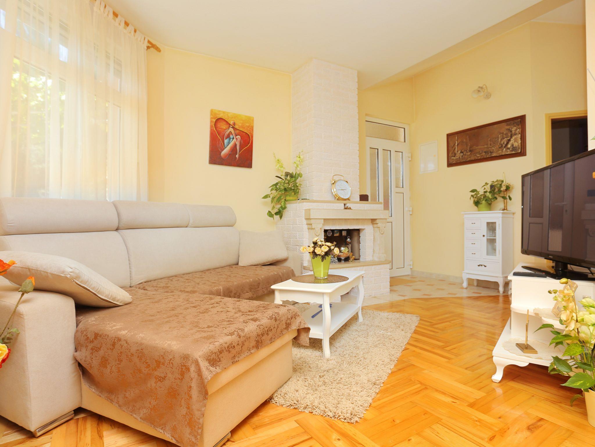 Ferienwohnung bietet Platz für 5 Gäste. Die Betten sind in Schlafzimmern, die es 2 gibt, und in Wohnzimmer, innerhalb einer Gesamtfläche von 48m2, angeordnet. Die Gäste haben eine eigene Terrasse zur Verfügung, auf der sie in warmen Sommernächten genießen können. Das Apartment bietet Meerblick. Für vollen Genuss und Entspannung gibt es einen privaten Grill für Gäste dieser Unterkunft. IM PREIS INBEGRIFFEN: Kurtaxe, Endreinigung, Klimatisierung, Parkplatz, Internet, Kinderbett, Bügeleisen, Bügelbrett, Föhn. VERBINDLICHE ZUSÄTZLICHE KOSTEN: Aufzahlung für Kurzaufenthalte (prozentualer Zuschlag pro Nächtigungsanzahl: 30% - 1, 20% - 2, 10% - 3). Die Verfügbarkeit zusätzlicher Dienstleistungen in Ihrem reservierten Termin und die Preise derselben (falls nicht aufgeführt) müssen im Voraus überprüft werden. Zusätzliche Dienstleistungen die in der Zahlungsaufforderung nicht aufgeführt sind werden direkt beim Vermieter bezahlt, angenommen der Gast nutzt auch diese.