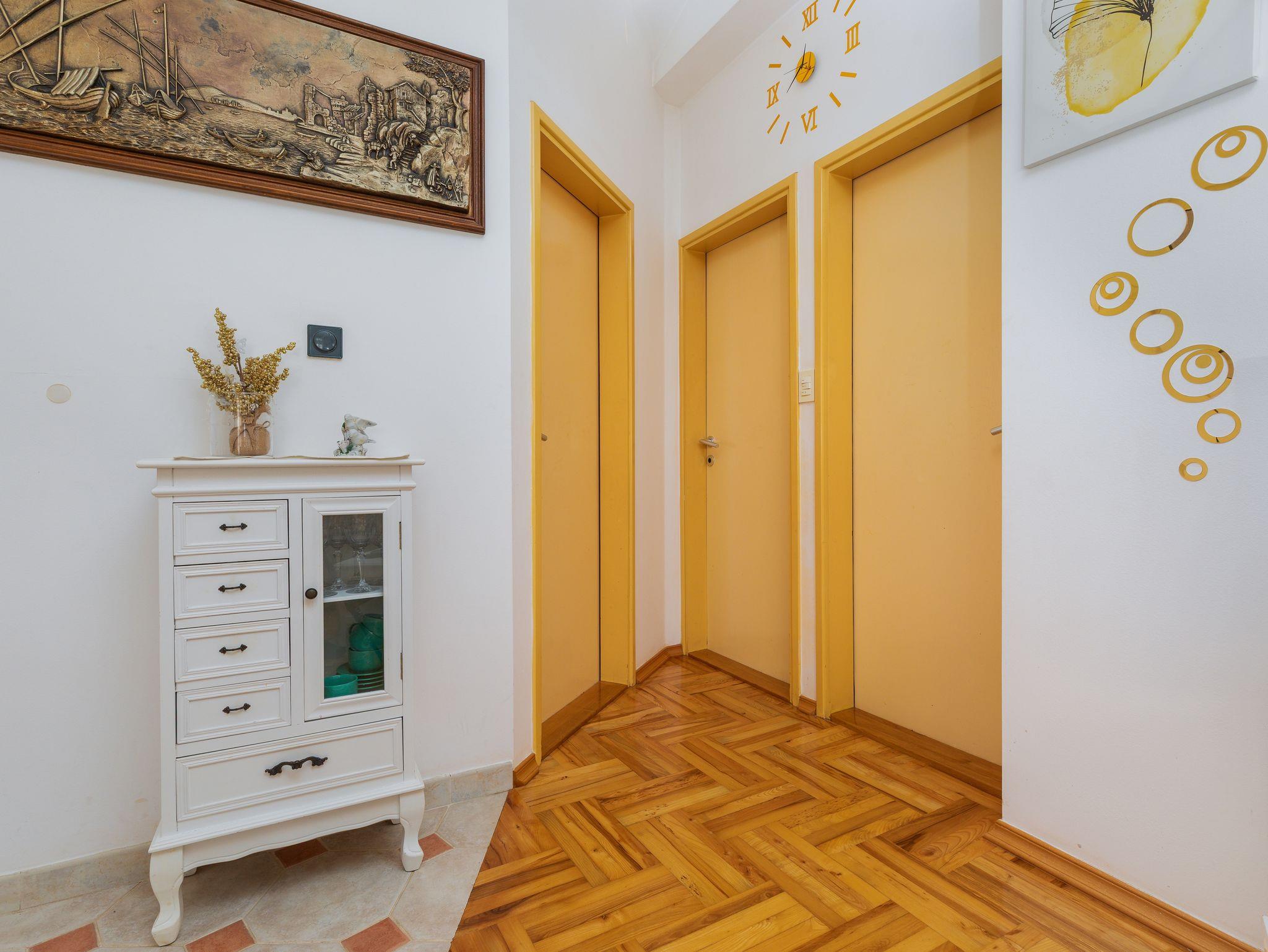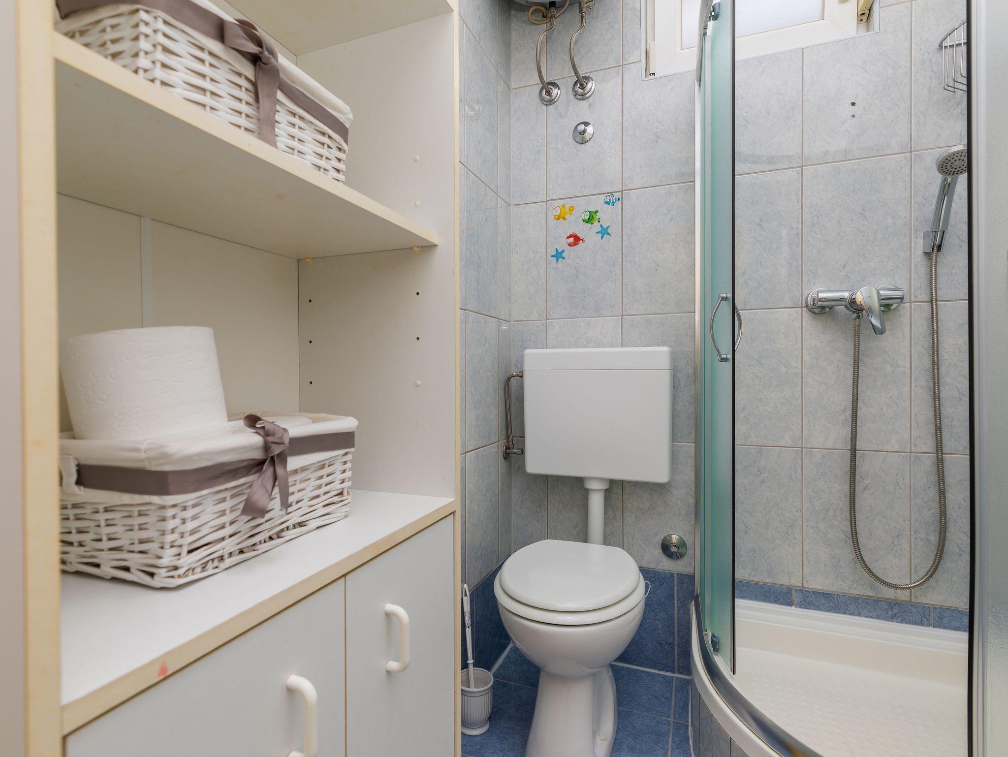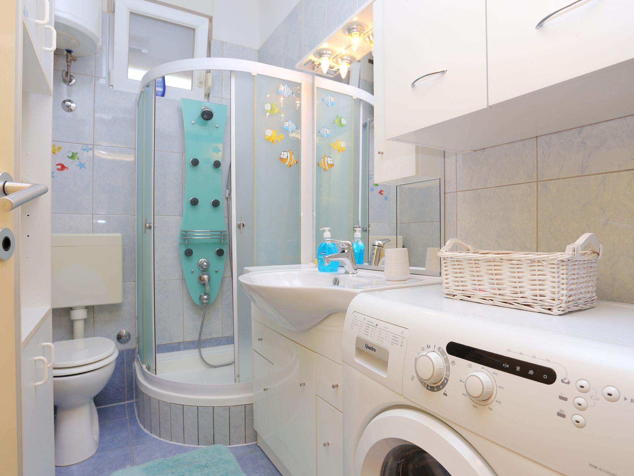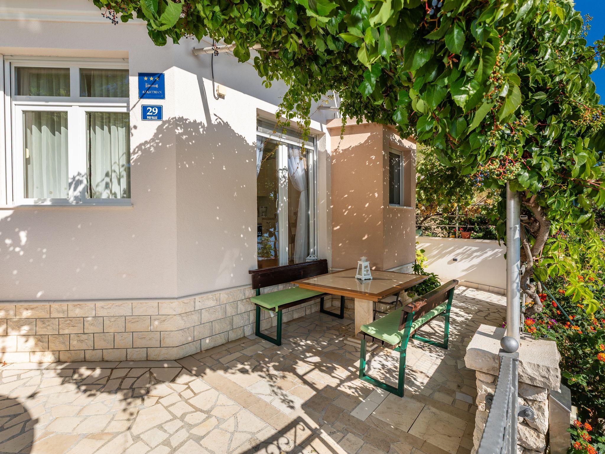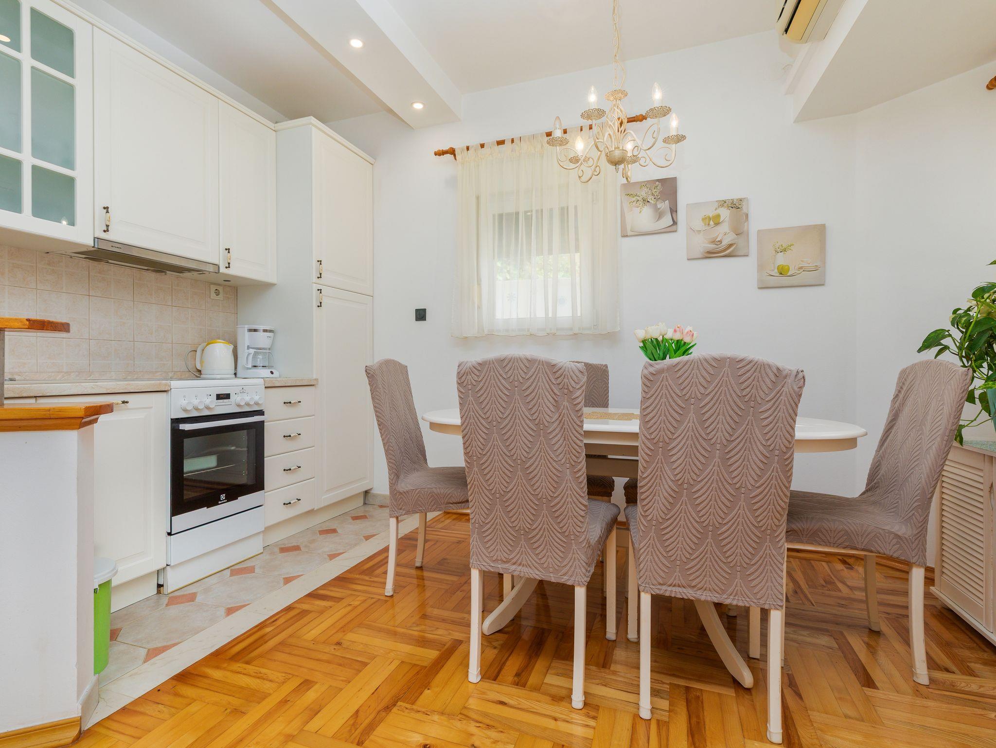 Ferienwohnung bietet Platz für 5 Gäste. Die Betten sind in Schlafzimmern, die es 2 gibt, und in Wohnzimmer, innerhalb einer Gesamtfläche von 48m2, angeordnet. Die Gäste haben eine eigene Terrasse zur Verfügung, auf der sie in warmen Sommernächten genießen können. Das Apartment bietet Meerblick. Für vollen Genuss und Entspannung gibt es einen privaten Grill für Gäste dieser Unterkunft. IM PREIS INBEGRIFFEN: Kurtaxe, Endreinigung, Klimatisierung, Parkplatz, Internet, Kinderbett, Bügeleisen, Bügelbrett, Föhn. VERBINDLICHE ZUSÄTZLICHE KOSTEN: Aufzahlung für Kurzaufenthalte (prozentualer Zuschlag pro Nächtigungsanzahl: 30% - 1, 20% - 2, 10% - 3). Die Verfügbarkeit zusätzlicher Dienstleistungen in Ihrem reservierten Termin und die Preise derselben (falls nicht aufgeführt) müssen im Voraus überprüft werden. Zusätzliche Dienstleistungen die in der Zahlungsaufforderung nicht aufgeführt sind werden direkt beim Vermieter bezahlt, angenommen der Gast nutzt auch diese.