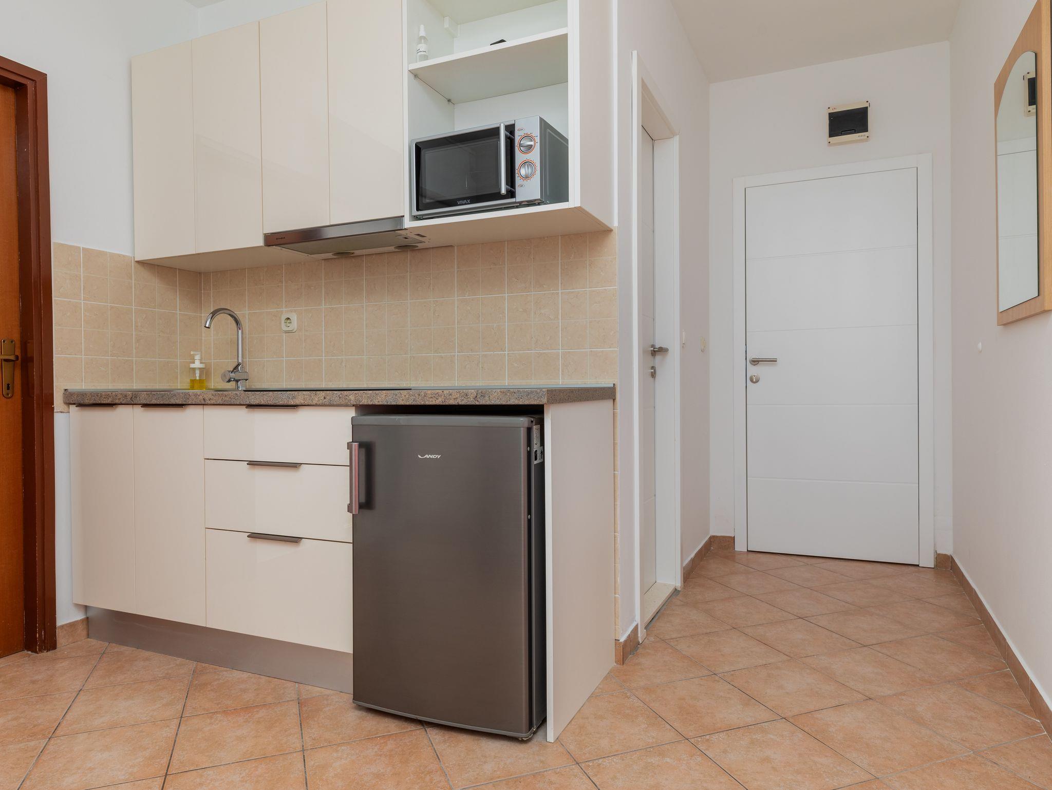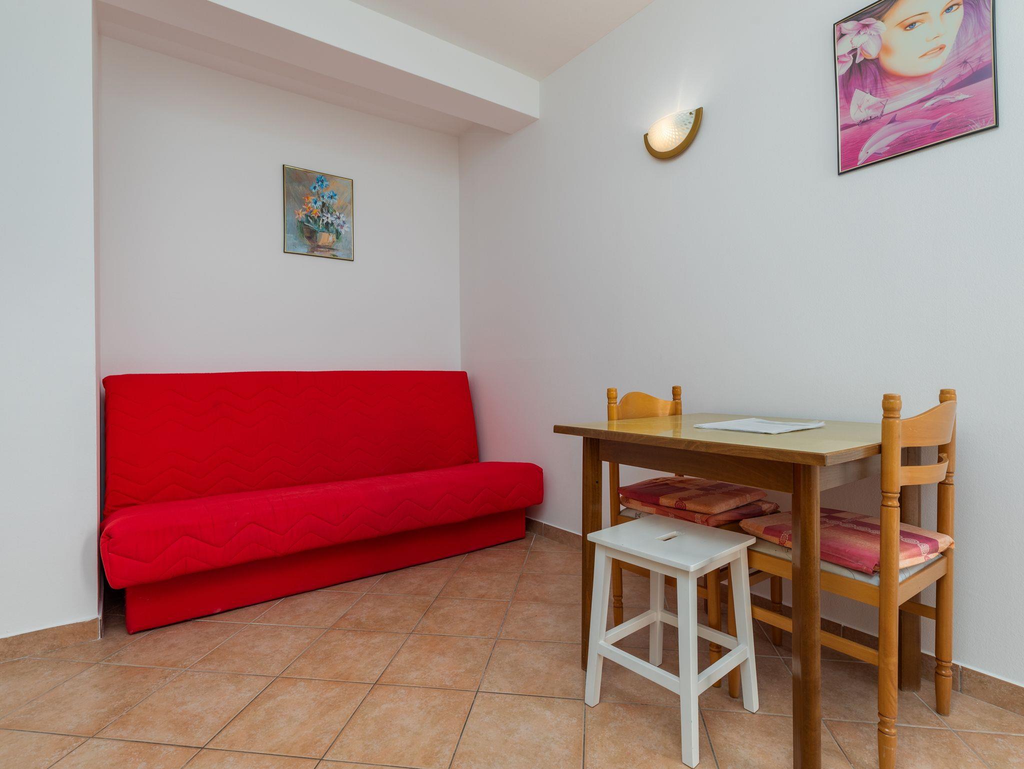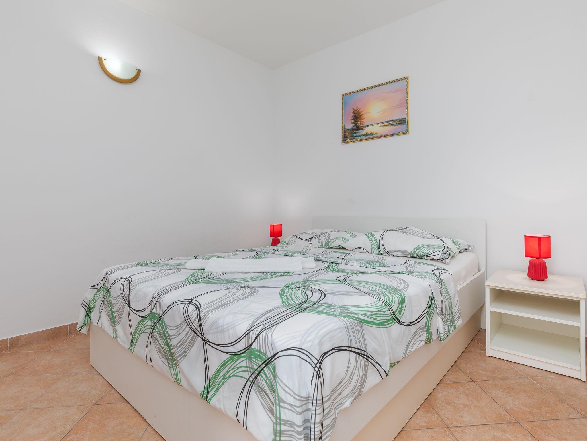 Ferienwohnung bietet Platz für 3 Gäste. Die Betten sind in Schlafzimmern, die es 1 gibt, und in Wohnzimmer, innerhalb einer Gesamtfläche von 34m2, angeordnet. Die Gäste haben einen eigenen Balkon zur Verfügung, auf der sie in warmen Sommernächten genießen können. Das Apartment bietet Meerblick. Es ist erlaubt, Speisen auf dem Gemeinschafts-Grill vorzubereiten. In der Unterkunftseinheit besteht die Möglichkeit des Mitbringens von Haustieren gegen Aufpreis. IM PREIS INBEGRIFFEN: Kurtaxe, Endreinigung, Klimatisierung, Parkplatz, Internet, Wäschewaschen, Bootsanlegeplatz, Kinderbett, Bügeleisen, Bügelbrett, tragbarer Grill. UNVERBINDLICHE ZUSÄTZLICHE KOSTEN: Haustiere (15,00 € pro Nacht). Die Verfügbarkeit zusätzlicher Dienstleistungen in Ihrem reservierten Termin und die Preise derselben (falls nicht aufgeführt) müssen im Voraus überprüft werden. Zusätzliche Dienstleistungen die in der Zahlungsaufforderung nicht aufgeführt sind werden direkt beim Vermieter bezahlt, angenommen der Gast nutzt auch diese. Ermäßigung auf den Grundpreis: Gratistag 21=19 (bei einem Aufenthalt von 21 Tagen oder mehr erhalten Sie 2 Gratistage für den Aufenthalt bis 31.12.26).