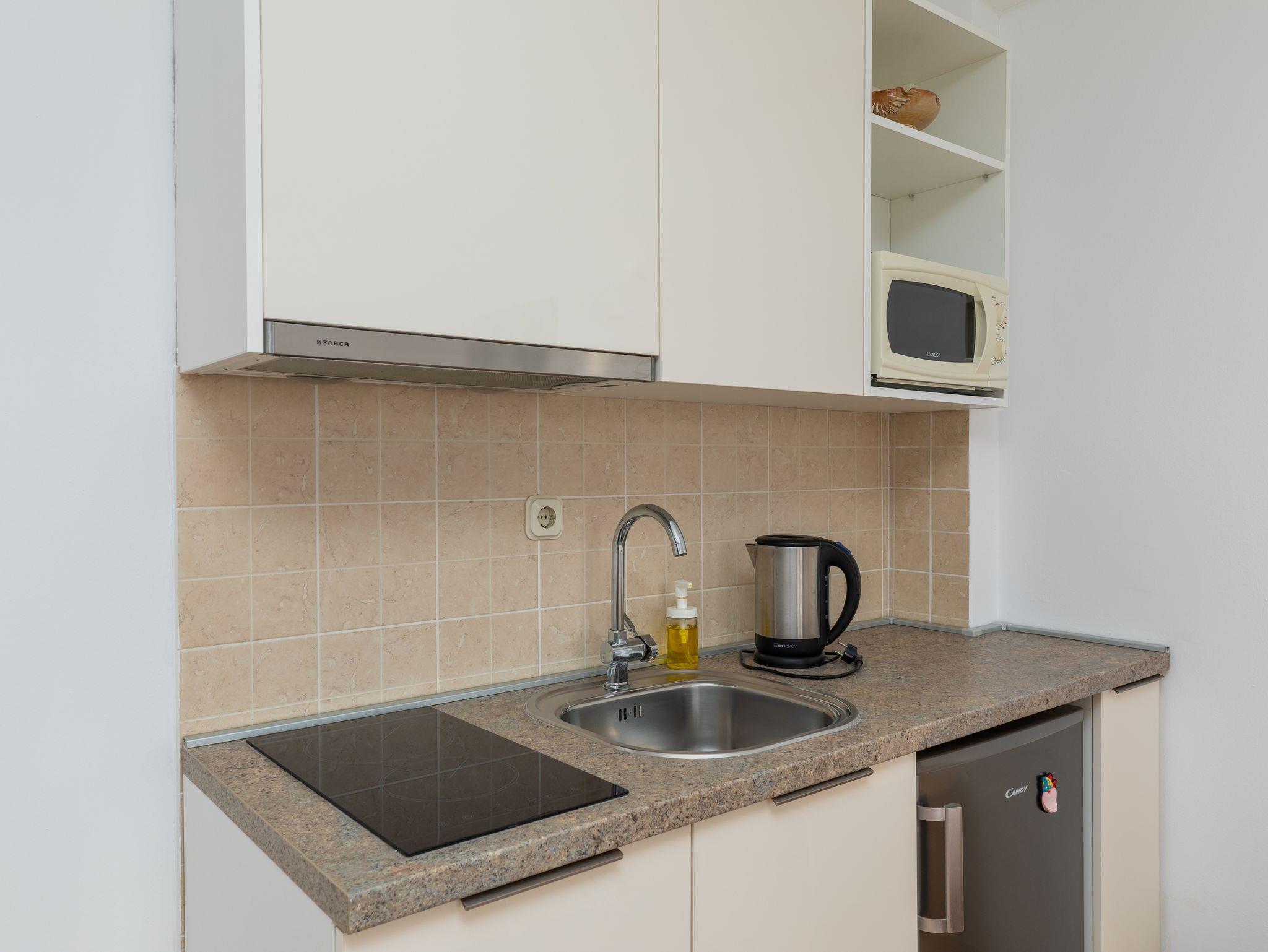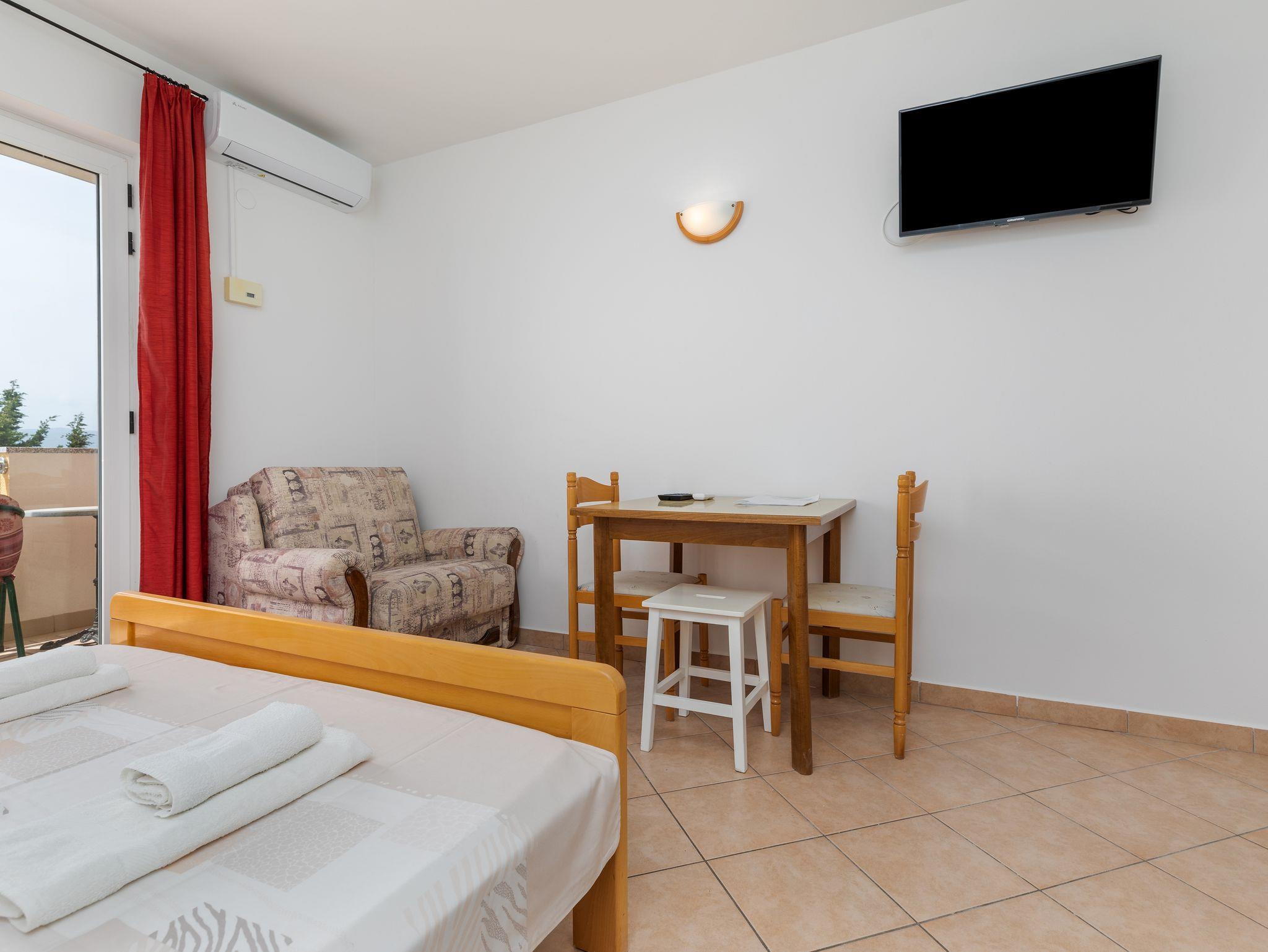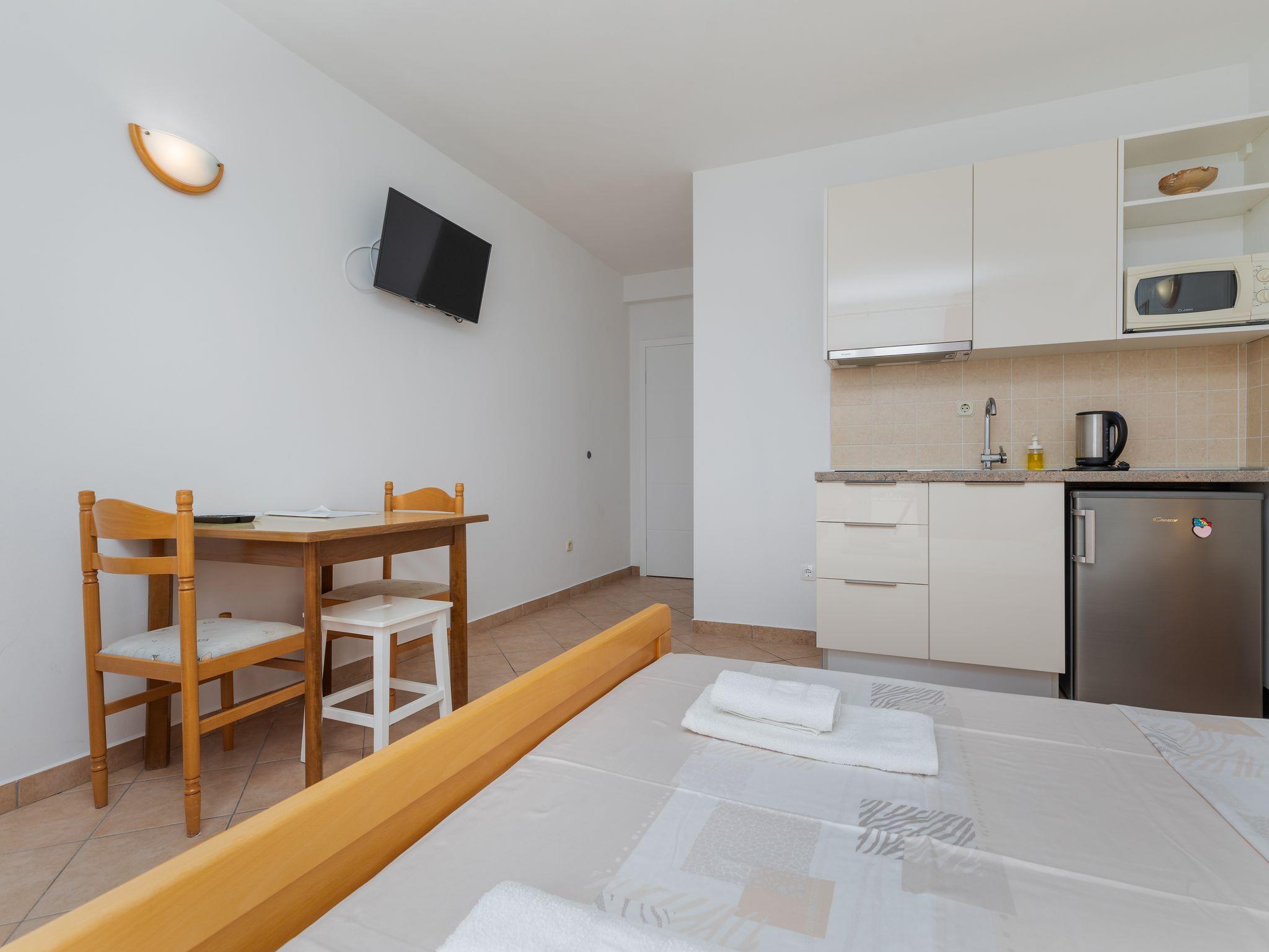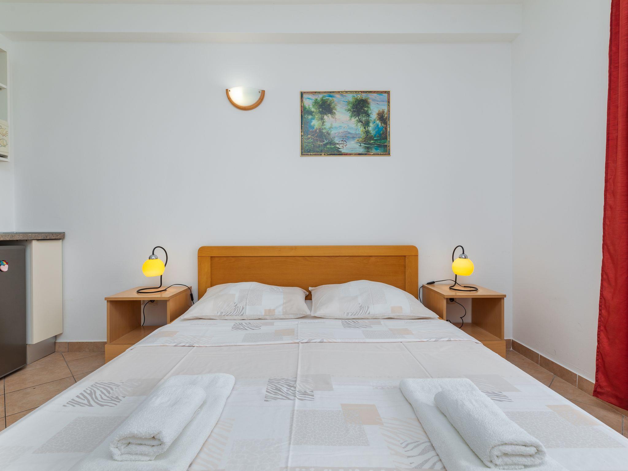Studio bietet Platz für 2 Gäste. Die Betten sind in Schlafzimmern, die es 1 gibt, innerhalb einer Gesamtfläche von 24m2, angeordnet. Die Gäste haben einen eigenen Balkon zur Verfügung, auf der sie in warmen Sommernächten genießen können. Das Studio-Apartment bietet Meerblick. Es ist erlaubt, Speisen auf dem Gemeinschafts-Grill vorzubereiten. In der Unterkunftseinheit besteht die Möglichkeit des Mitbringens von Haustieren gegen Aufpreis. IM PREIS INBEGRIFFEN: Kurtaxe, Endreinigung, Klimatisierung, Parkplatz, Internet, Wäschewaschen, Bootsanlegeplatz, Kinderbett, Bügeleisen, Bügelbrett, tragbarer Grill. UNVERBINDLICHE ZUSÄTZLICHE KOSTEN: Haustiere (15,00 € pro Nacht). Die Verfügbarkeit zusätzlicher Dienstleistungen in Ihrem reservierten Termin und die Preise derselben (falls nicht aufgeführt) müssen im Voraus überprüft werden. Zusätzliche Dienstleistungen die in der Zahlungsaufforderung nicht aufgeführt sind werden direkt beim Vermieter bezahlt, angenommen der Gast nutzt auch diese. Ermäßigung auf den Grundpreis: Gratistag 21=19 (bei einem Aufenthalt von 21 Tagen oder mehr erhalten Sie 2 Gratistage für den Aufenthalt bis 31.12.26).