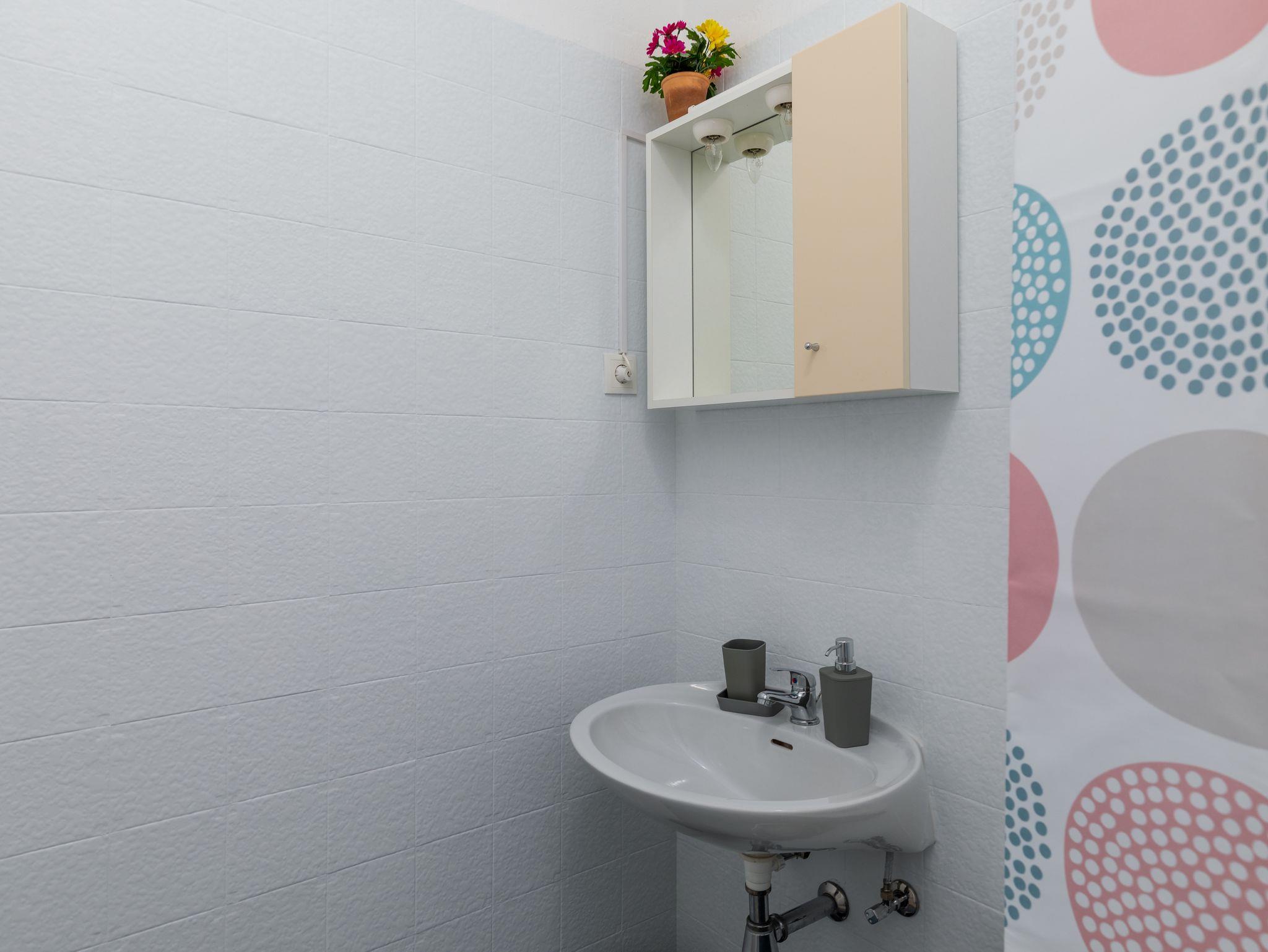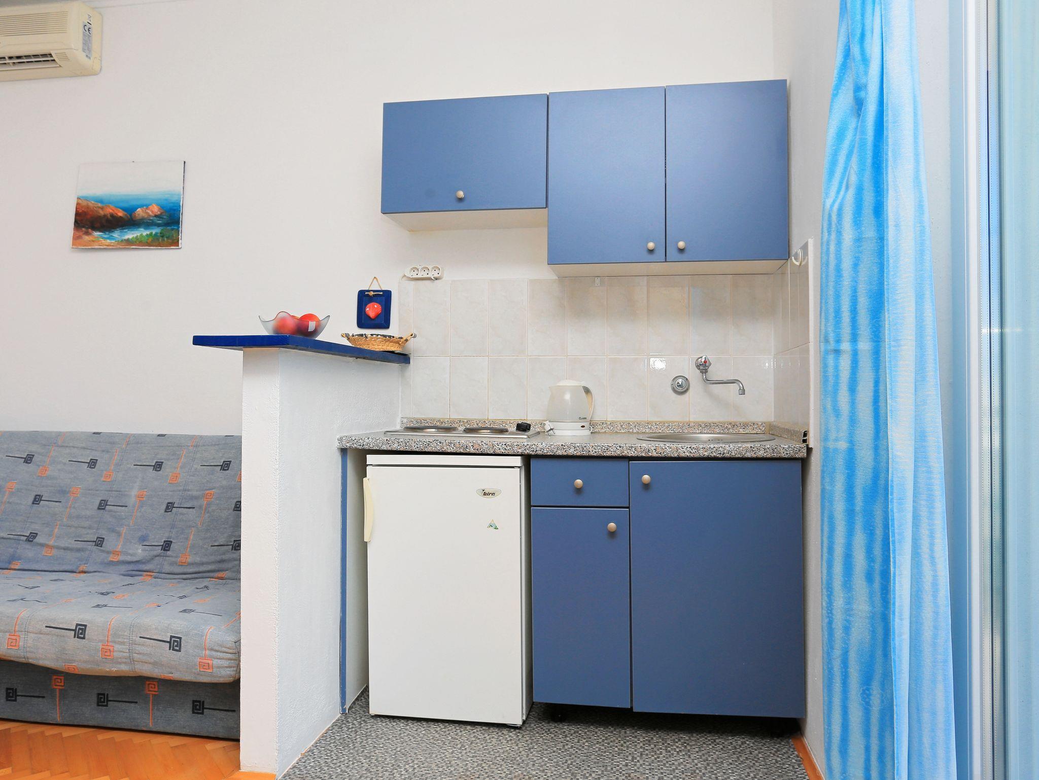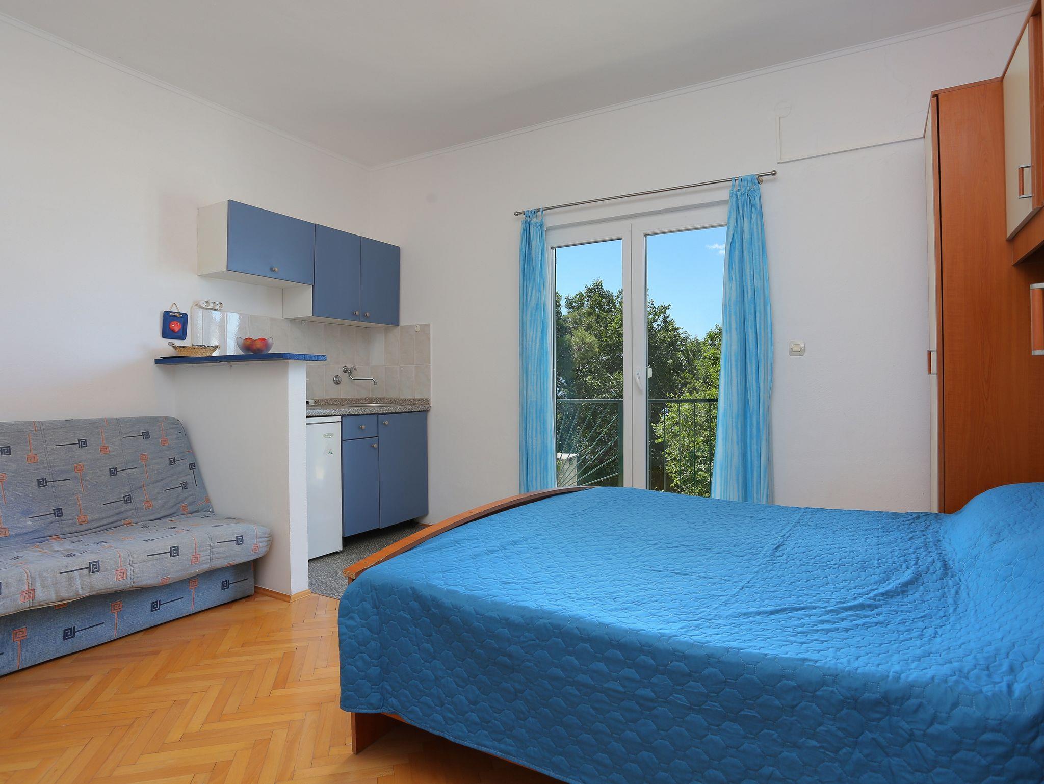 Studio bietet Platz für 2 Gäste. Die Betten sind in Schlafzimmern, die es 1 gibt, innerhalb einer Gesamtfläche von 20m2, angeordnet. Die Gäste haben einen eigenen Balkon zur Verfügung, auf der sie in warmen Sommernächten genießen können. Das Studio-Apartment bietet Meerblick. Es ist erlaubt, Speisen auf dem Gemeinschafts-Grill vorzubereiten. IM PREIS INBEGRIFFEN: Kurtaxe, Endreinigung, Parkplatz, Internet, Wäschewaschen, Bügeleisen, Bügelbrett. VERBINDLICHE ZUSÄTZLICHE KOSTEN: Aufzahlung für Kurzaufenthalte (prozentualer Zuschlag pro Nächtigungsanzahl: 30% - 1, 20% - 2, 10% - 3). UNVERBINDLICHE ZUSÄTZLICHE KOSTEN: Klimatisierung (5,00 € pro Nacht). Die Verfügbarkeit zusätzlicher Dienstleistungen in Ihrem reservierten Termin und die Preise derselben (falls nicht aufgeführt) müssen im Voraus überprüft werden. Zusätzliche Dienstleistungen die in der Zahlungsaufforderung nicht aufgeführt sind werden direkt beim Vermieter bezahlt, angenommen der Gast nutzt auch diese.