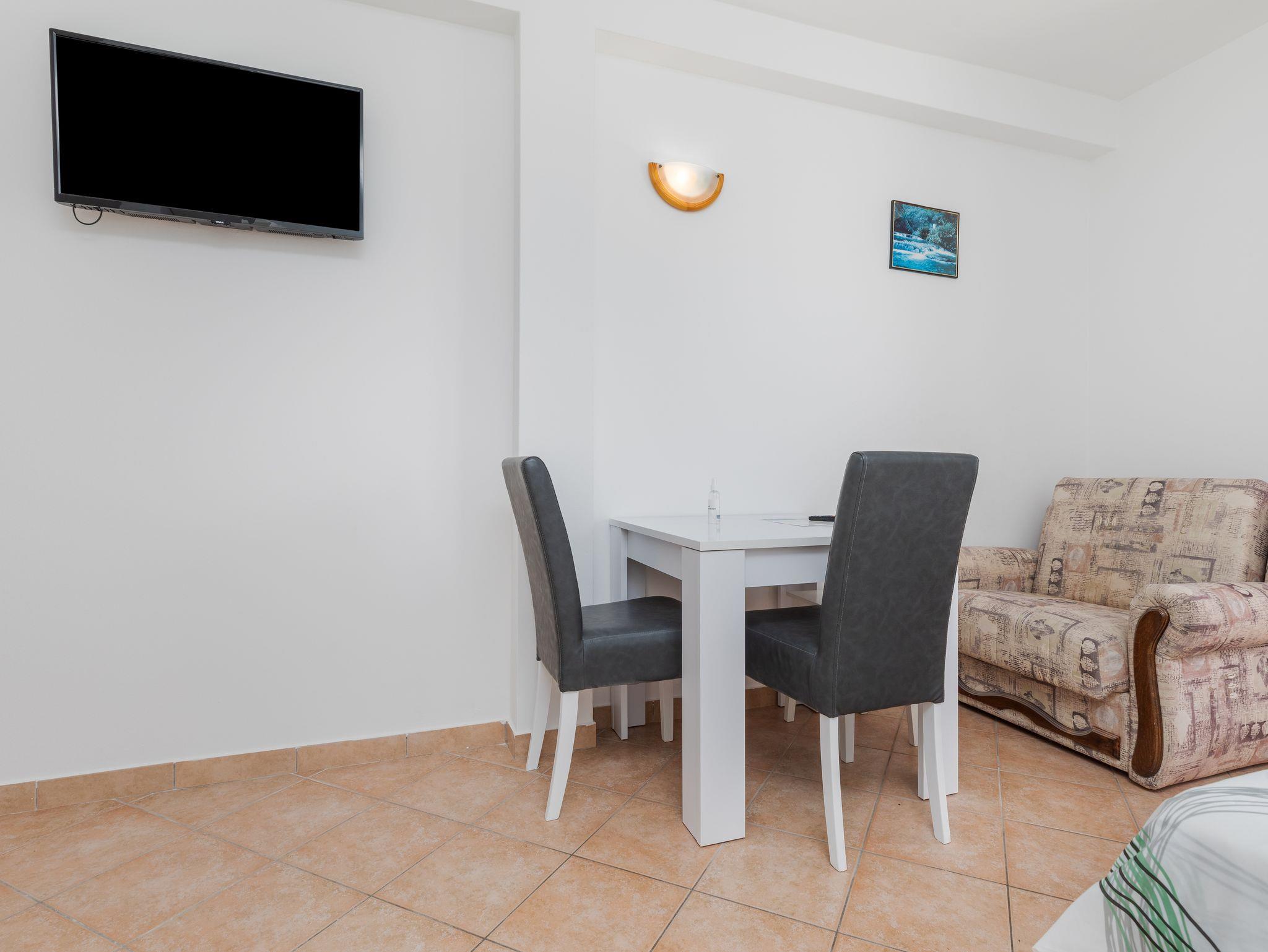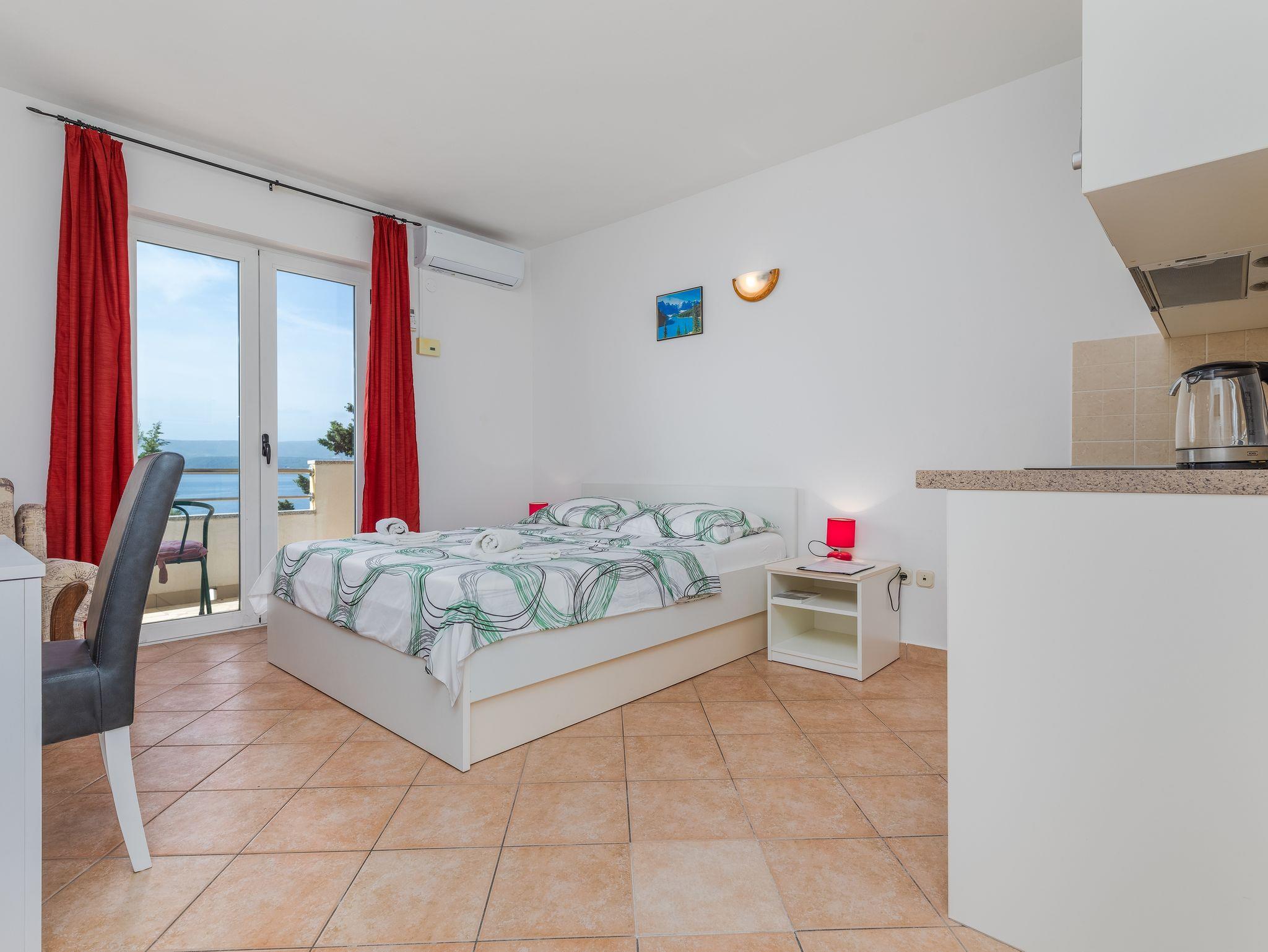 Studio bietet Platz für 2 Gäste. Die Betten sind in Schlafzimmern, die es 1 gibt, innerhalb einer Gesamtfläche von 24m2, angeordnet. Die Gäste haben einen eigenen Balkon zur Verfügung, auf der sie in warmen Sommernächten genießen können. Das Studio-Apartment bietet Meerblick. Es ist erlaubt, Speisen auf dem Gemeinschafts-Grill vorzubereiten. In der Unterkunftseinheit besteht die Möglichkeit des Mitbringens von Haustieren gegen Aufpreis. IM PREIS INBEGRIFFEN: Kurtaxe, Endreinigung, Klimatisierung, Parkplatz, Internet, Wäschewaschen, Bootsanlegeplatz, Kinderbett, Bügeleisen, Bügelbrett, tragbarer Grill. UNVERBINDLICHE ZUSÄTZLICHE KOSTEN: Haustiere (15,00 € pro Nacht). Die Verfügbarkeit zusätzlicher Dienstleistungen in Ihrem reservierten Termin und die Preise derselben (falls nicht aufgeführt) müssen im Voraus überprüft werden. Zusätzliche Dienstleistungen die in der Zahlungsaufforderung nicht aufgeführt sind werden direkt beim Vermieter bezahlt, angenommen der Gast nutzt auch diese. Ermäßigung auf den Grundpreis: Gratistag 21=19 (bei einem Aufenthalt von 21 Tagen oder mehr erhalten Sie 2 Gratistage für den Aufenthalt bis 31.12.26).