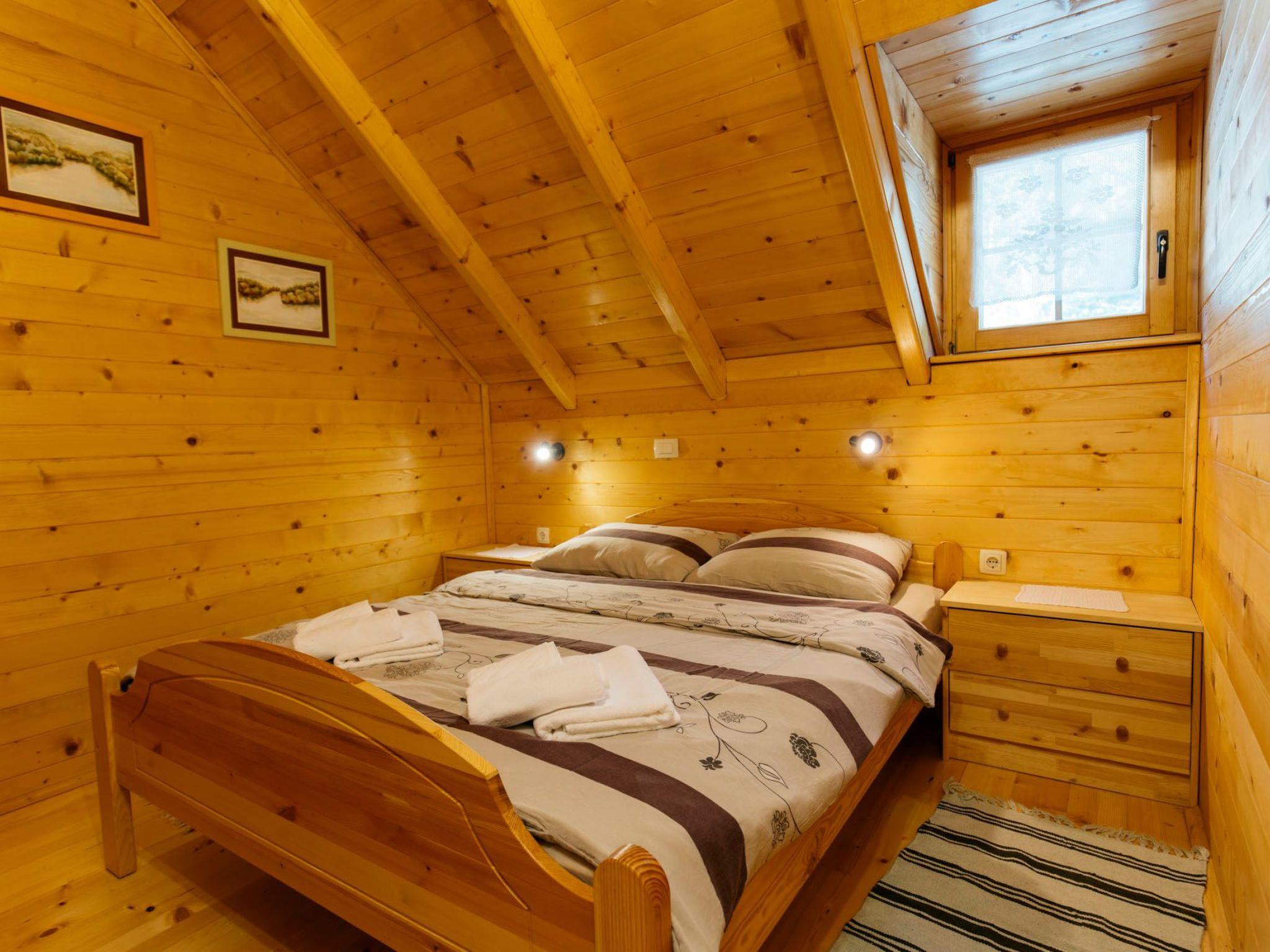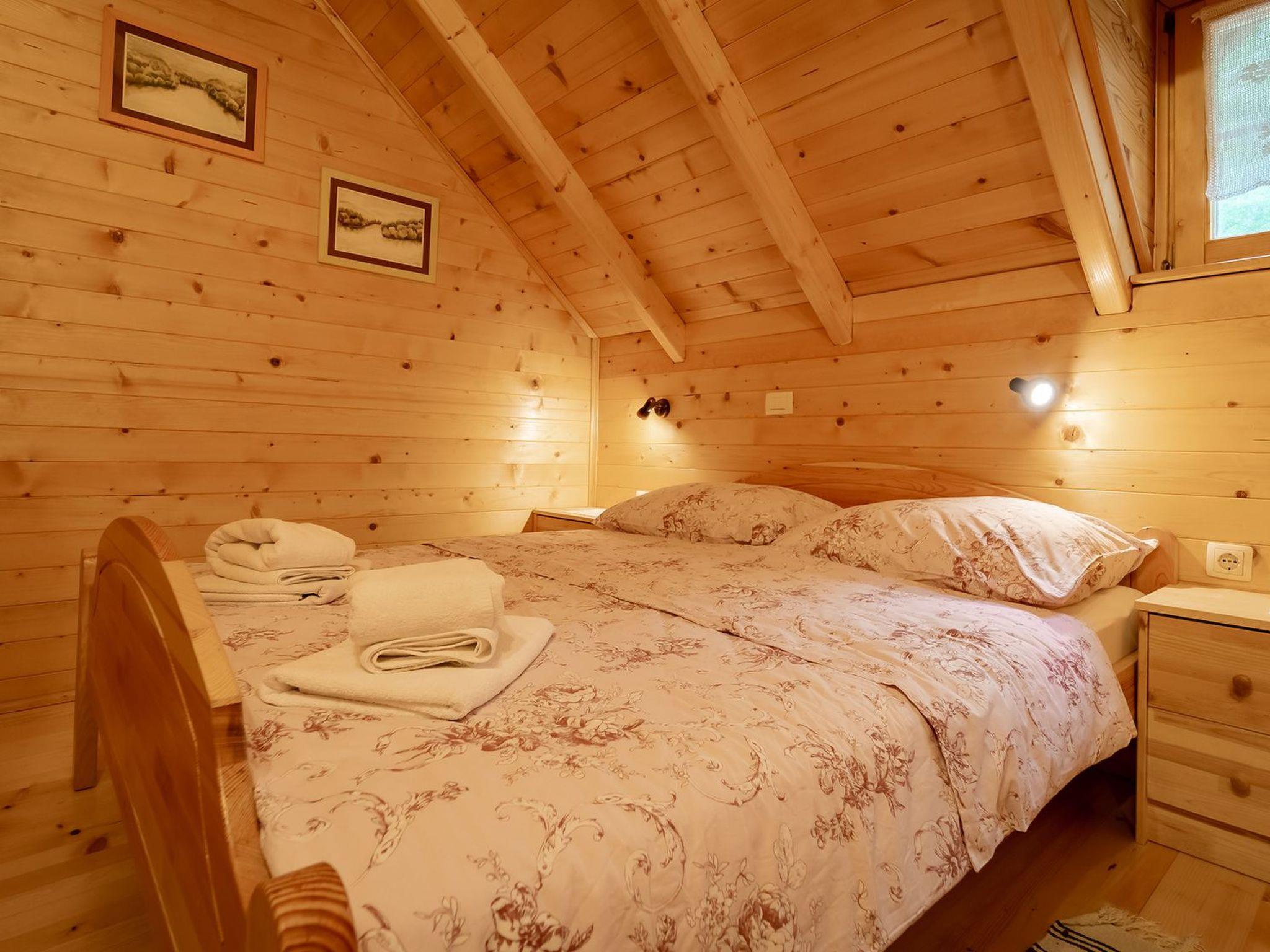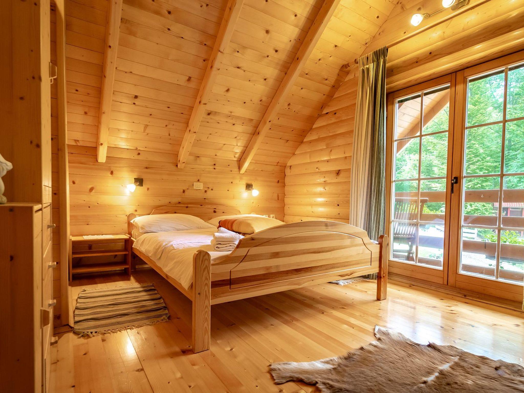 Das schöne Holzhaus besteht aus zwei Etagen, insgesamt 80 m². Das Erdgeschoss ist ca. 40 m² groß und besteht aus folgenden Räumen: Wohnzimmer mit Kamin, Flachbildfernseher mit SAT, Doppelschlafcouch, Bad mit Dusche und WC, Küche/Esszimmer mit Backofen, Cerankochfeld, Kühlschrank, Gefrierschrank, Mikrowelle, Toaster, Kaffeemaschine, Wasserkocher, Spülmaschine und Waschmaschine. Im ersten Stock gibt es drei Schlafzimmer und eine Toilette. Ein Schlafzimmer hat ein Doppelbett (1,60m), ein Schlafsofa für eine Person und einen Balkon mit schönem Waldblick. Das zweite Schlafzimmer hat ein Doppelbett (1,60 m) und das dritte Schlafzimmer hat zwei Einzelbetten (2x 0,90 m).
